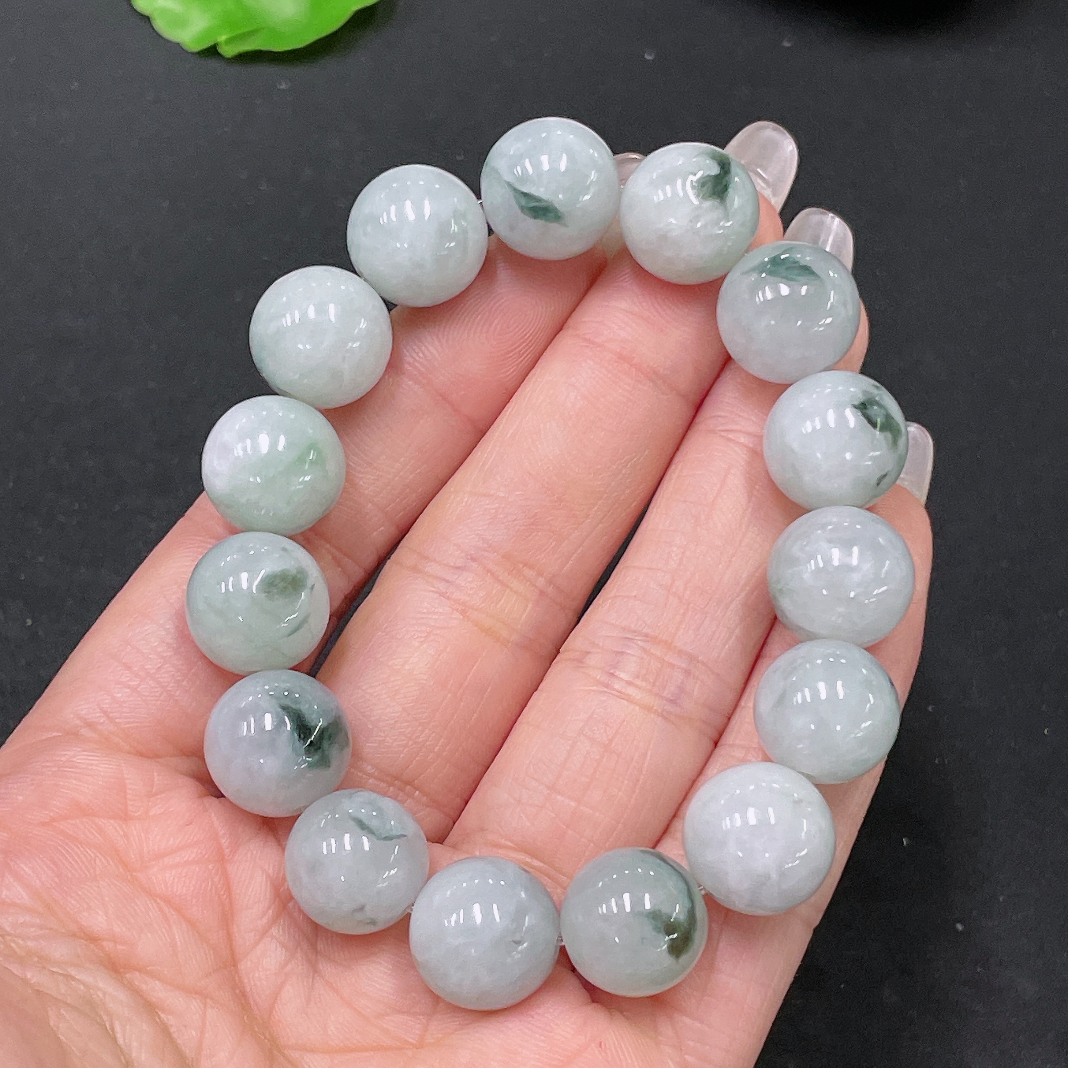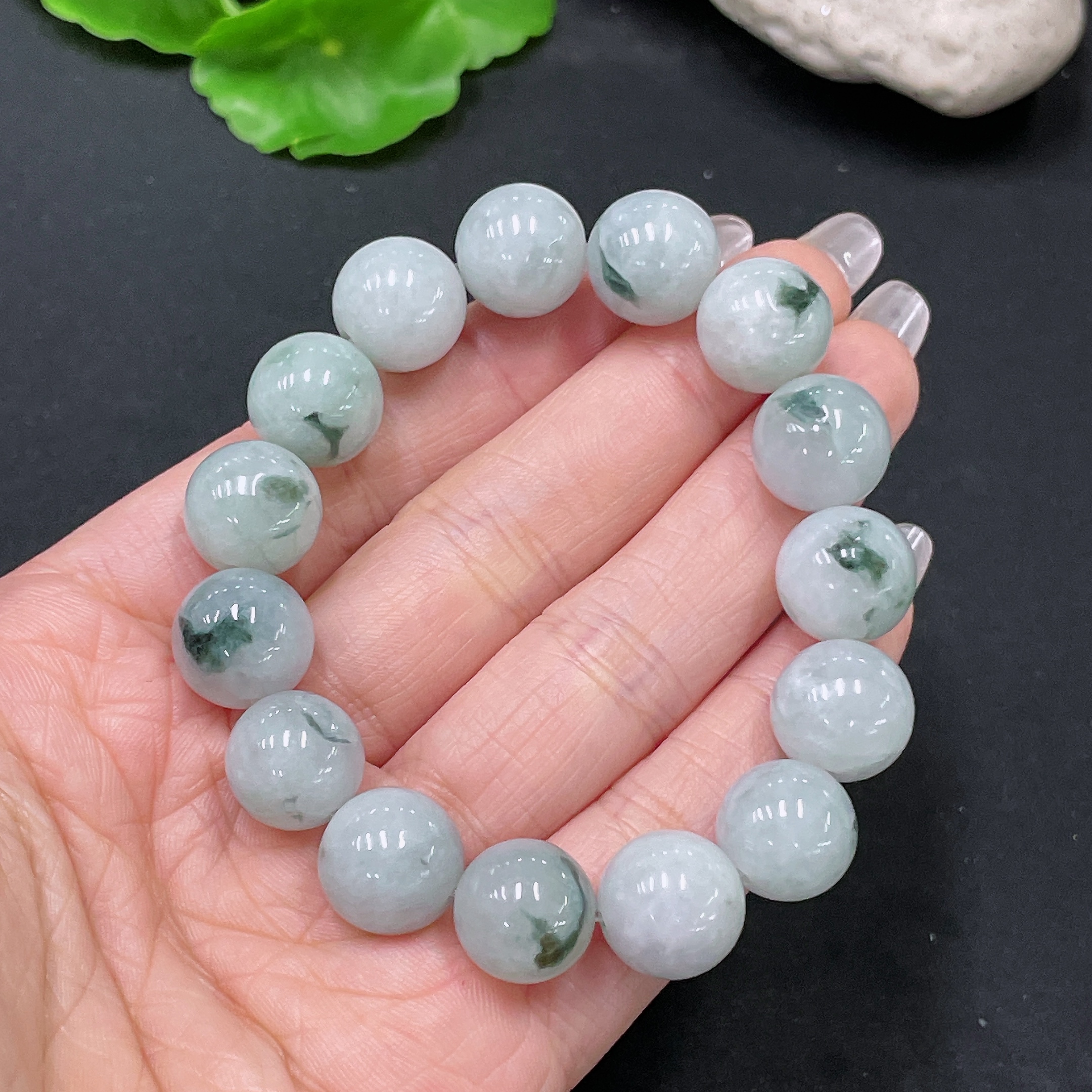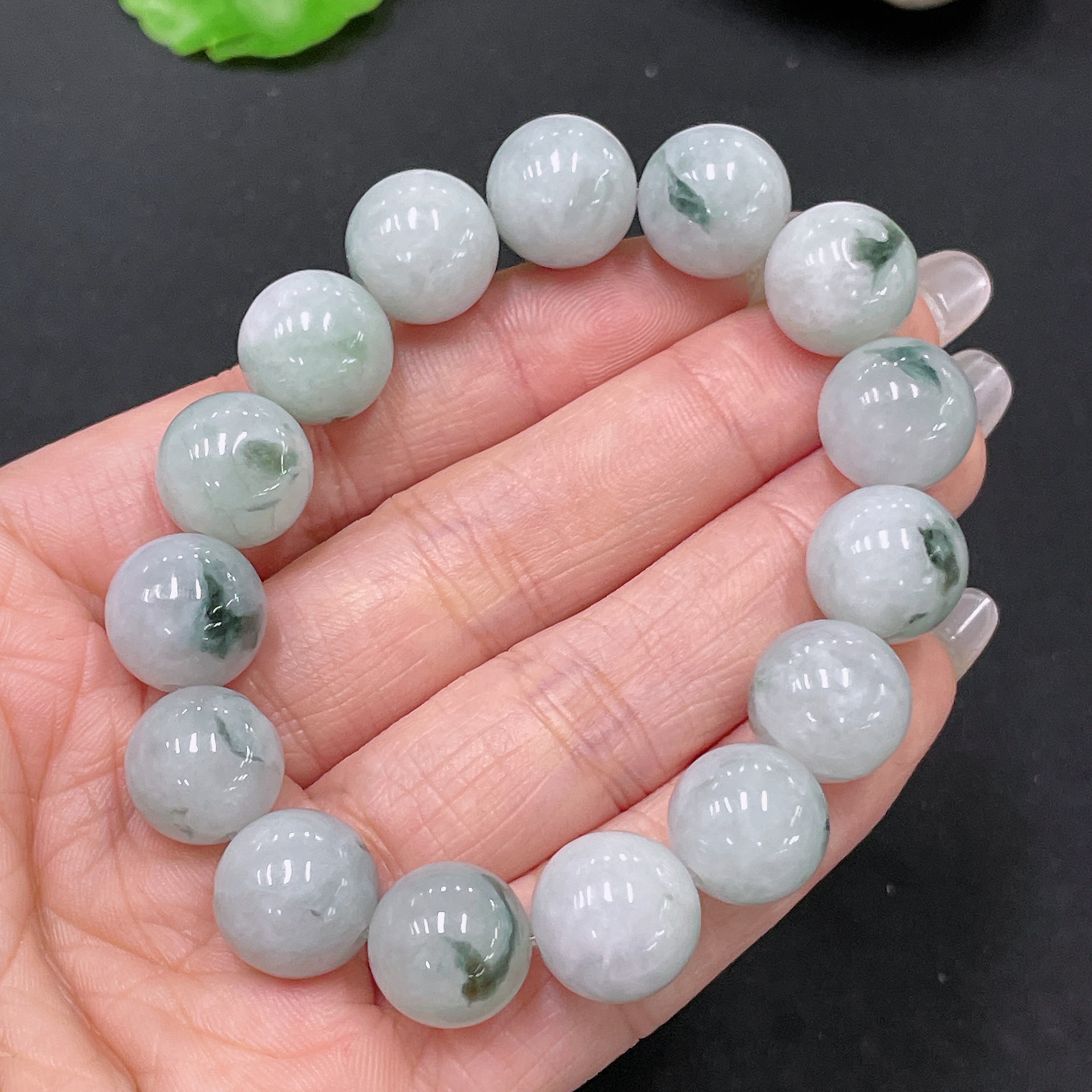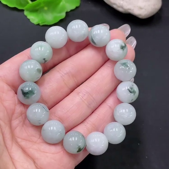 Jadeite Bracelet with Other Mineral Components, Total Weight Approx. 53.55g, Size 13mm