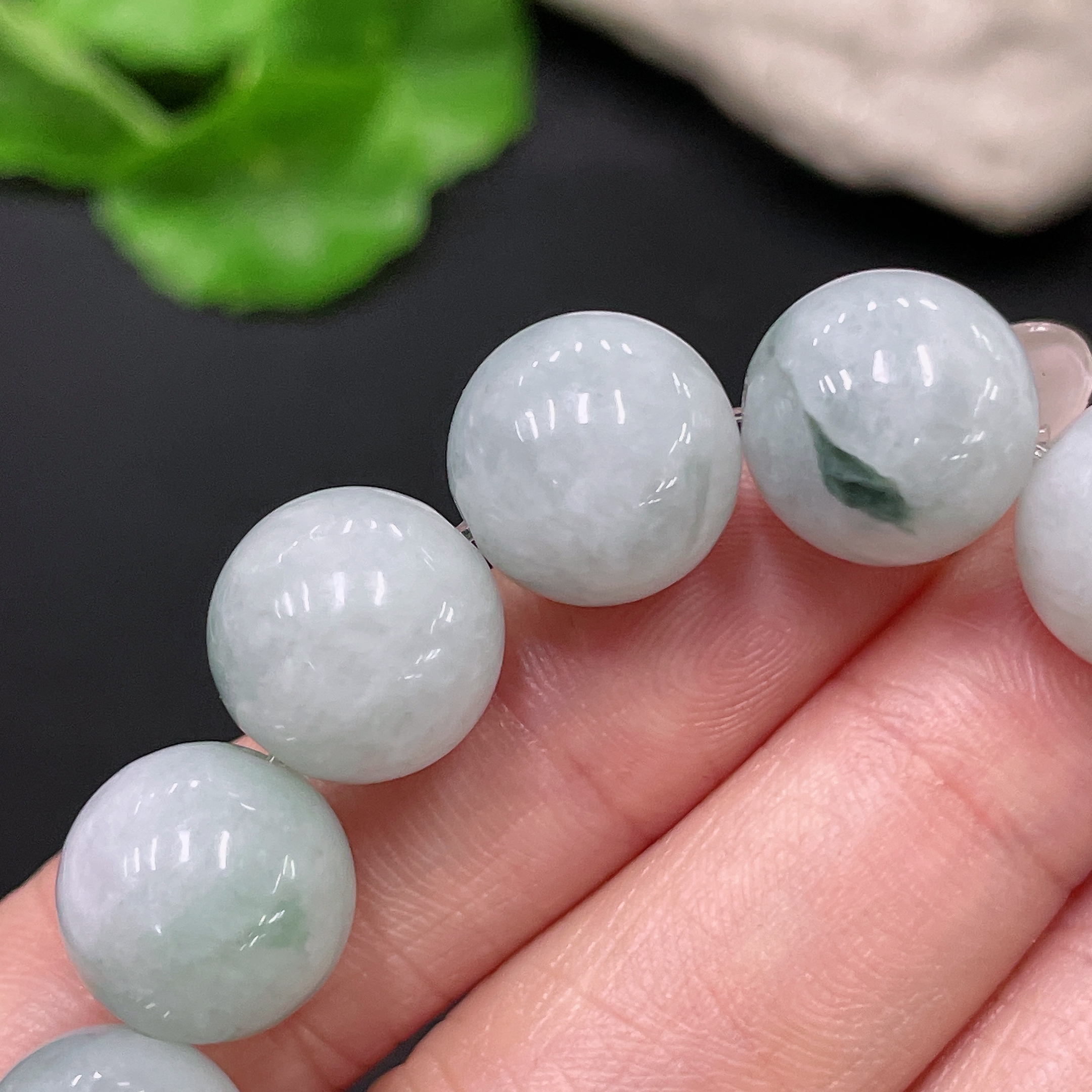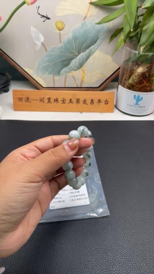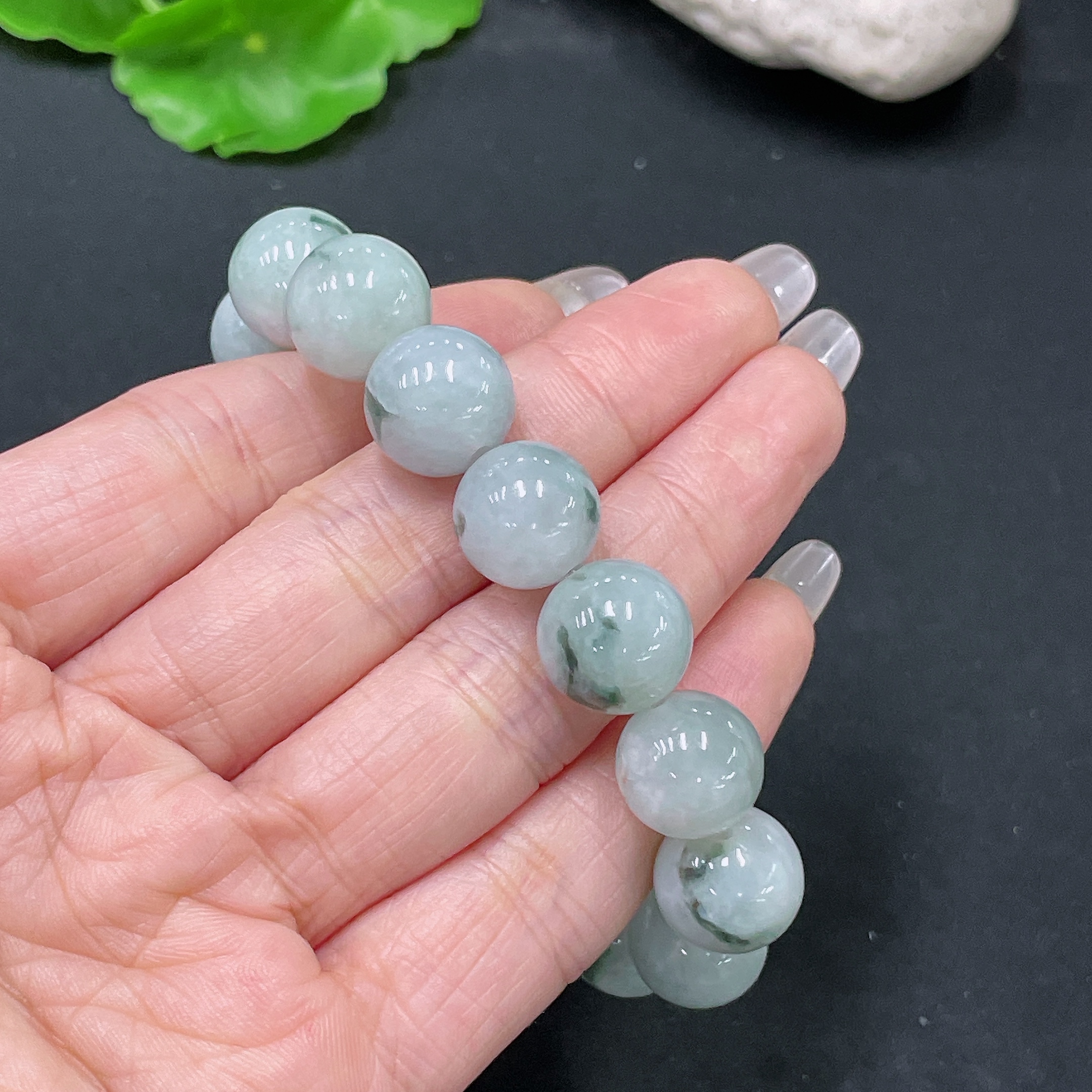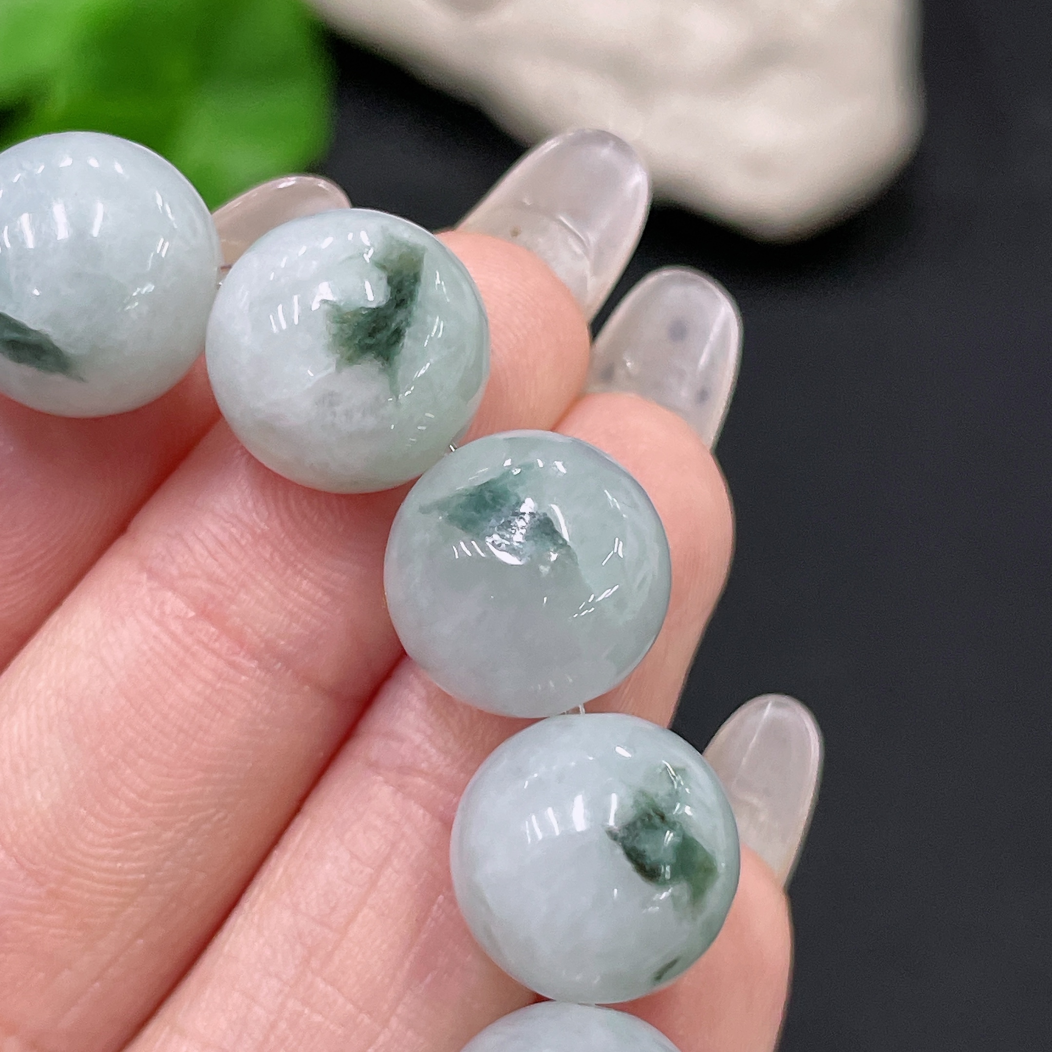 Jadeite Bracelet with Other Mineral Components, Total Weight Approx. 53.55g, Size 13mm