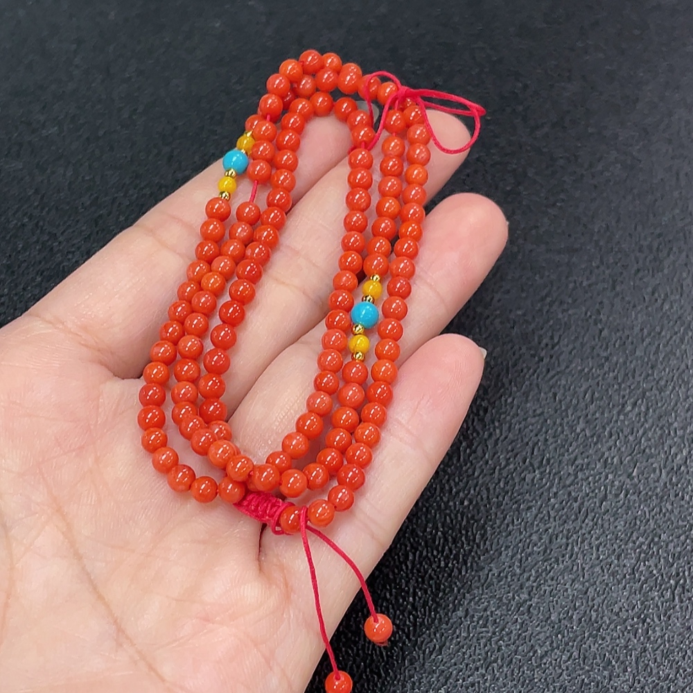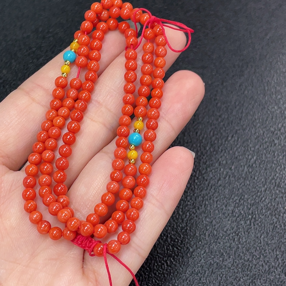 South Red Agate Bead Strand with Visible Organic Matter, Non-Natural Accent Stones, Non-Metal, Total Weight Approx. 10.27g, Size ~3.9mm