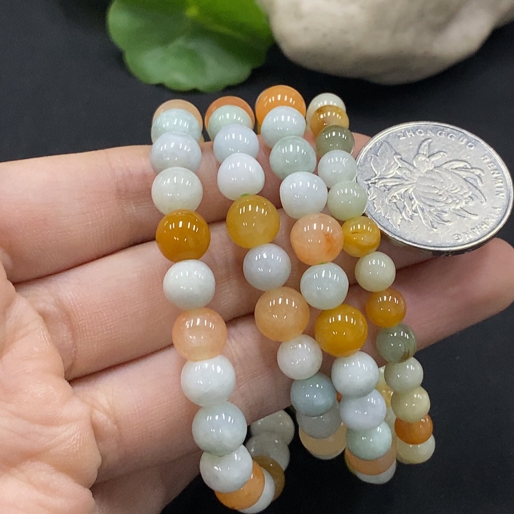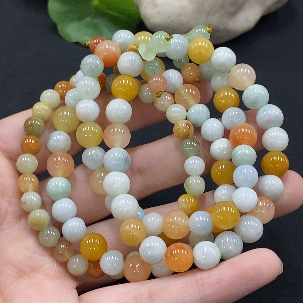 Jadeite Bracelet Sell as a Lot Yellow Beads Non-A Non-Gold Inlaid Total Weight Approx. 59.47g