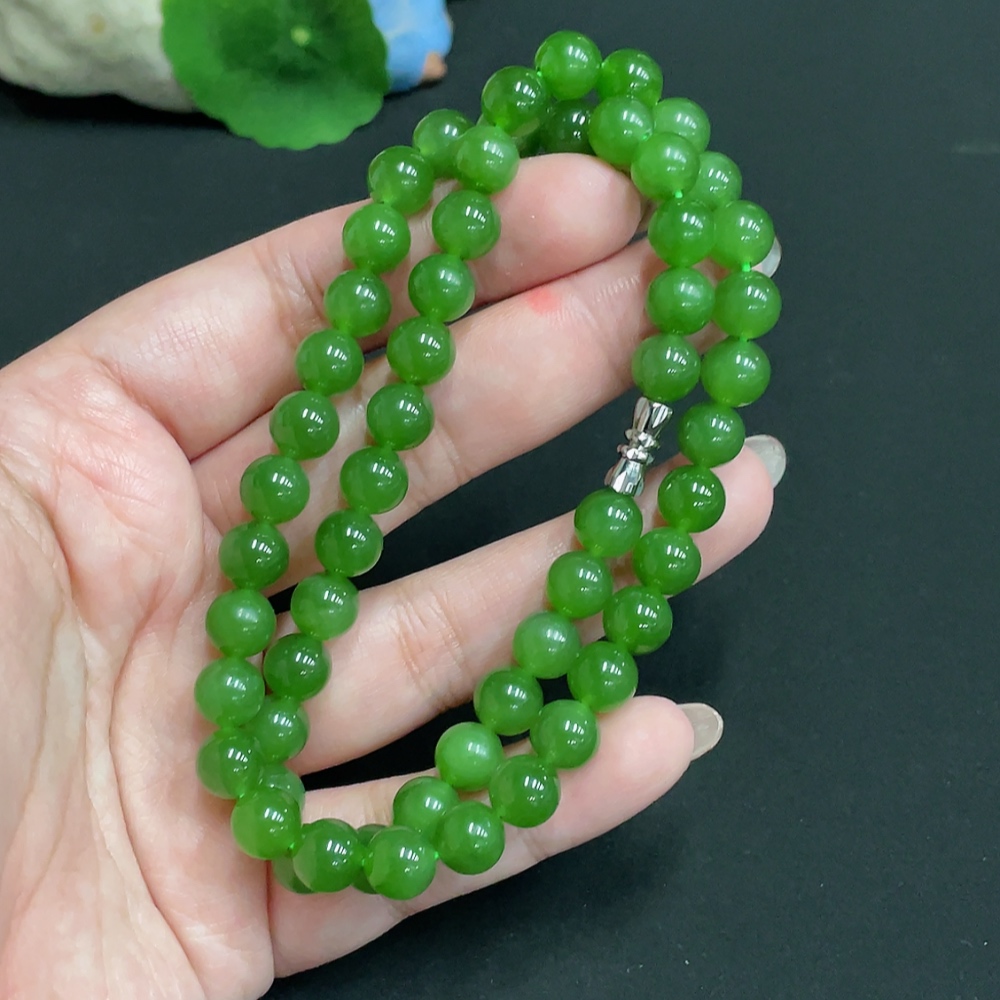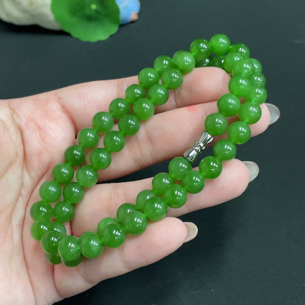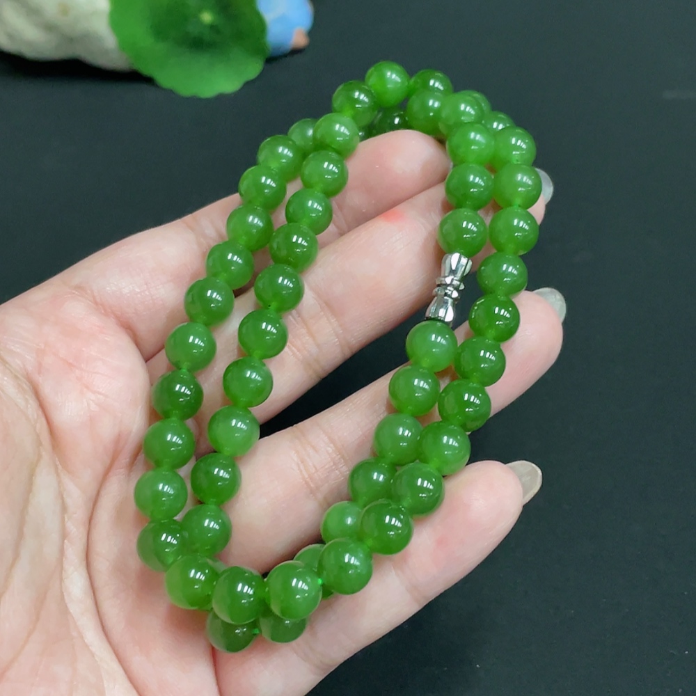 Hetian Jade Bead Necklace, approx. 7.8mm, total weight approx. 45.3g