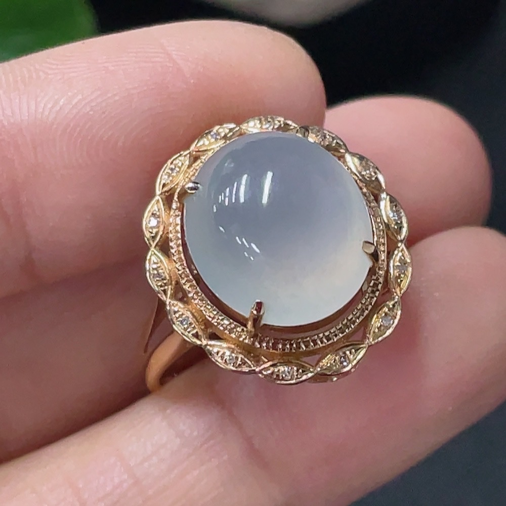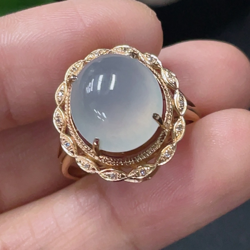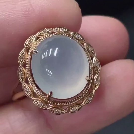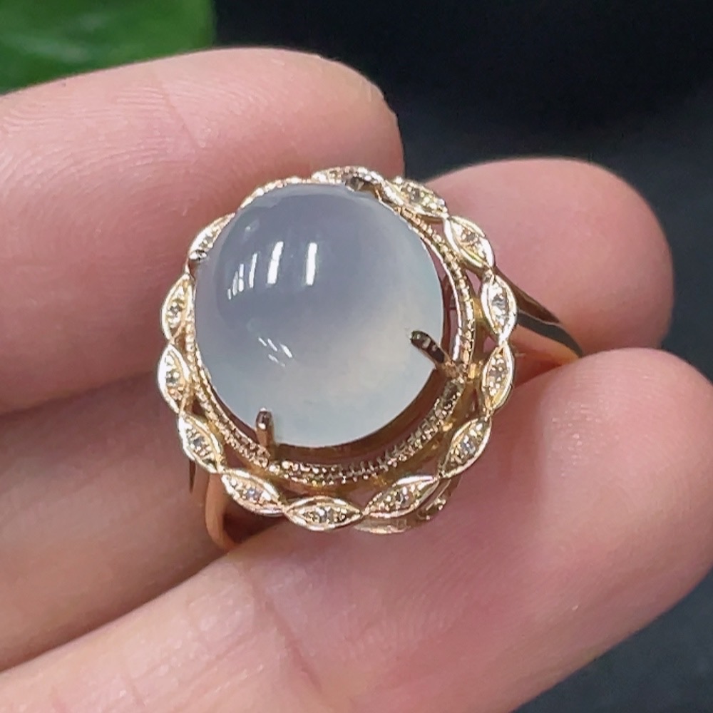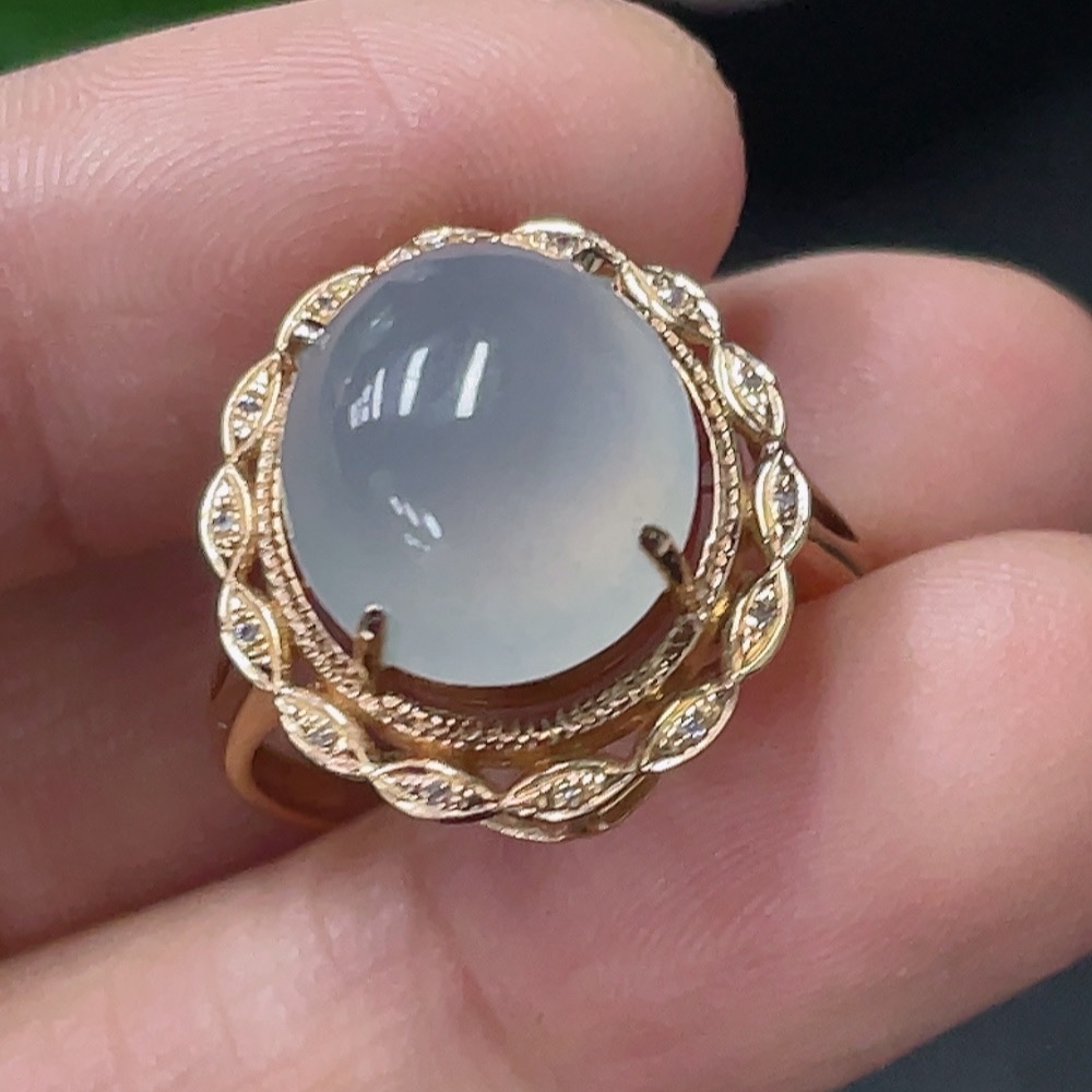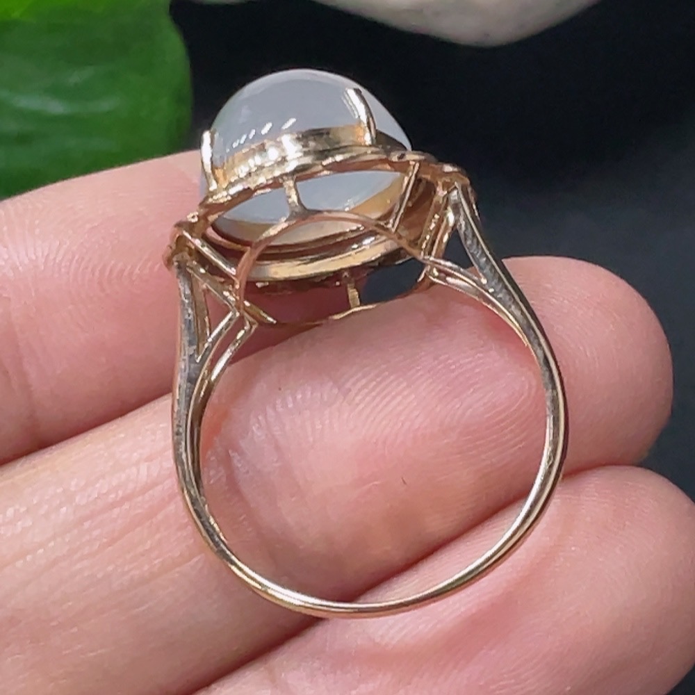 Jadeite inlaid ring 18k with diamond size 13 total weight approx. 3.4g