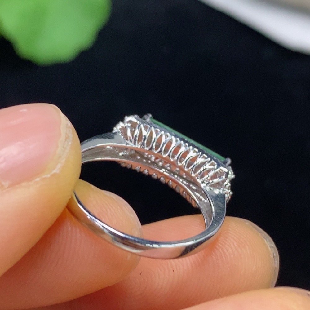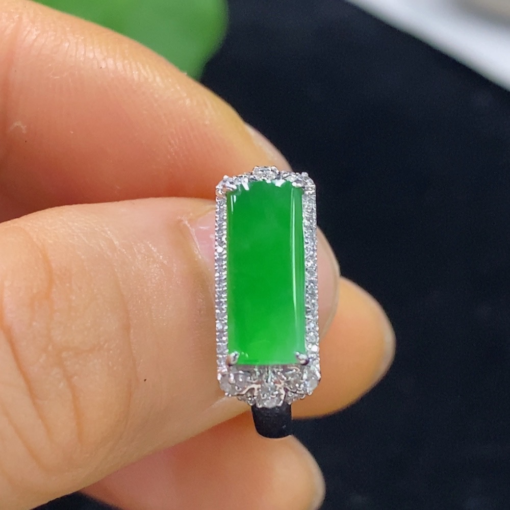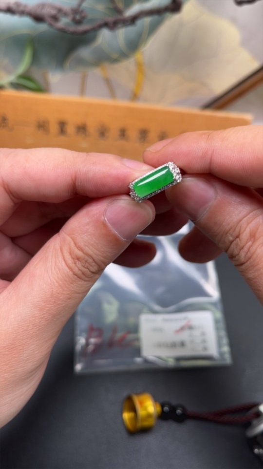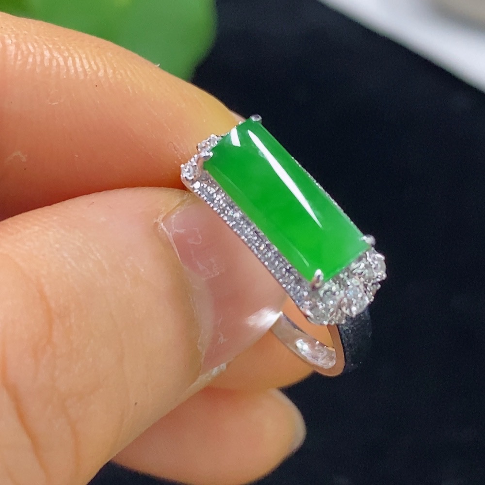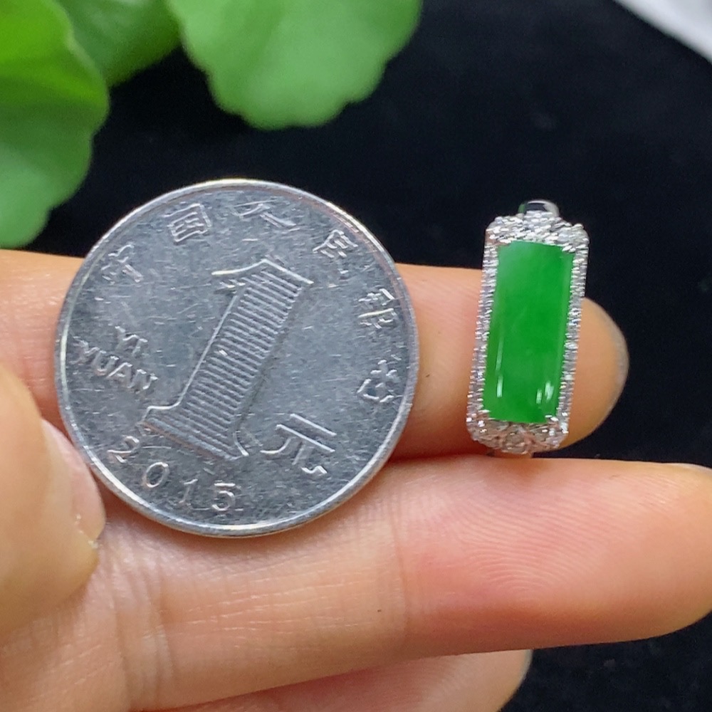 Jadeite Plain Pendant Ring 18k with Diamond Accents Size 12 Total Weight Approx. 3g