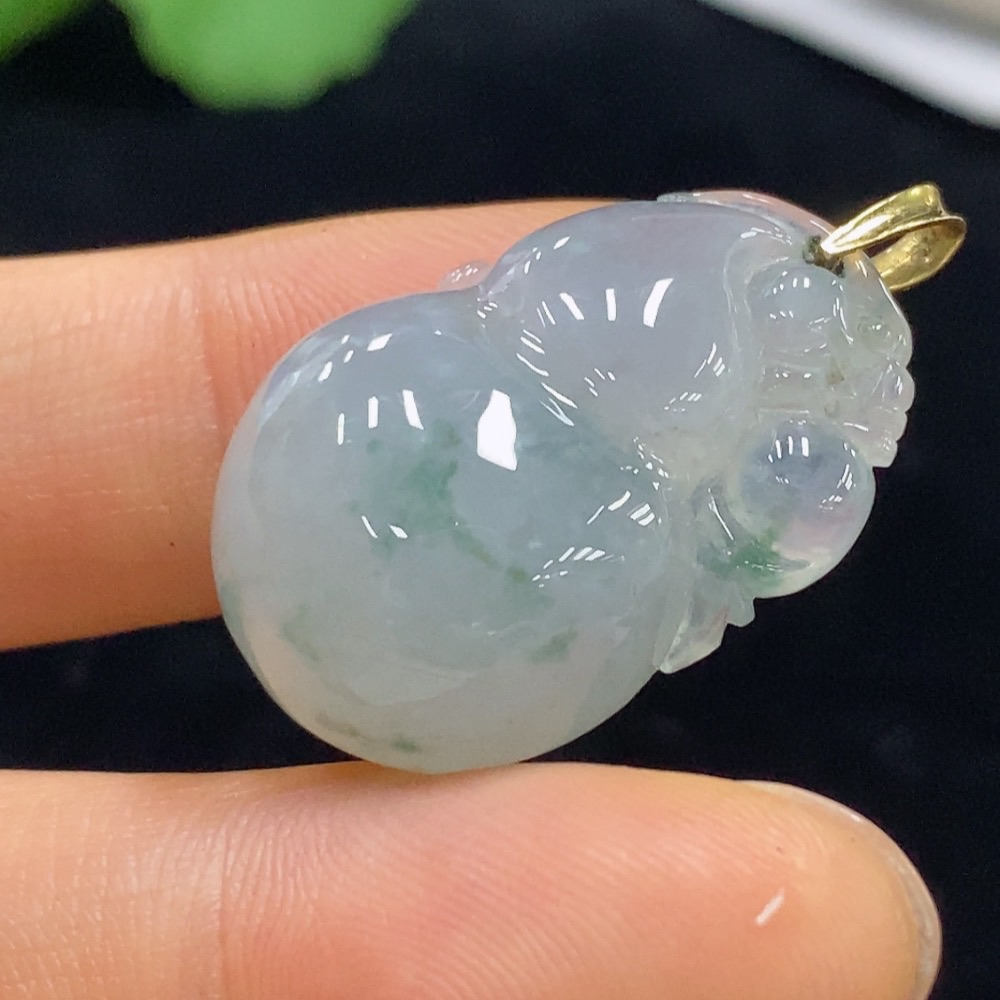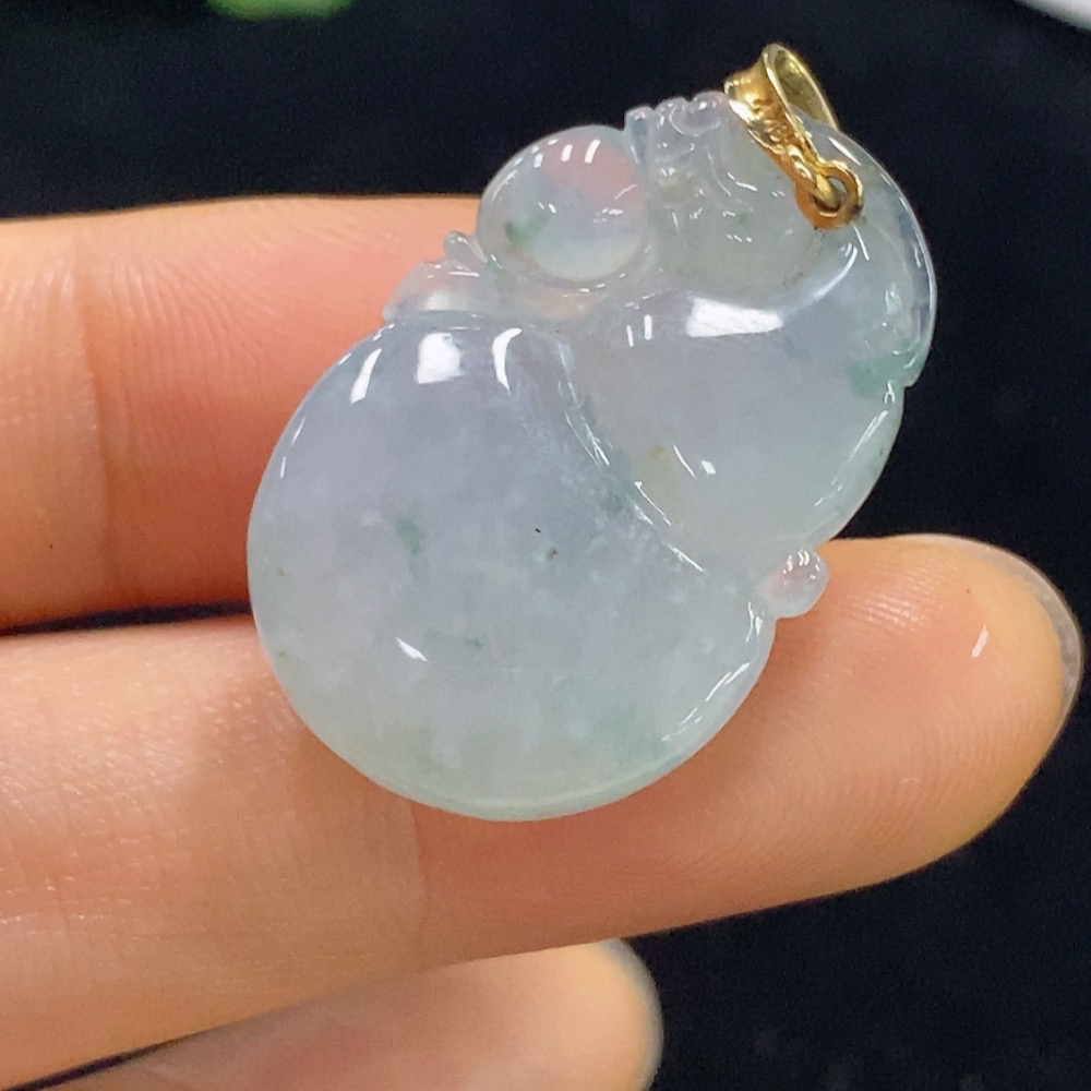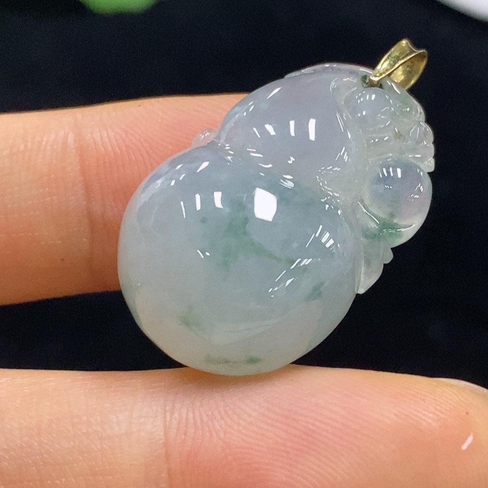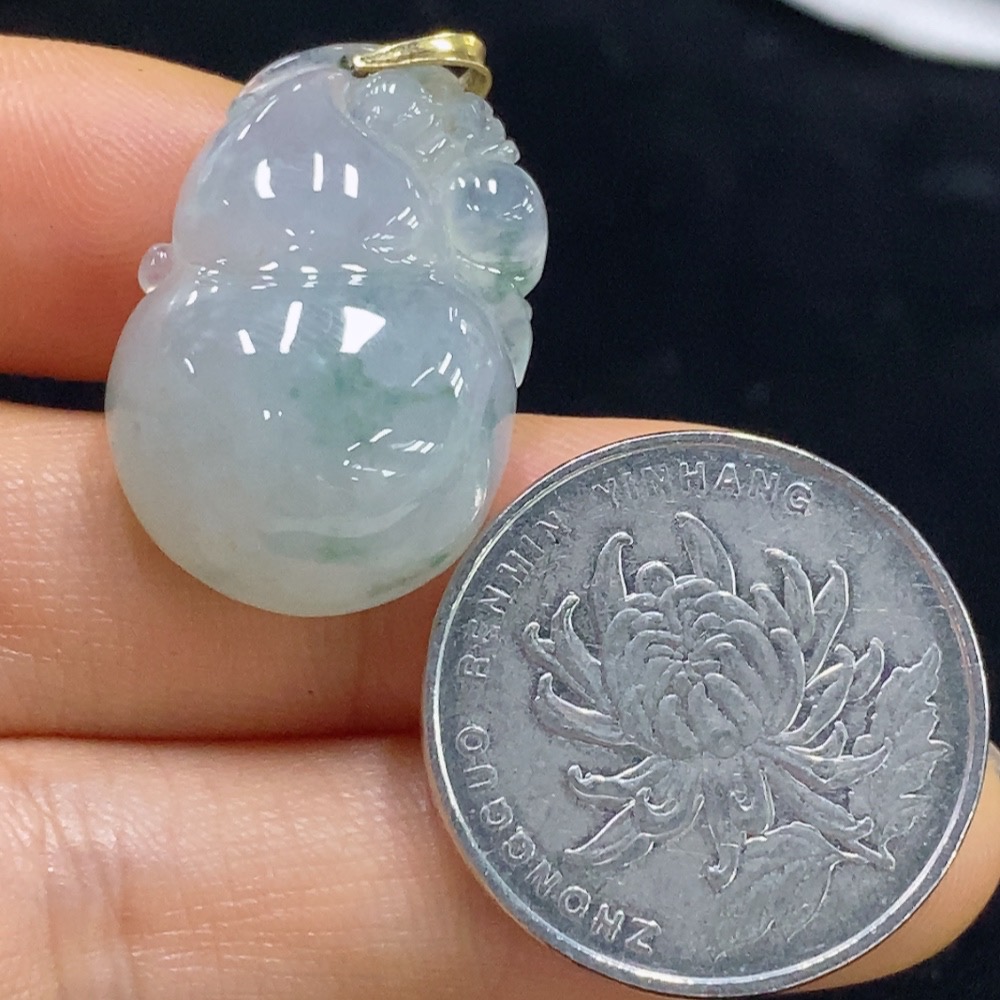 Jadeite Gourd Pendant 18k Total Weight Approx. 8g