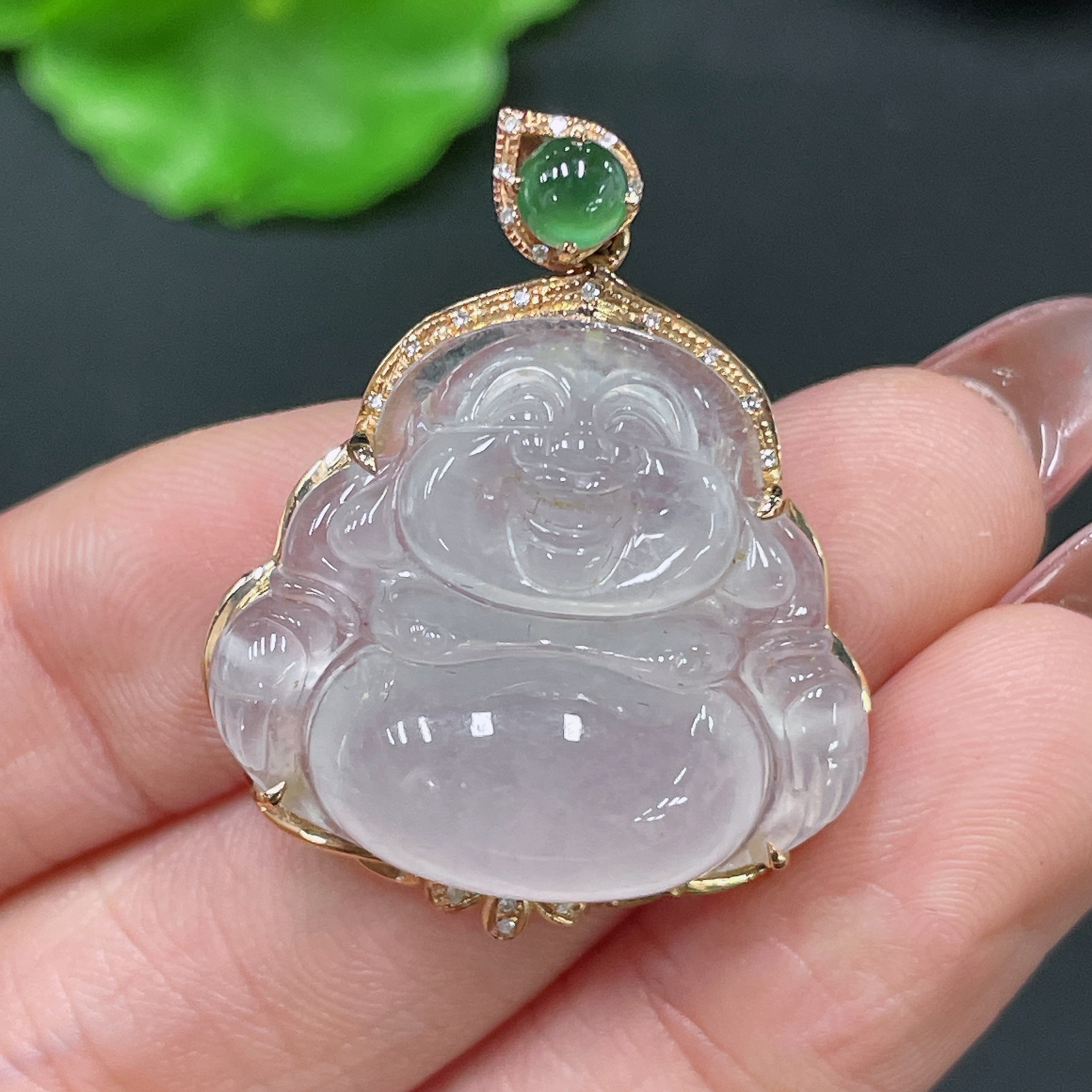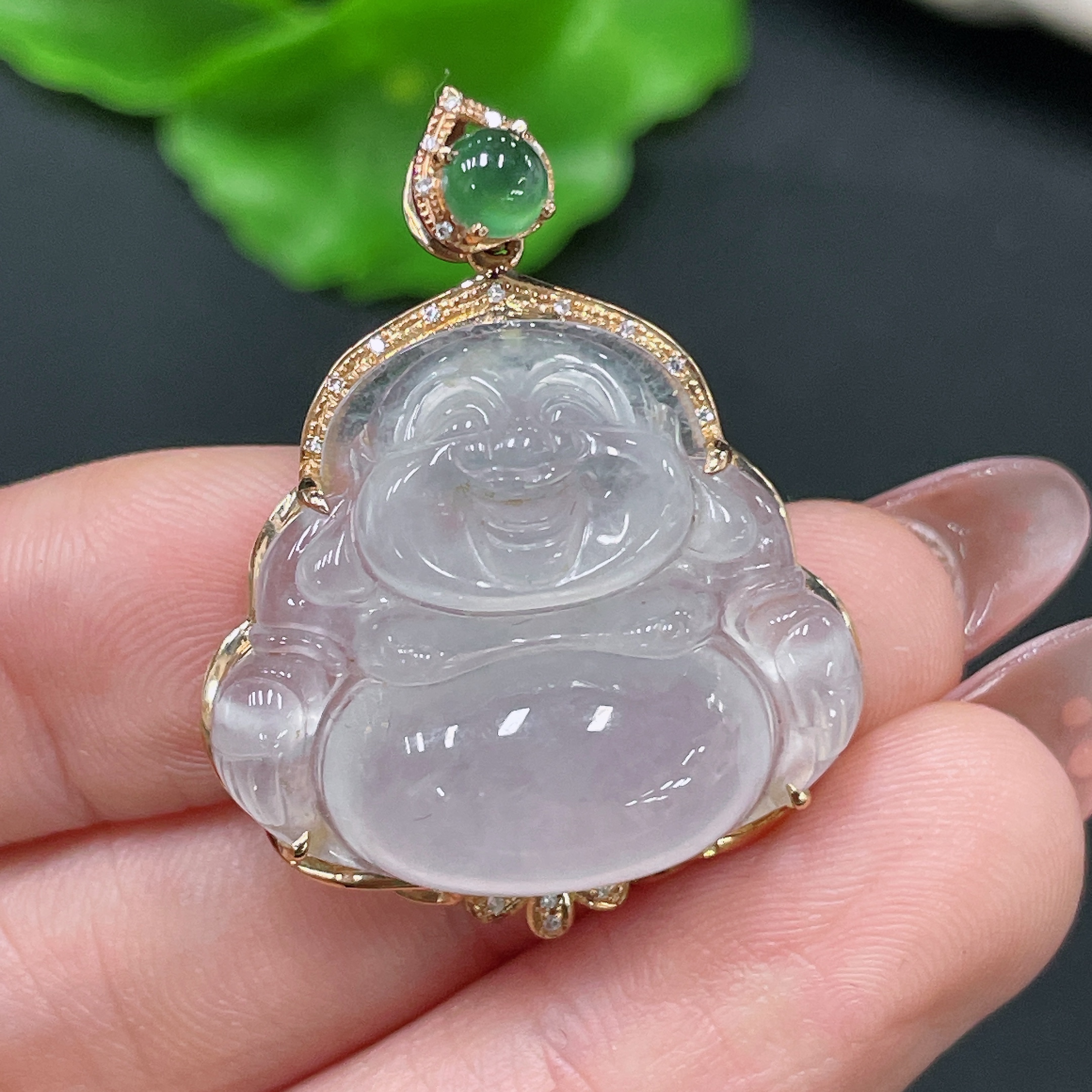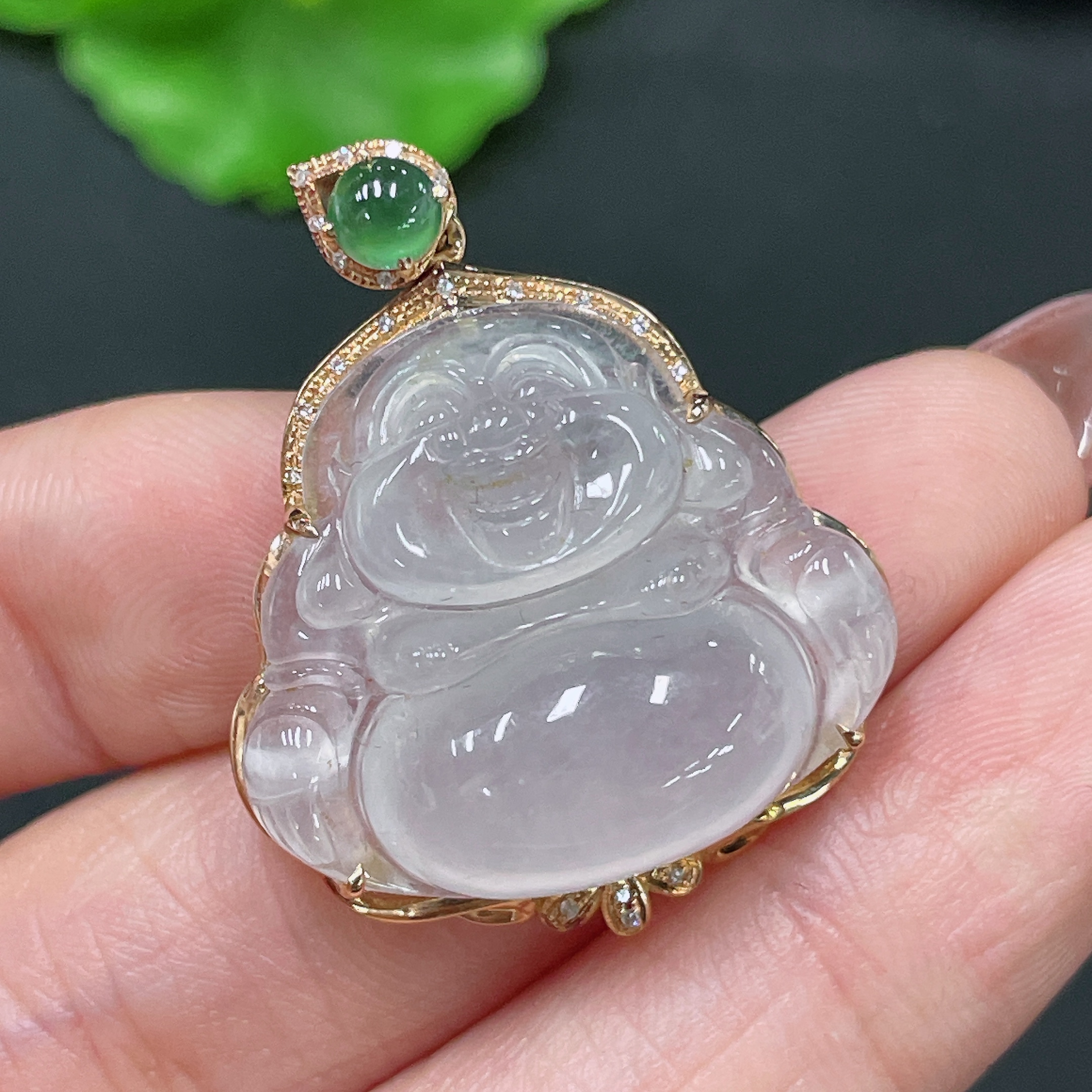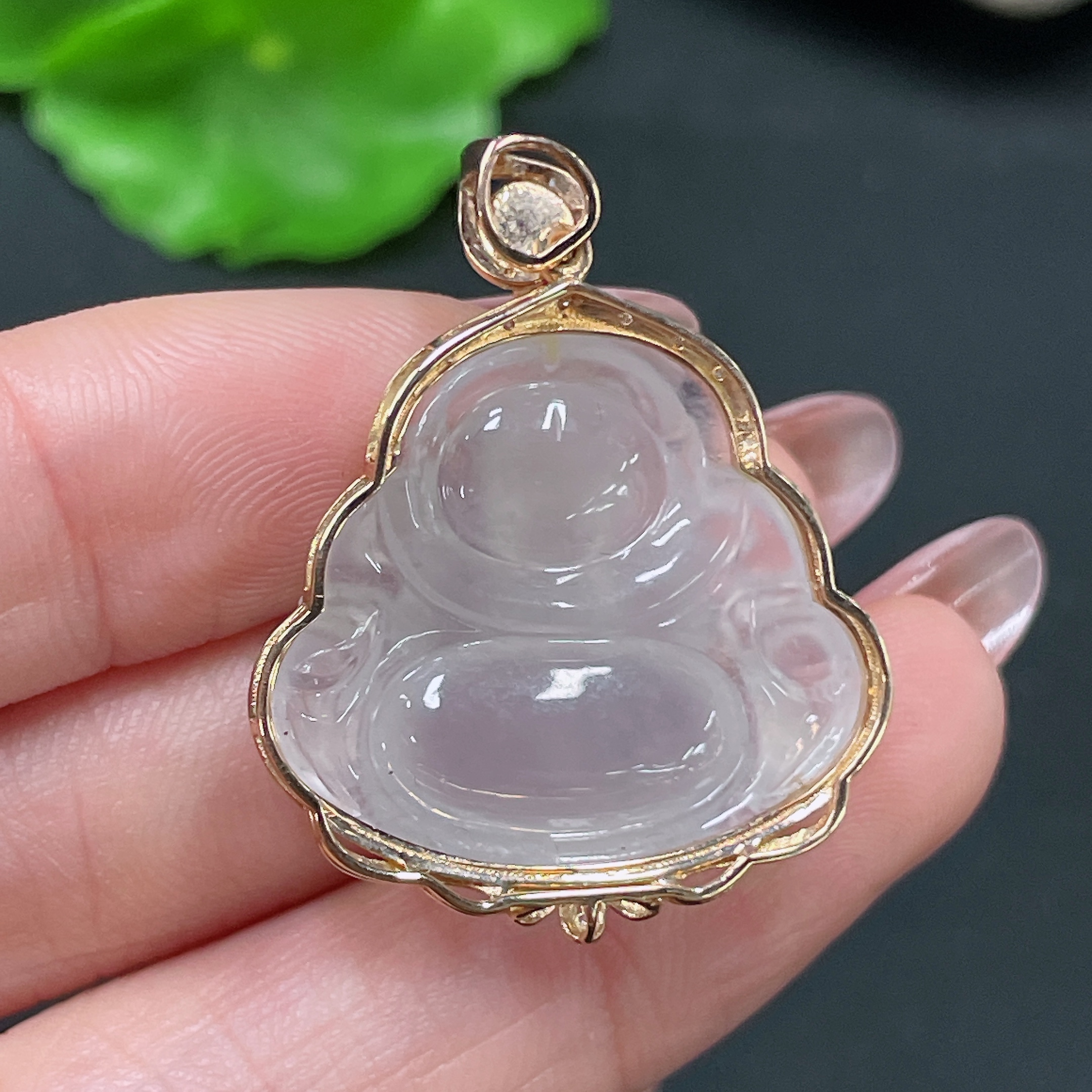 Jadeite Buddha Pendant with 18K Gold and Diamond Accents, Total Weight Approx. 7.16g
