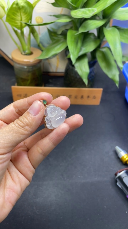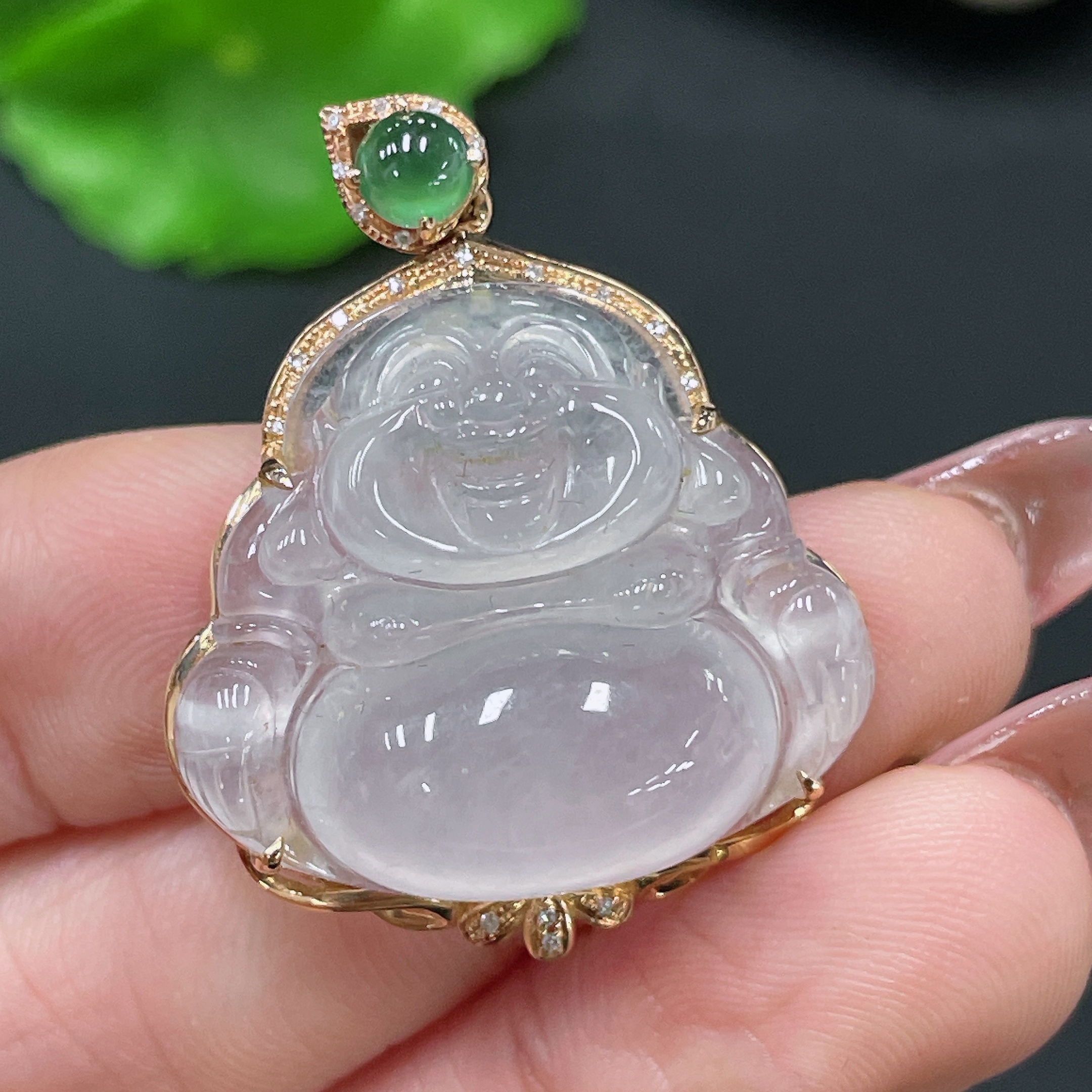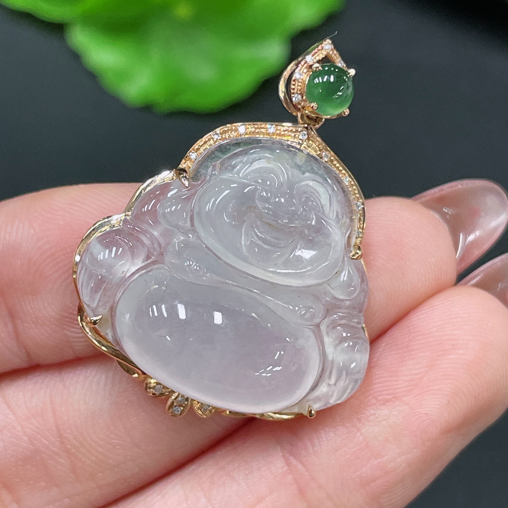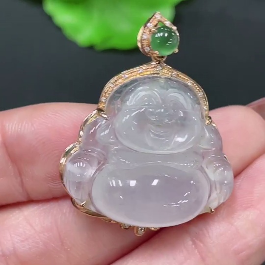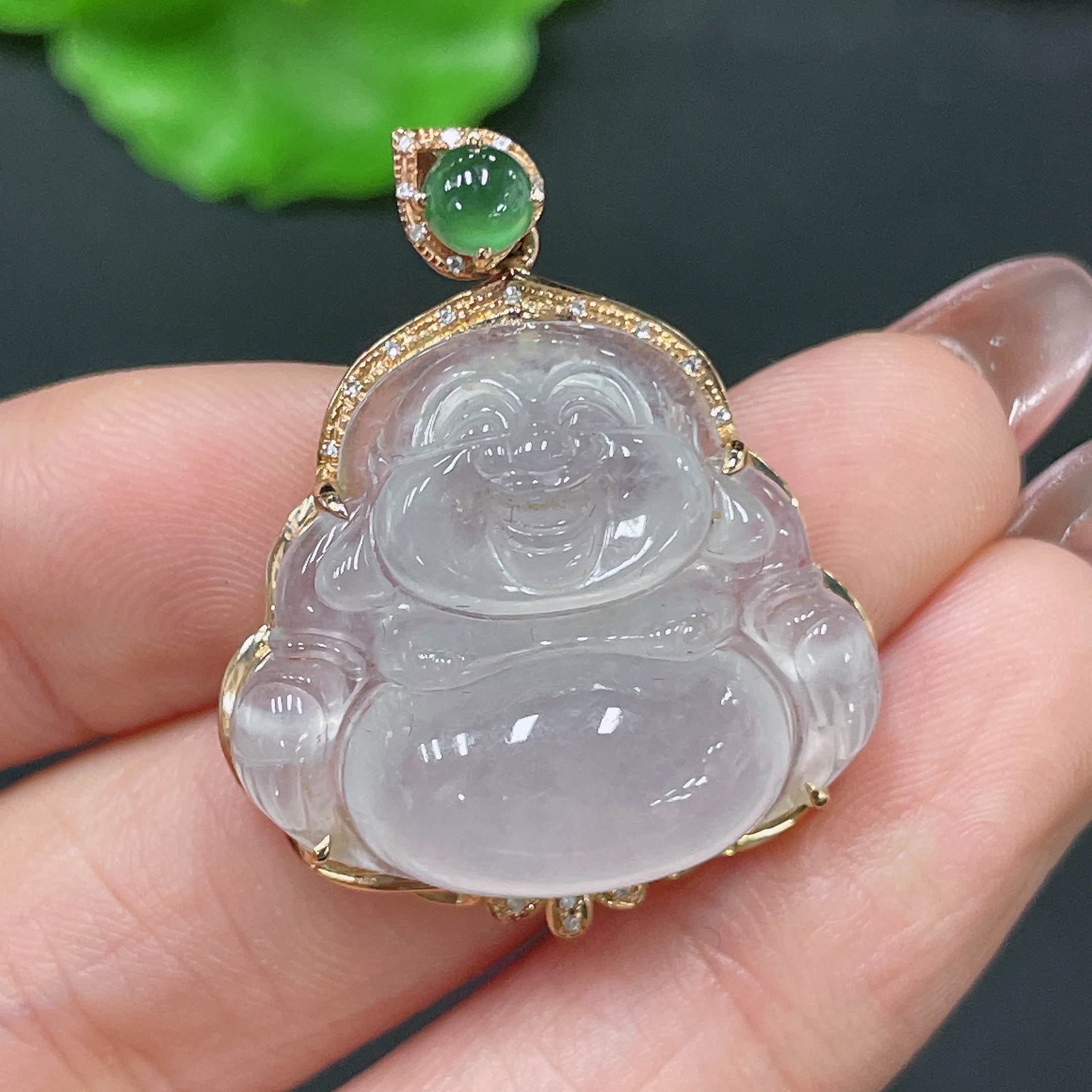 Jadeite Buddha Pendant with 18K Gold and Diamond Accents, Total Weight Approx. 7.16g