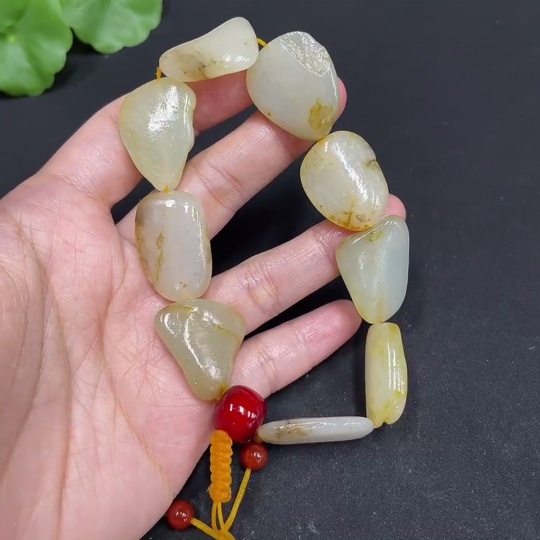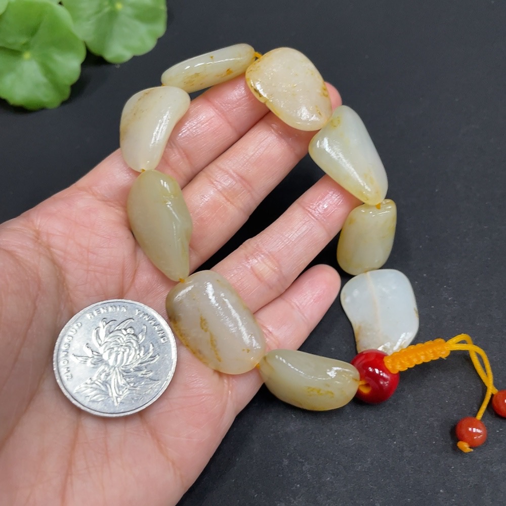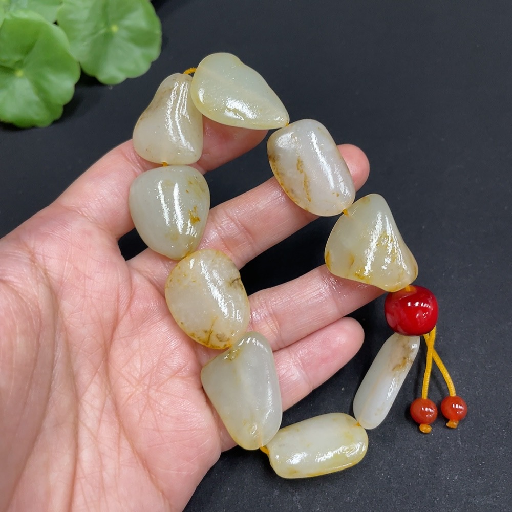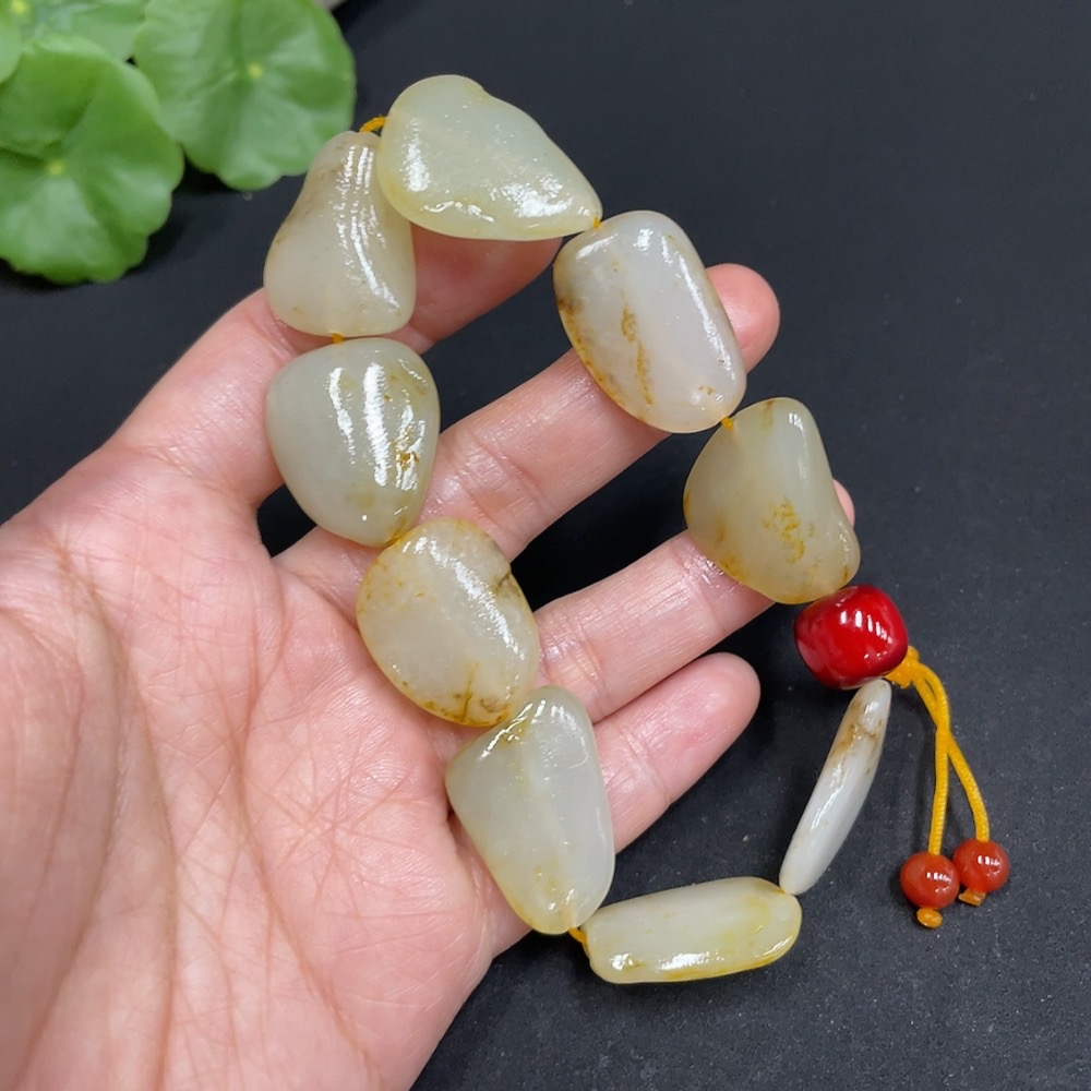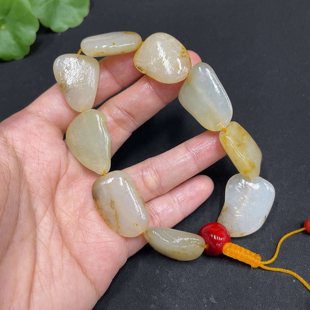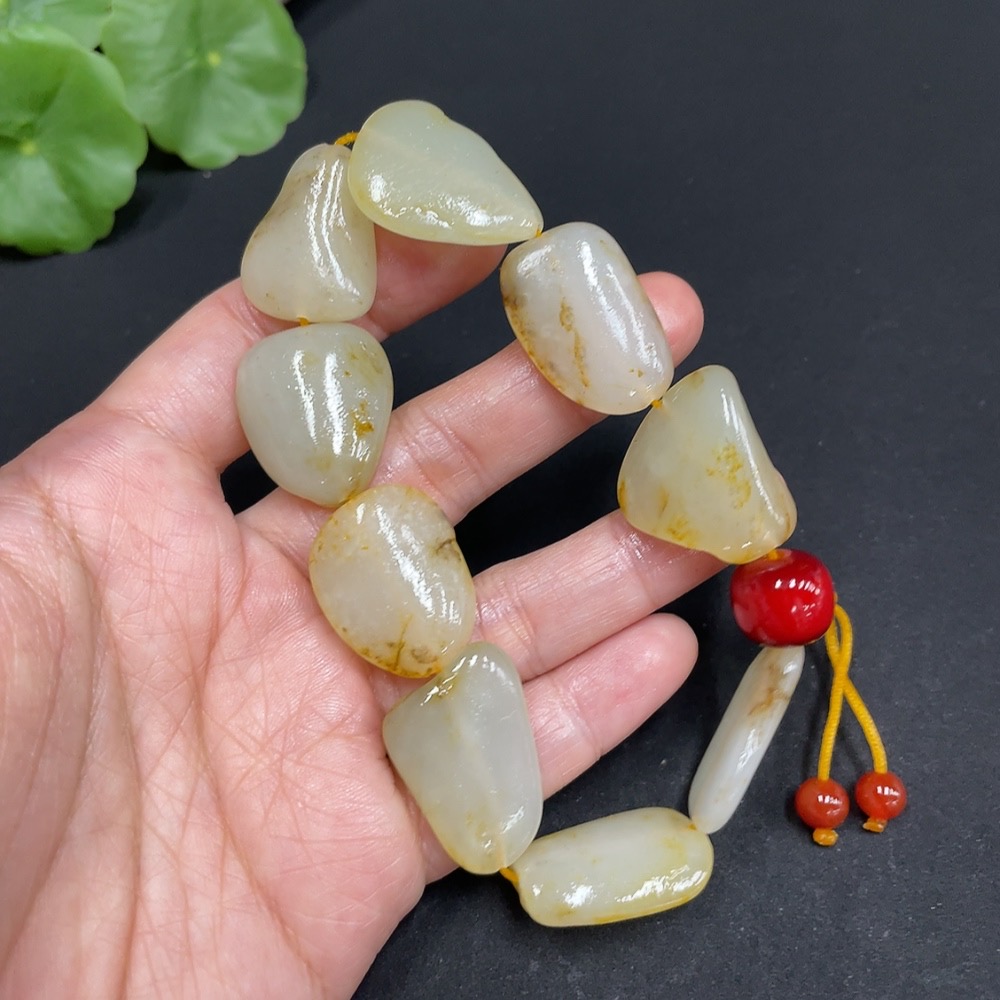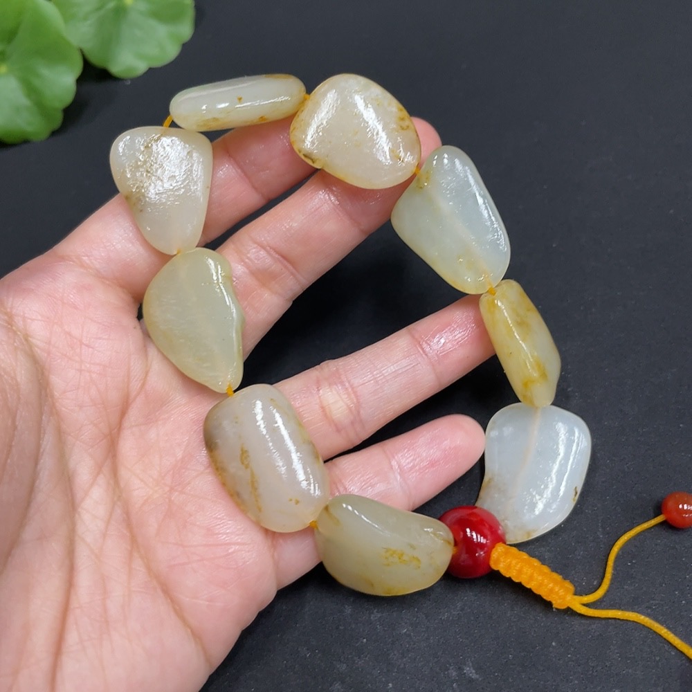 Hetian Jade Bracelet, Undetermined Skin Color Origin, Non-Hetian Jade Beads Included, Total Weight Approximately 42.3g