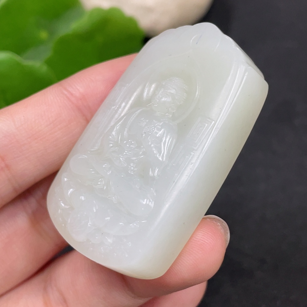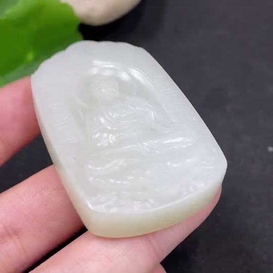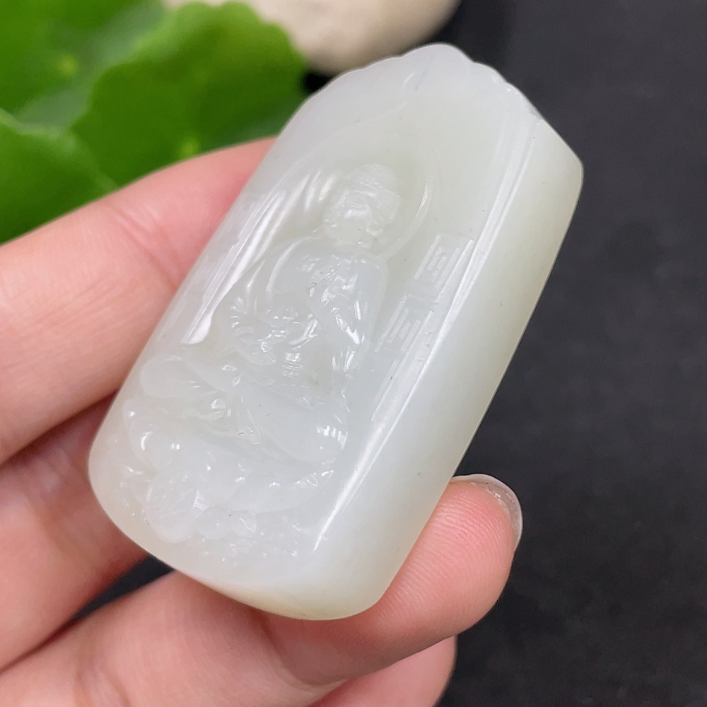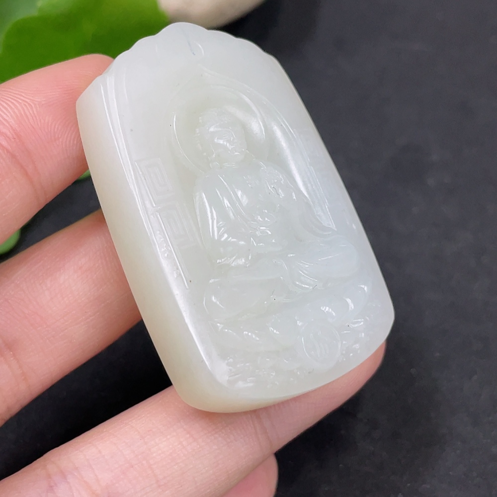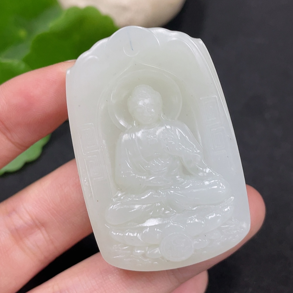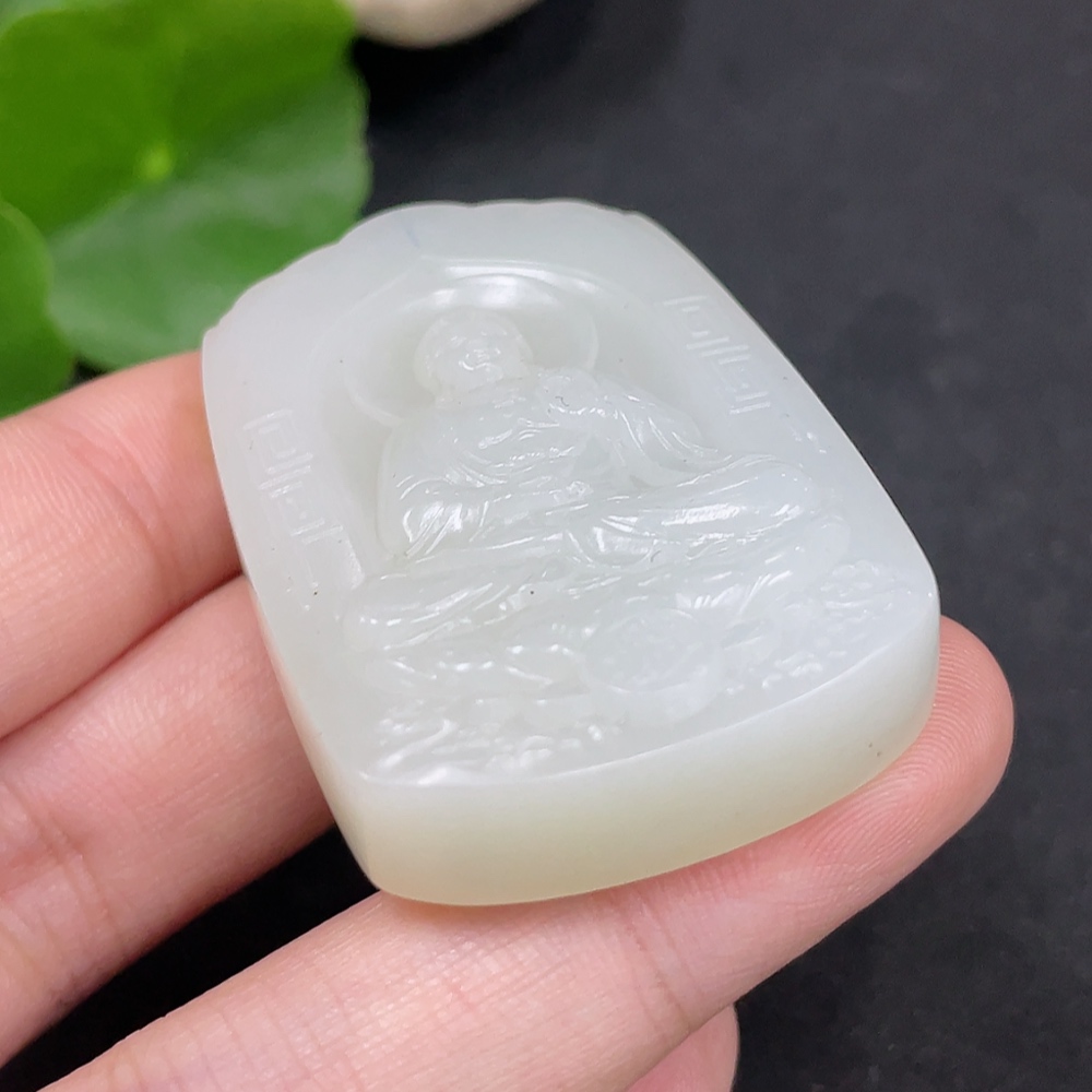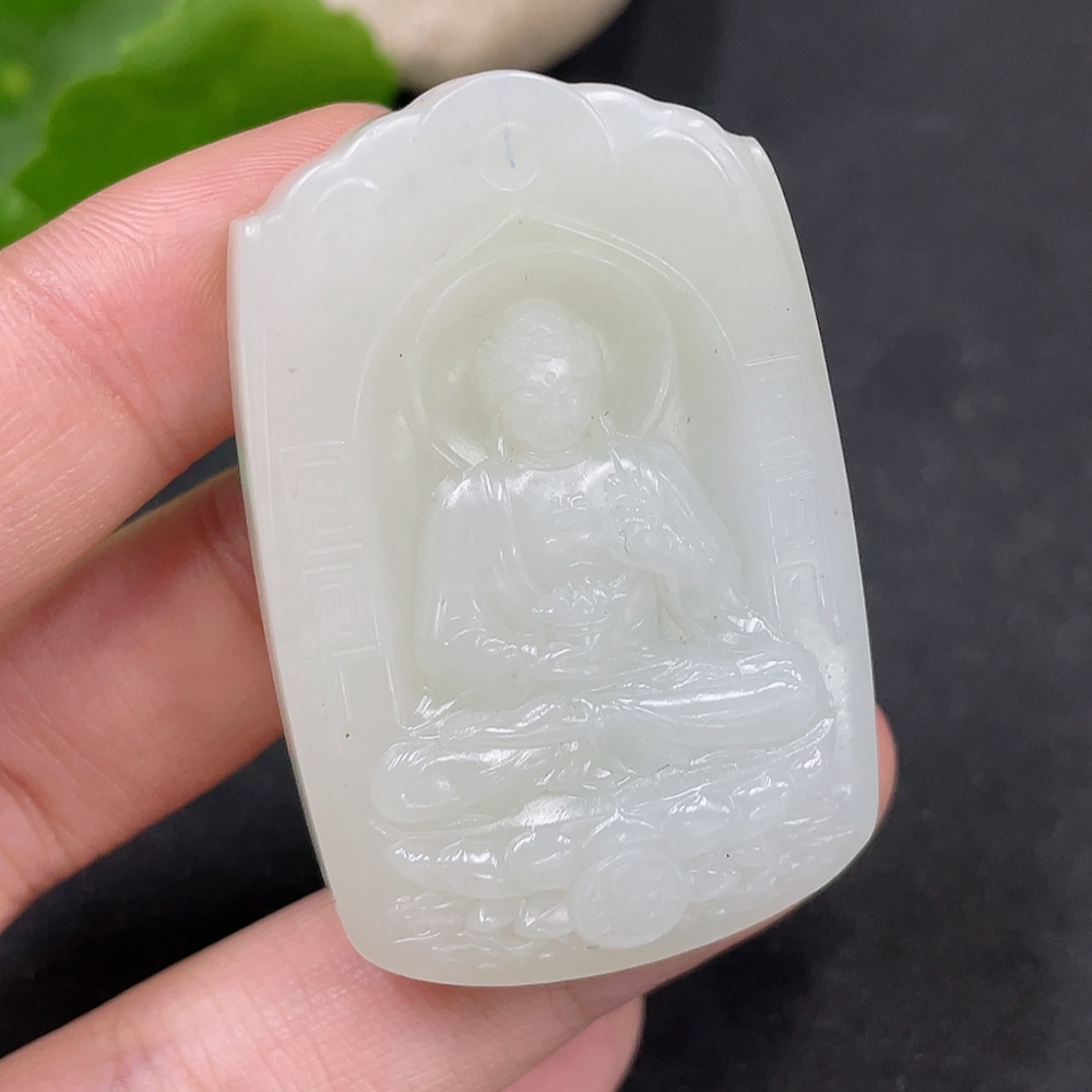 Hetian Jade Pendant Amitabha Gross Weight Approx. 37.9g Containing Other Mineral Components