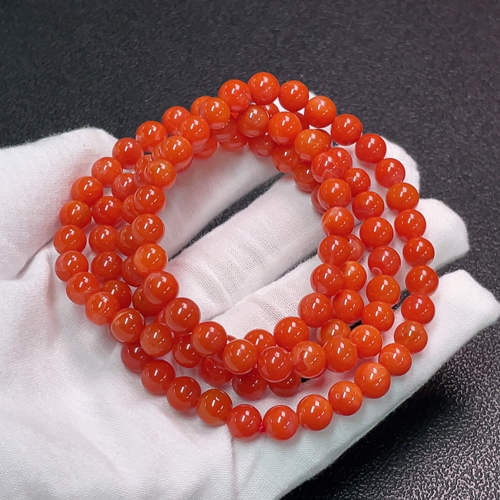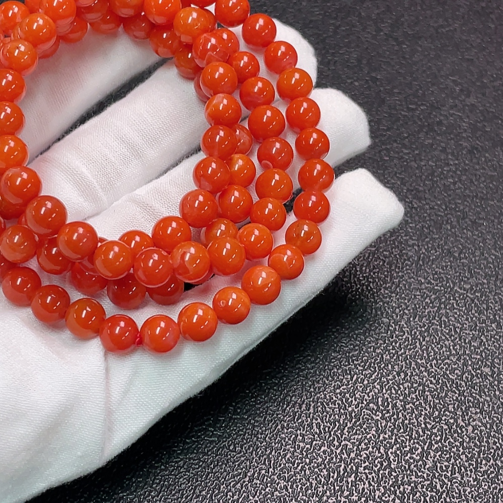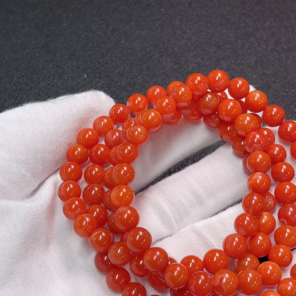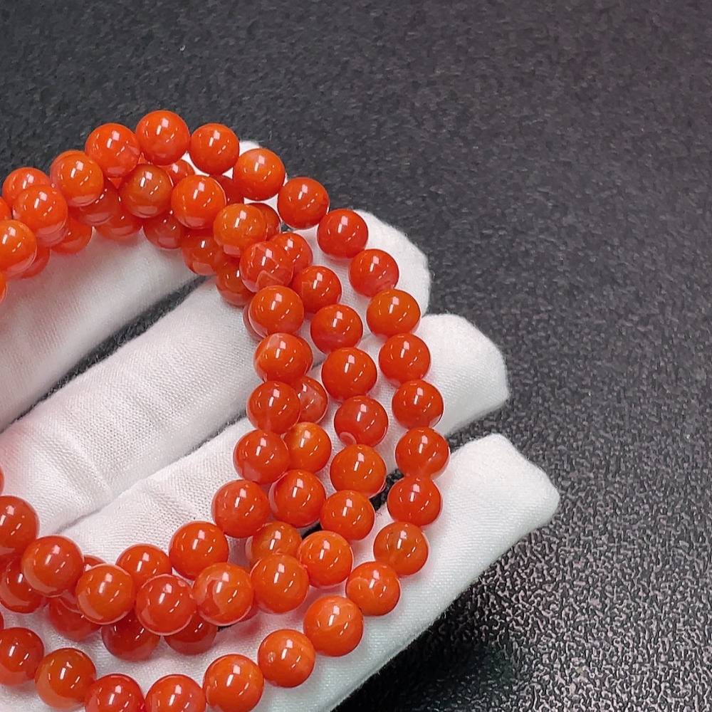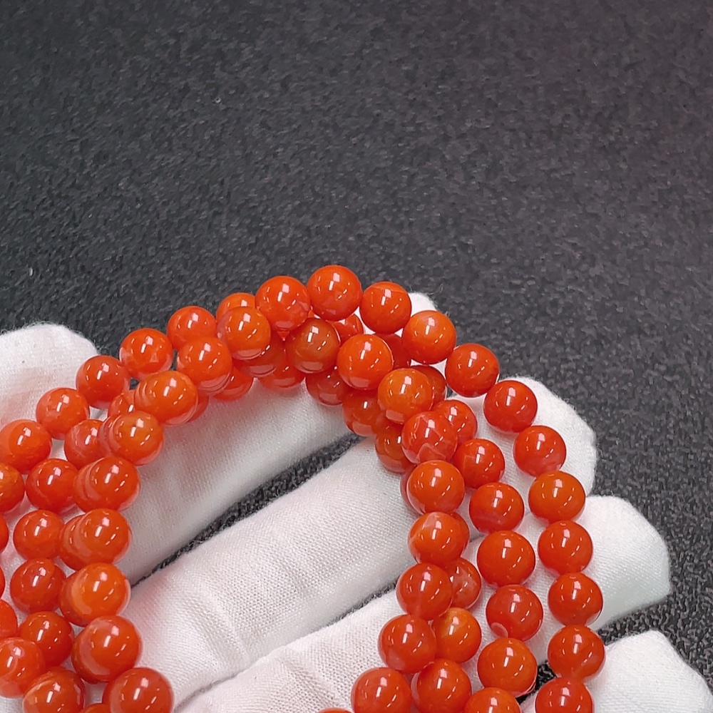 Red Agate Bead Strand with Visible Organic Matter, Total Weight Approx. 54.07g, Size About 7mm
