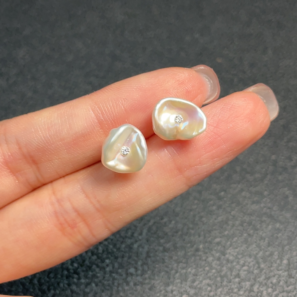 Pearl Earrings Non-Gold Total Weight Approx. 1.08g Size 11.4mm