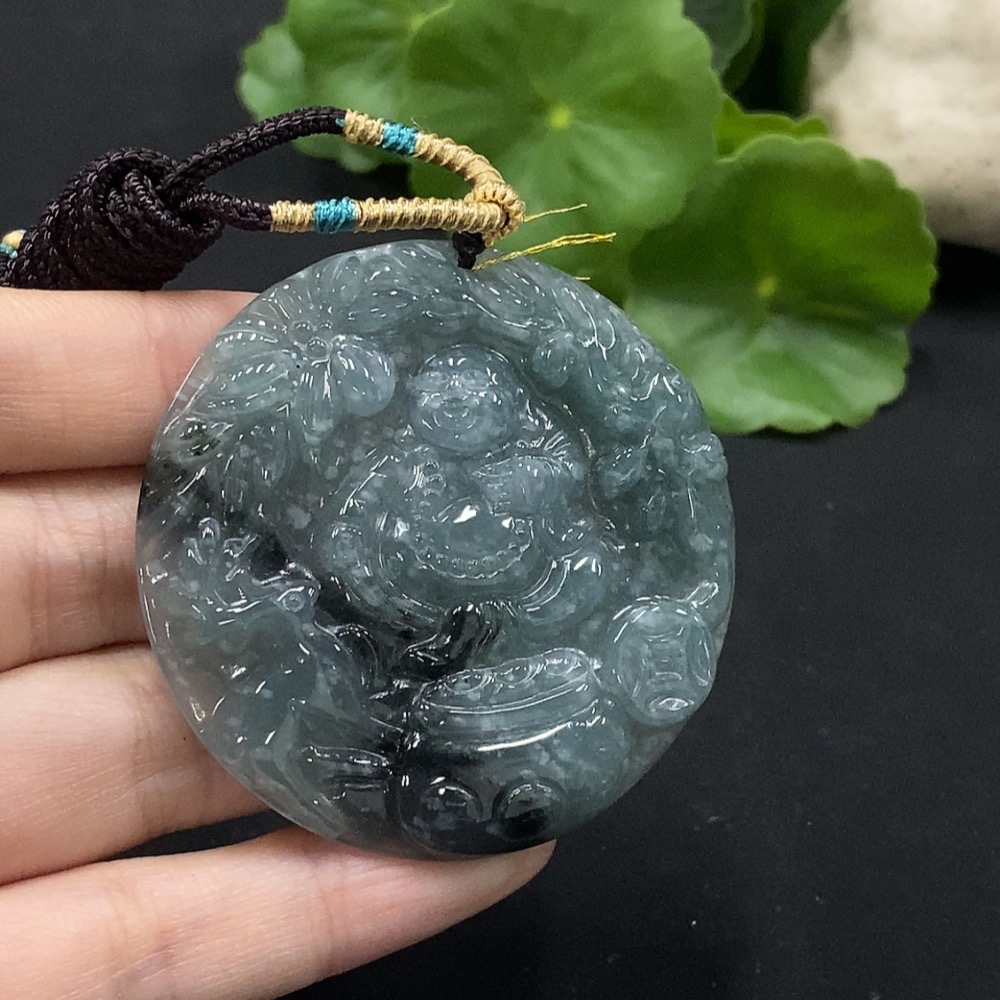 Jadeite Buddha Pendant Total Weight Approx. 27.8g (Including Rope Weight)