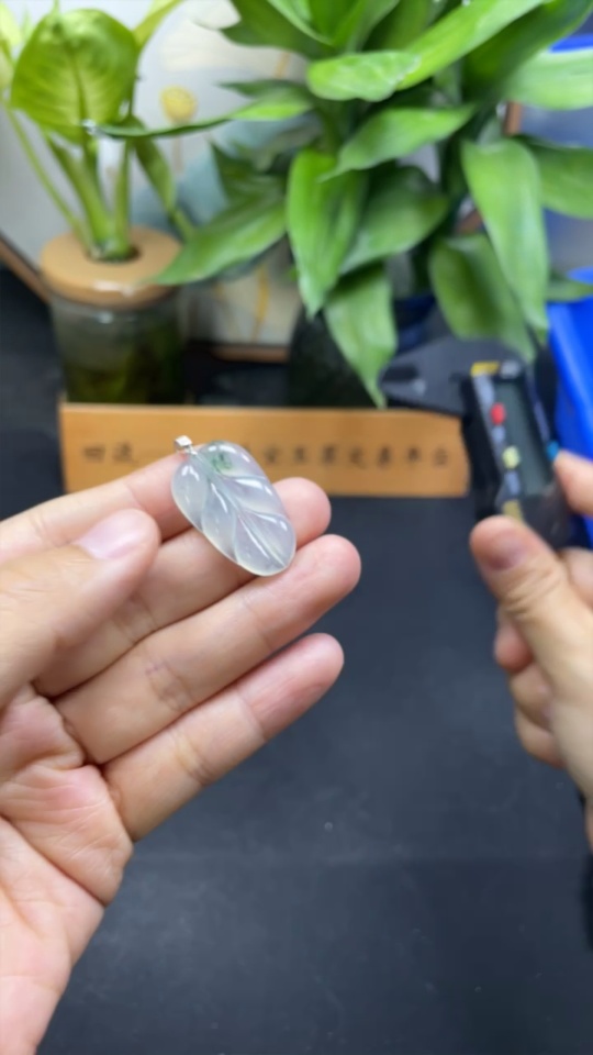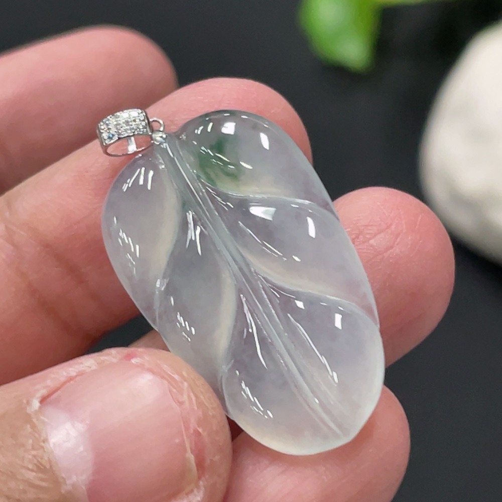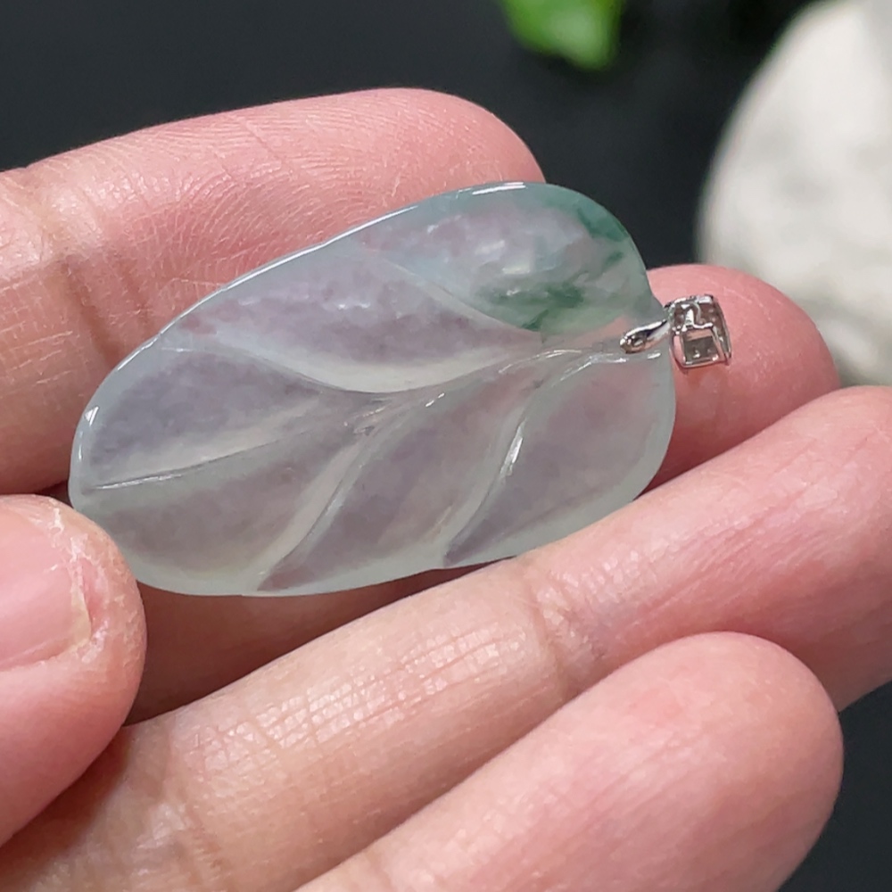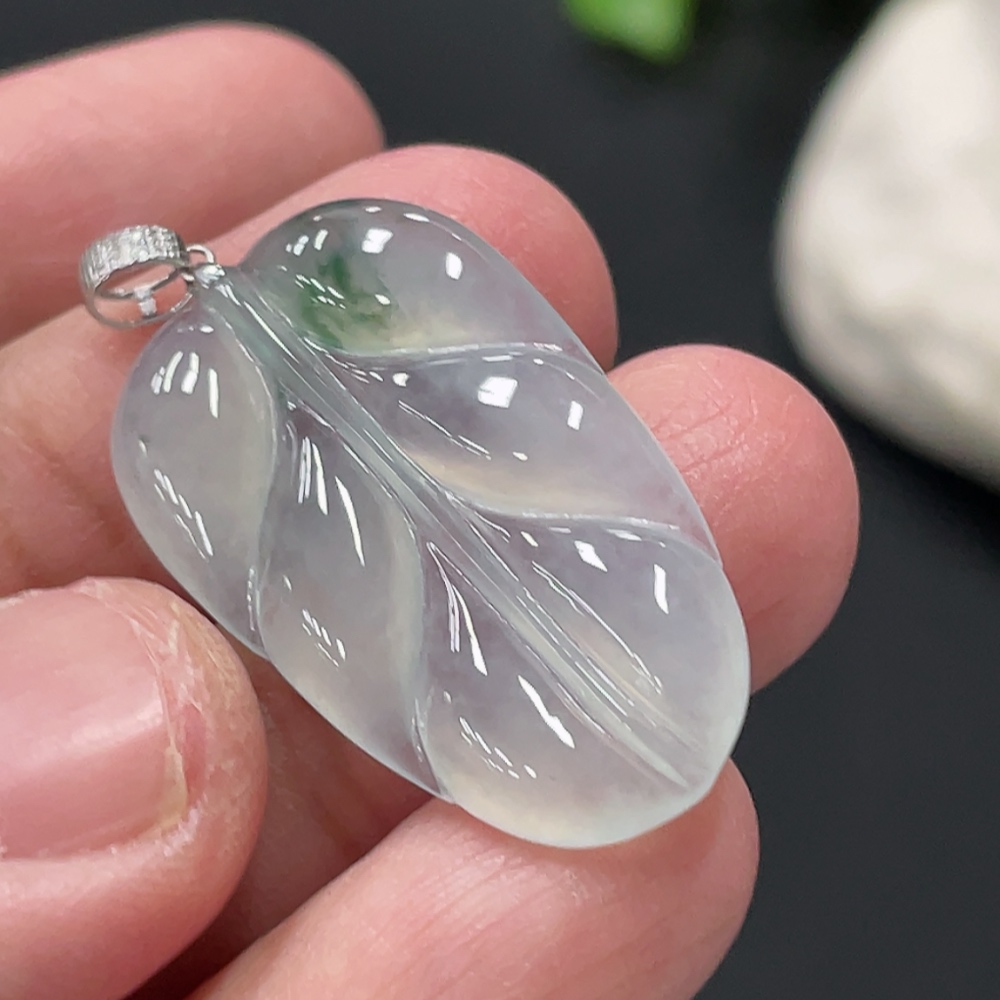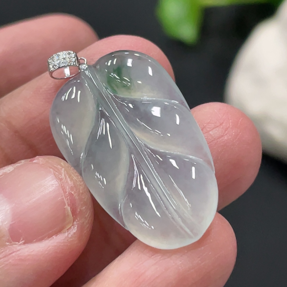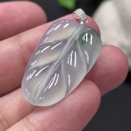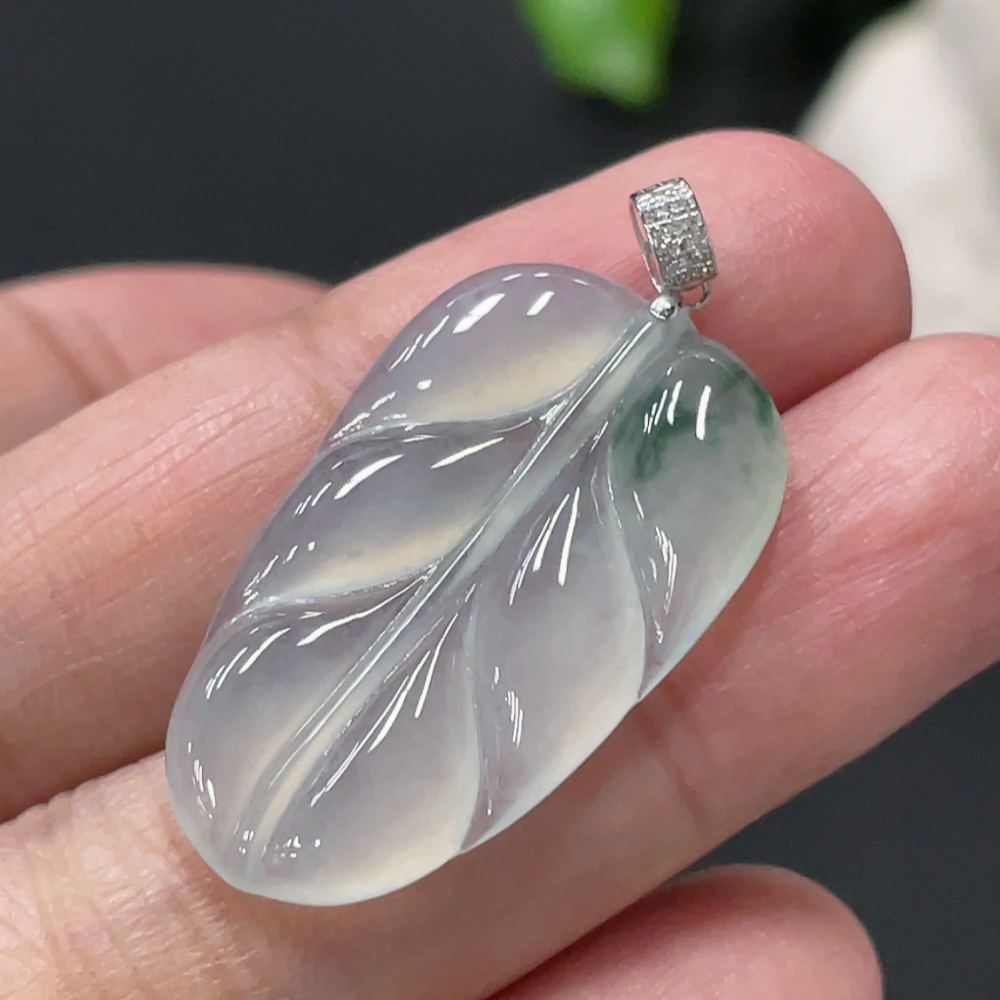 Jadeite Leaf Pendant Total Weight Approx. 3.78g 18K Gold Clasp with Diamond Accents