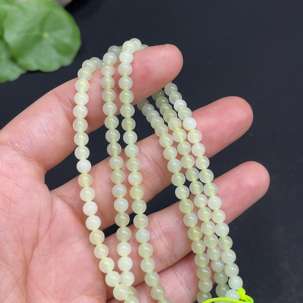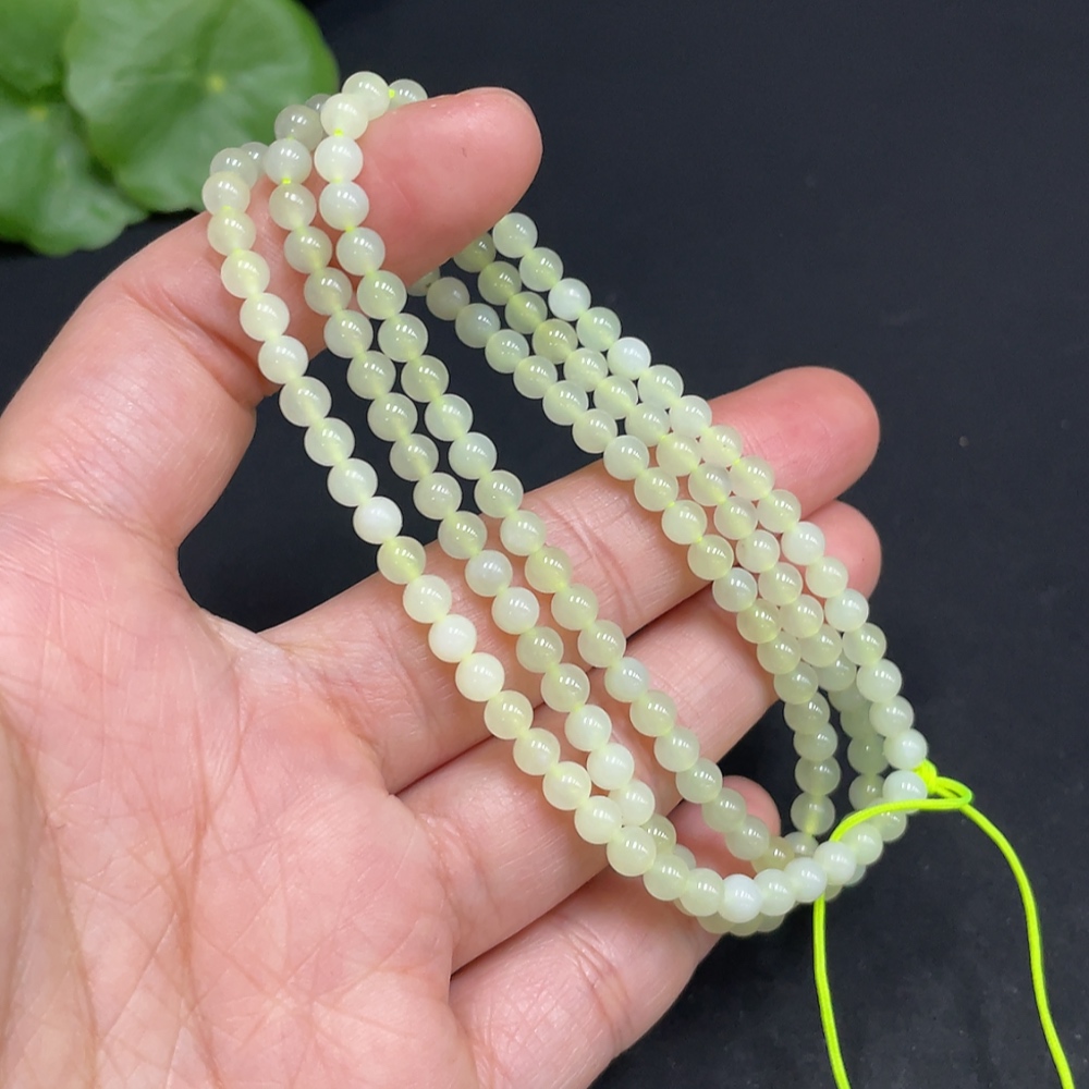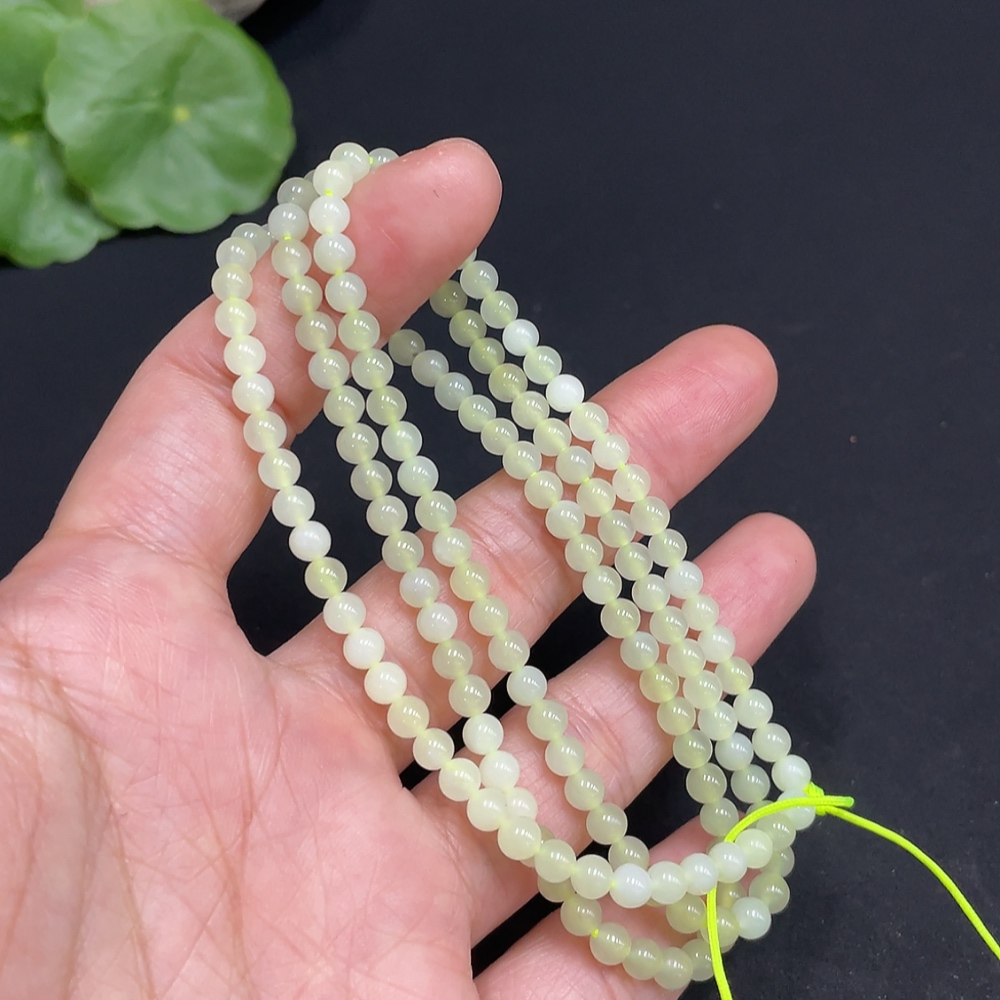 Hetian Jade Bead Necklace, Approx. 3.8mm, Total Weight Approx. 14.5g