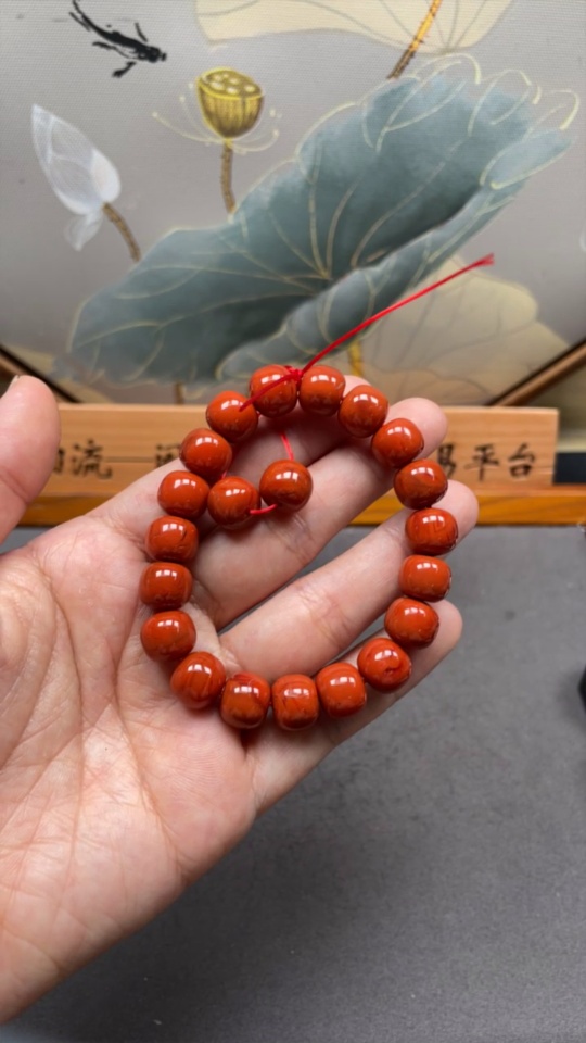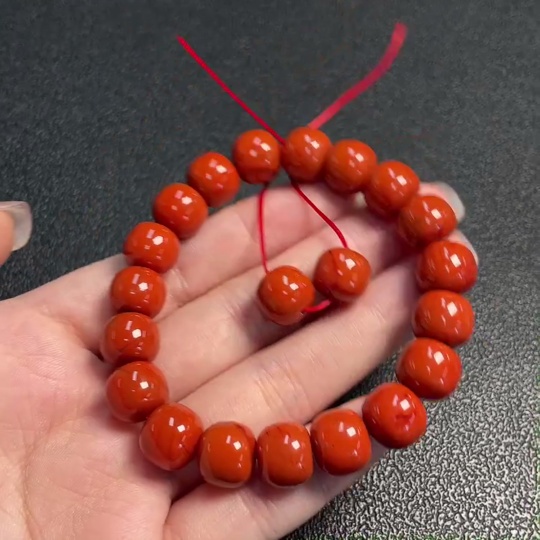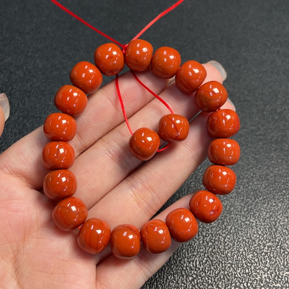 Red Agate Bracelet with Visible Organic Matter, Total Weight Approx. 36.07g, Size About 10.6mm