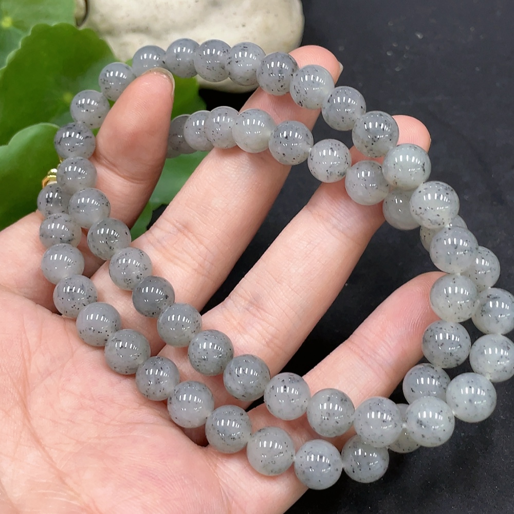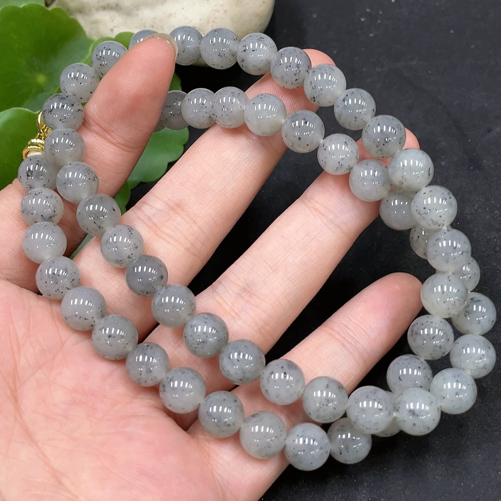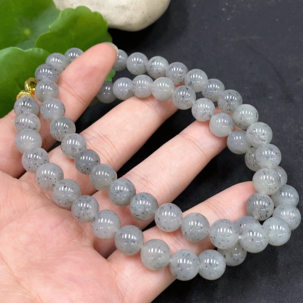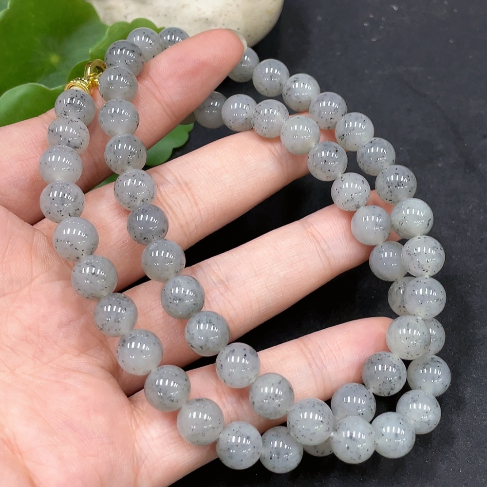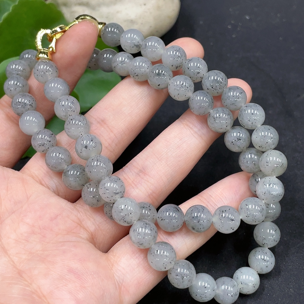 Hetian Jade Bead Necklace Approx. 8mm Non-Gold-Inlaid Total Weight Approx. 47.8g