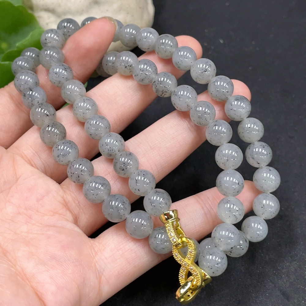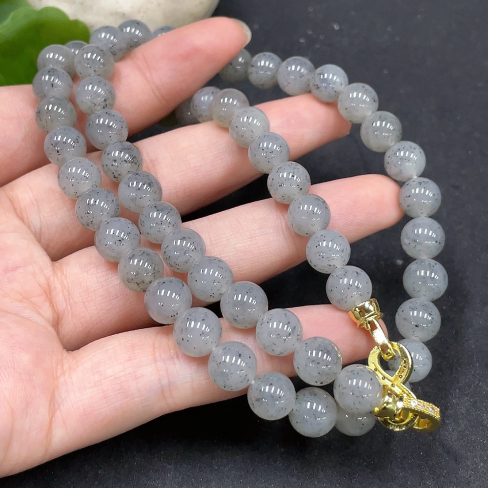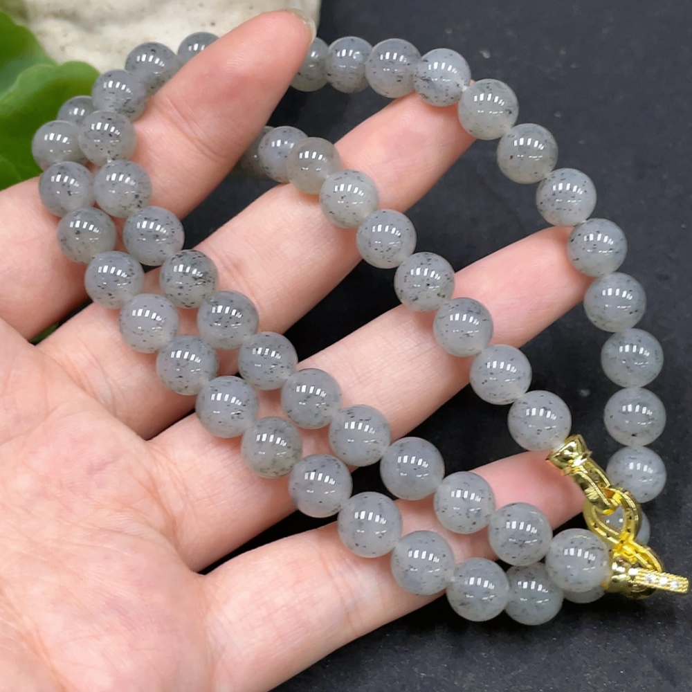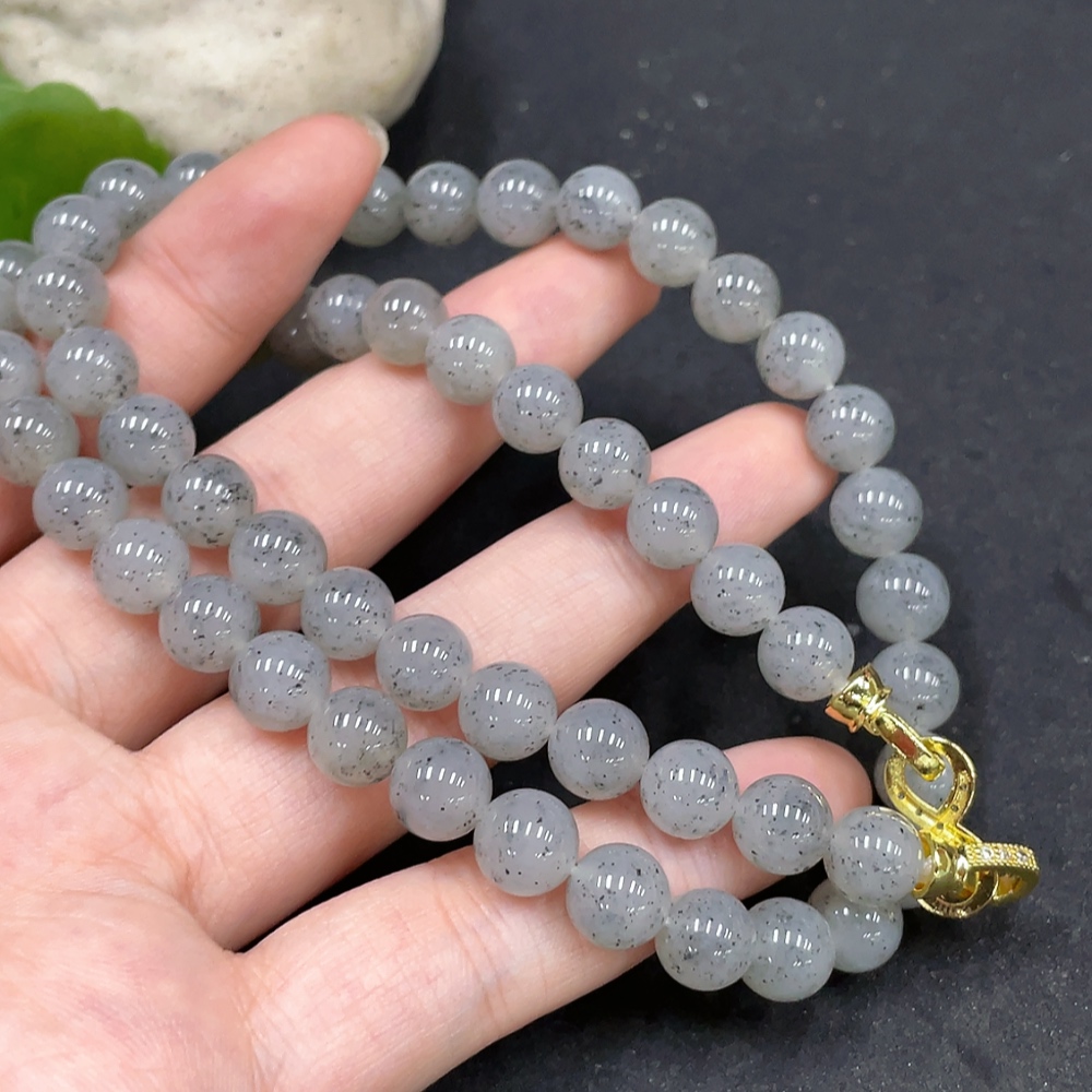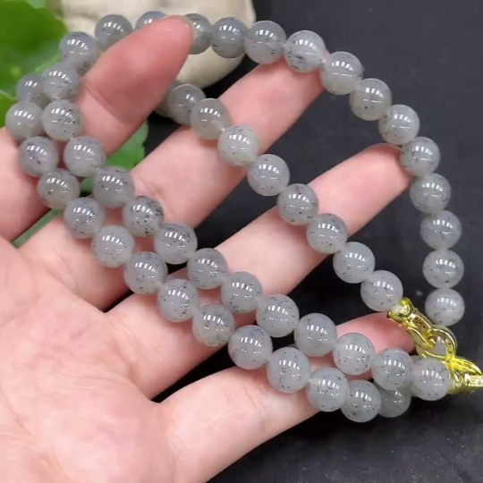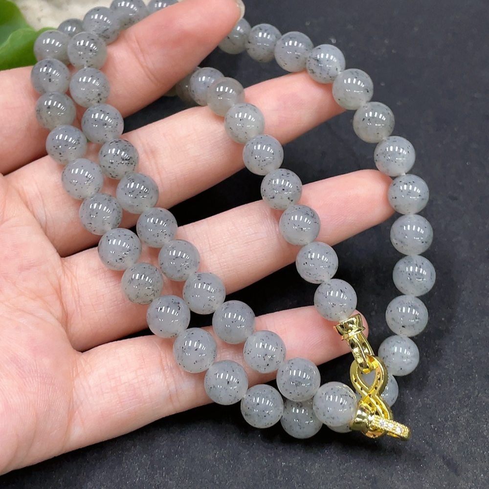 Hetian Jade Bead Necklace Approx. 7.8mm Non-Gold-Inlaid Total Weight About 47.3g