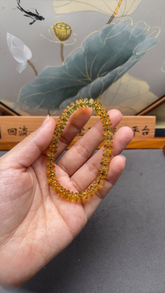 Amber Beeswax Bracelet, Total Weight Approx. 5.8g, Size About 7.4mm