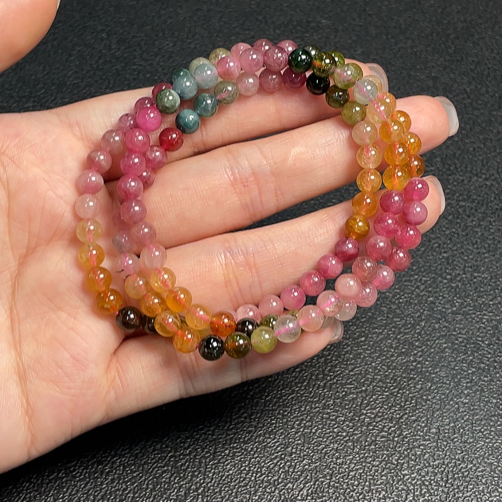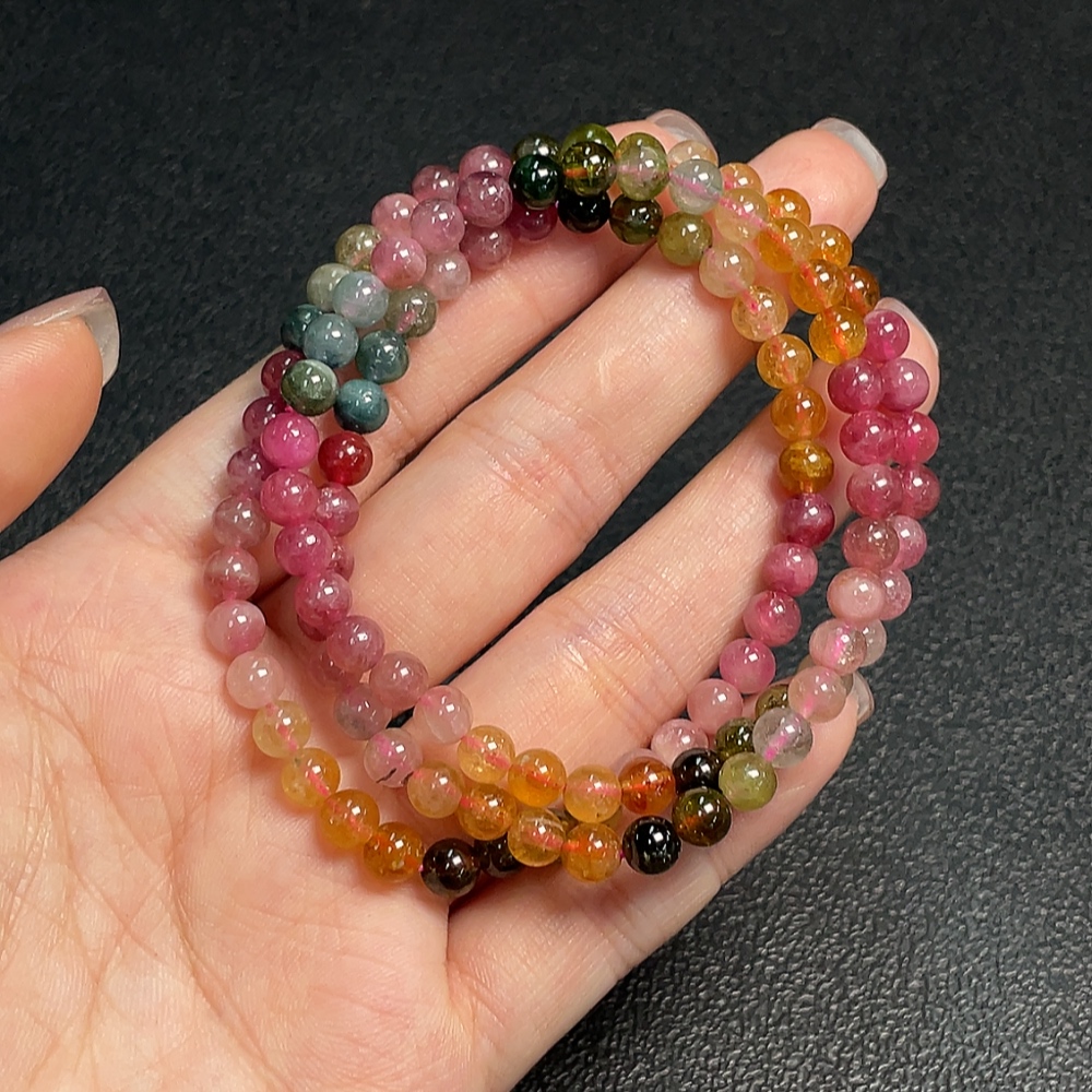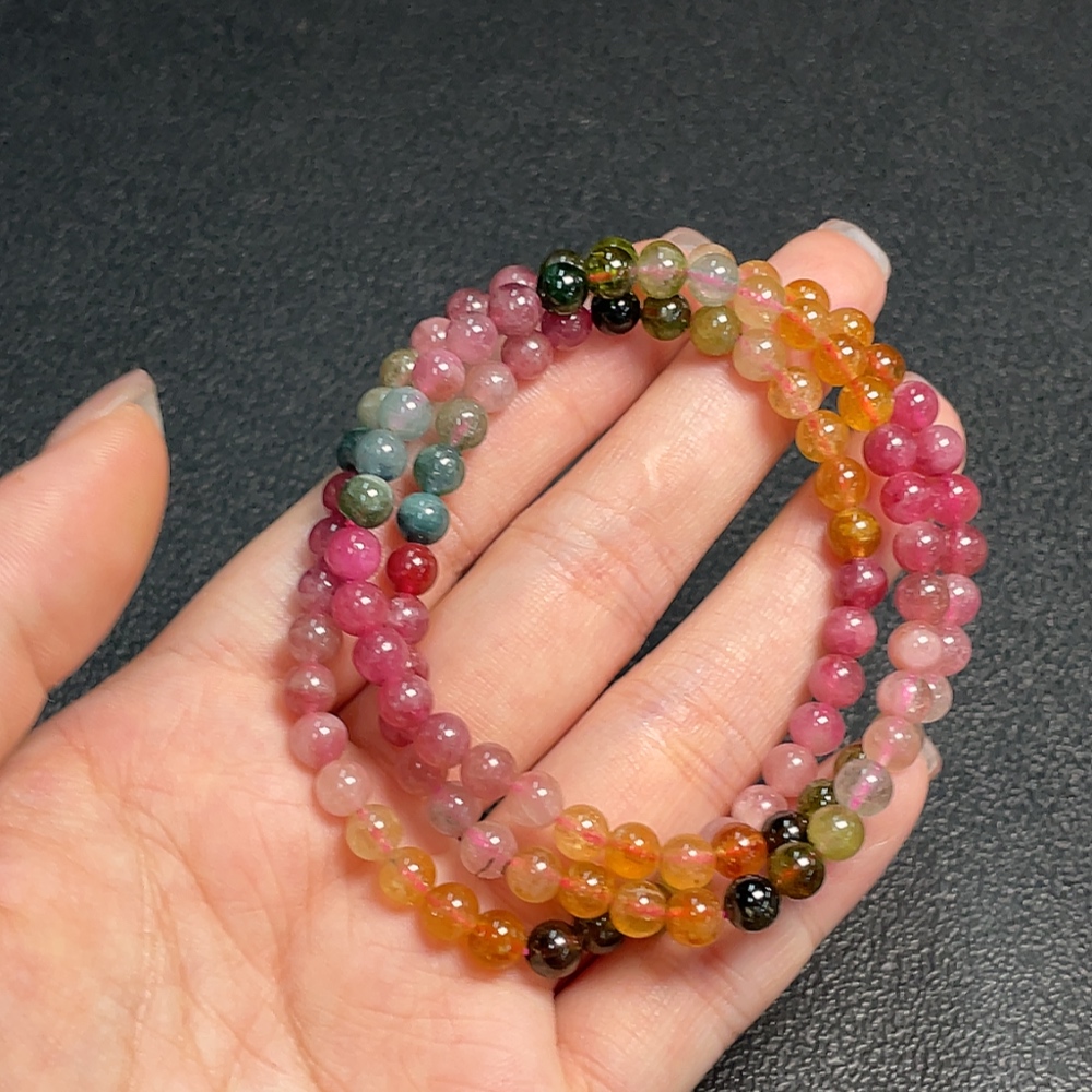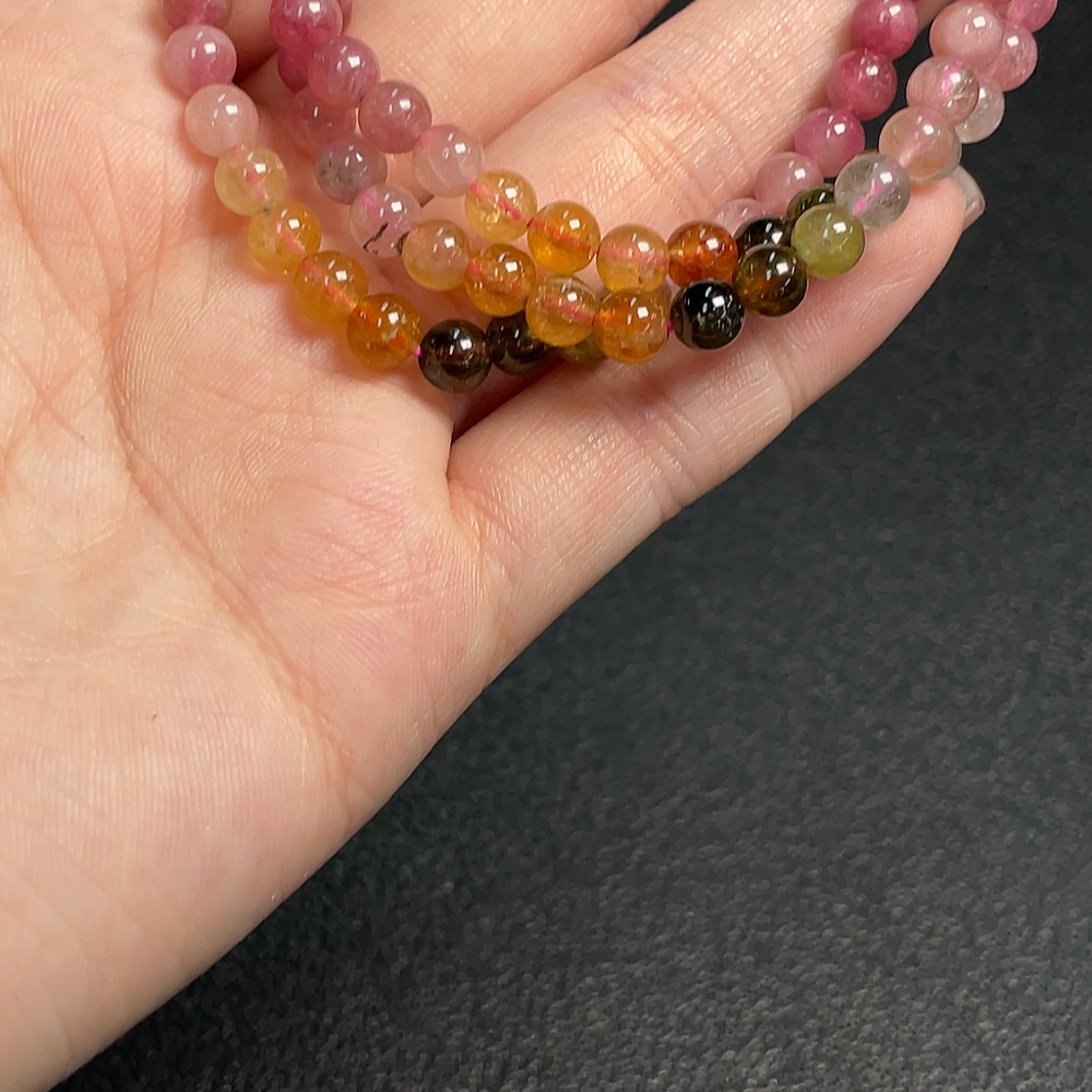 Tourmaline Bead Strand with Other Mineral Components and Visible Organic Matter, Total Weight Approximately 24.14g, Approximately 5.3mm in Size