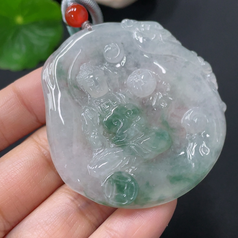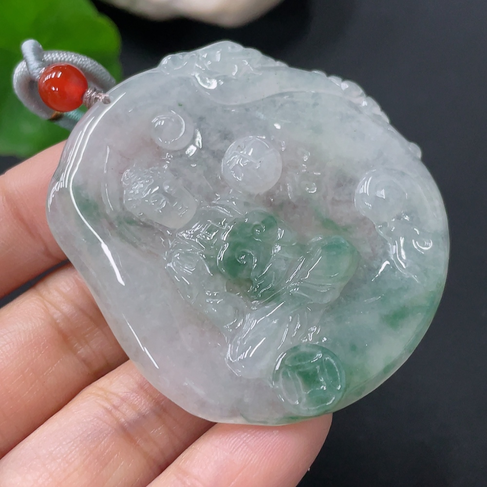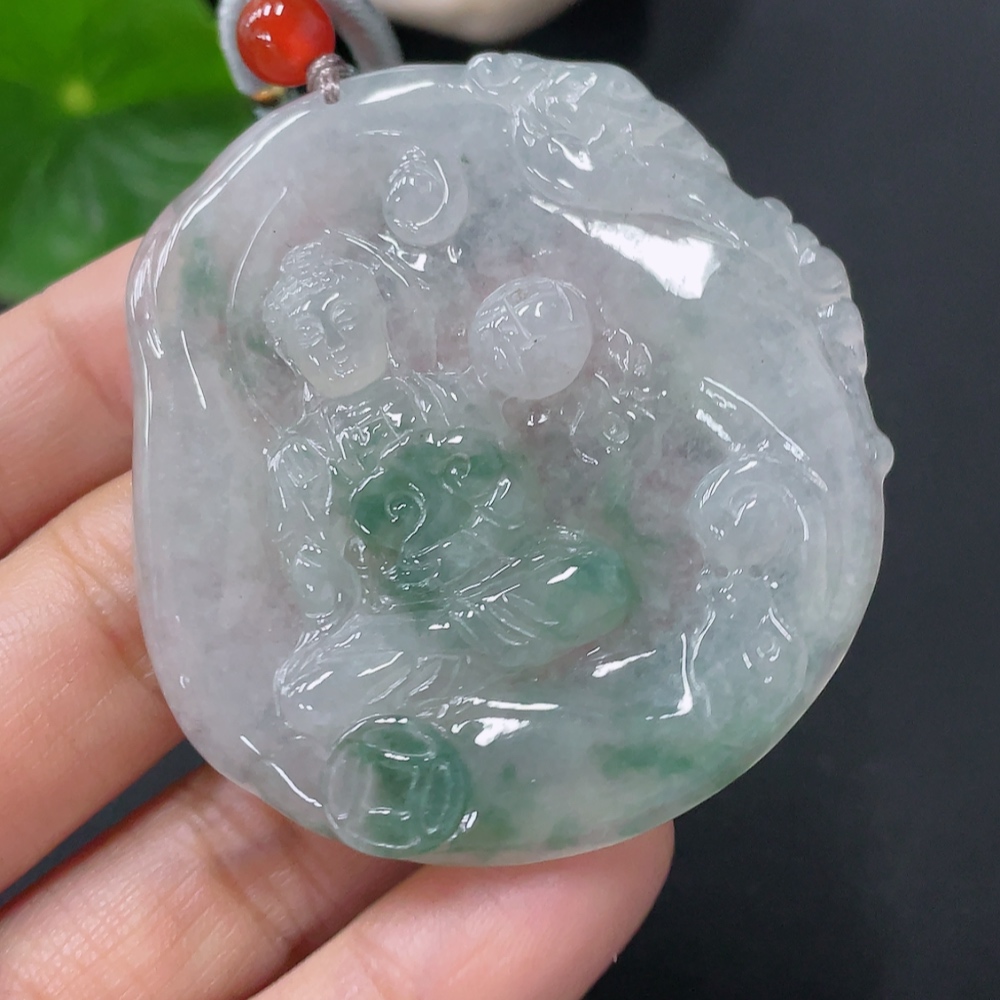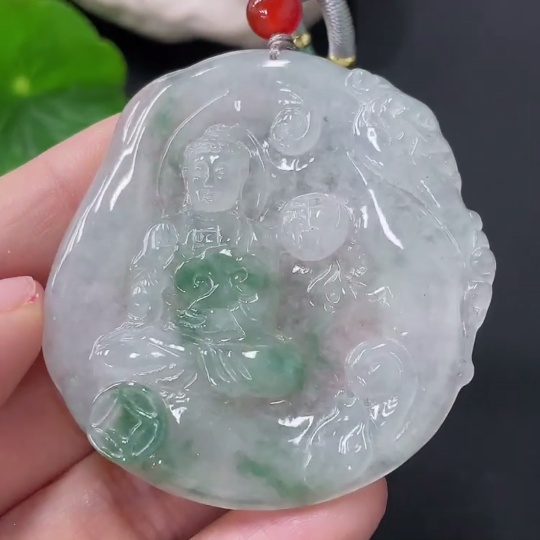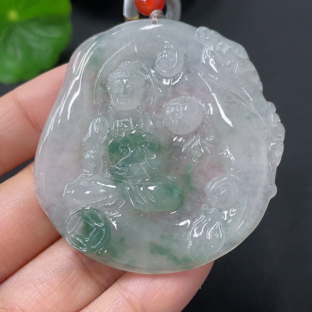 Jadeite Pendant Buddha Amulet Total Weight Including Cord 23.48g