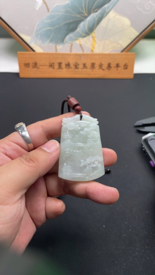 Jadeite Landscape Pendant Total Weight Approx. 35.29g