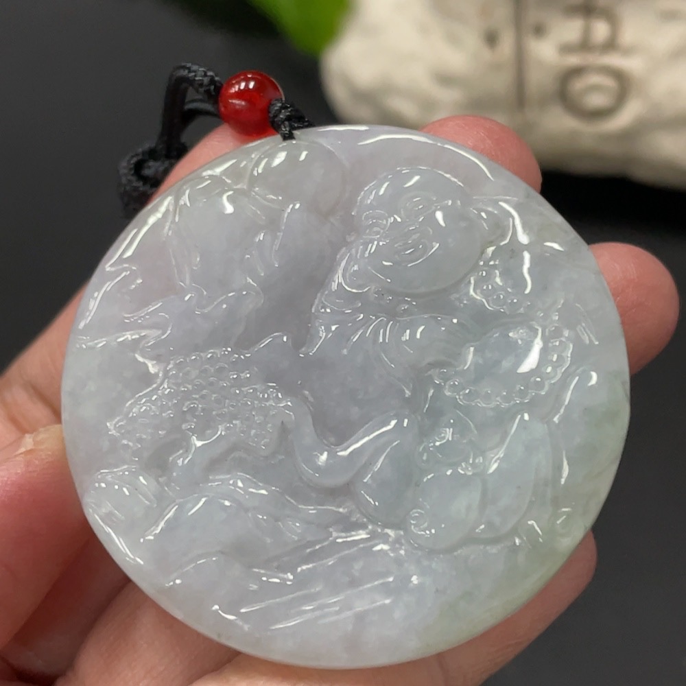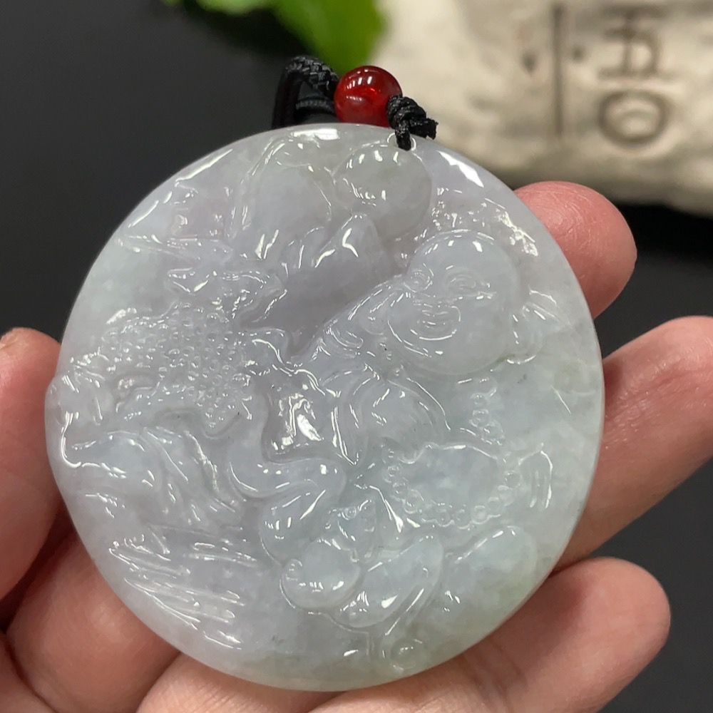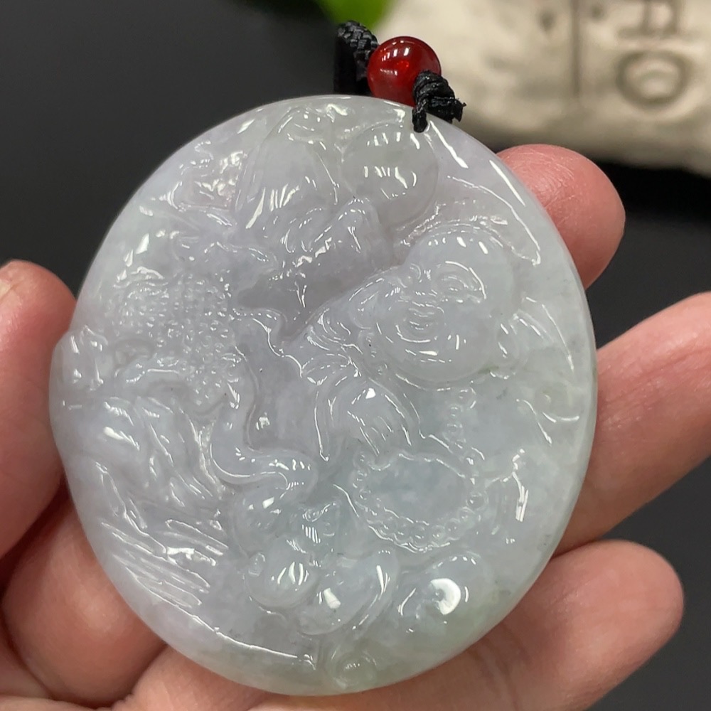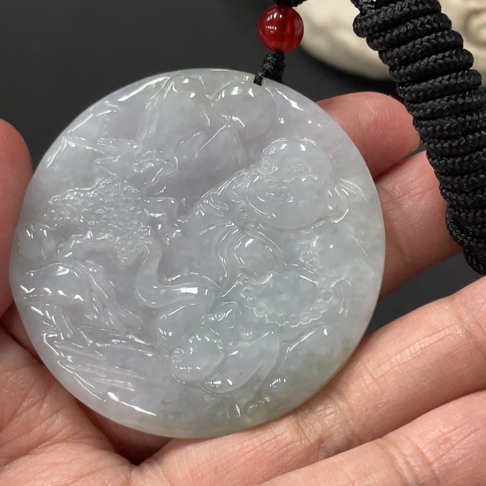 Jadeite Pendant Buddha, total weight approx. 28.85g including cord, with non-A grade bead