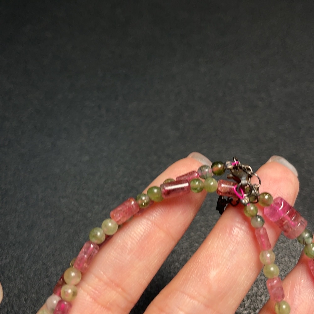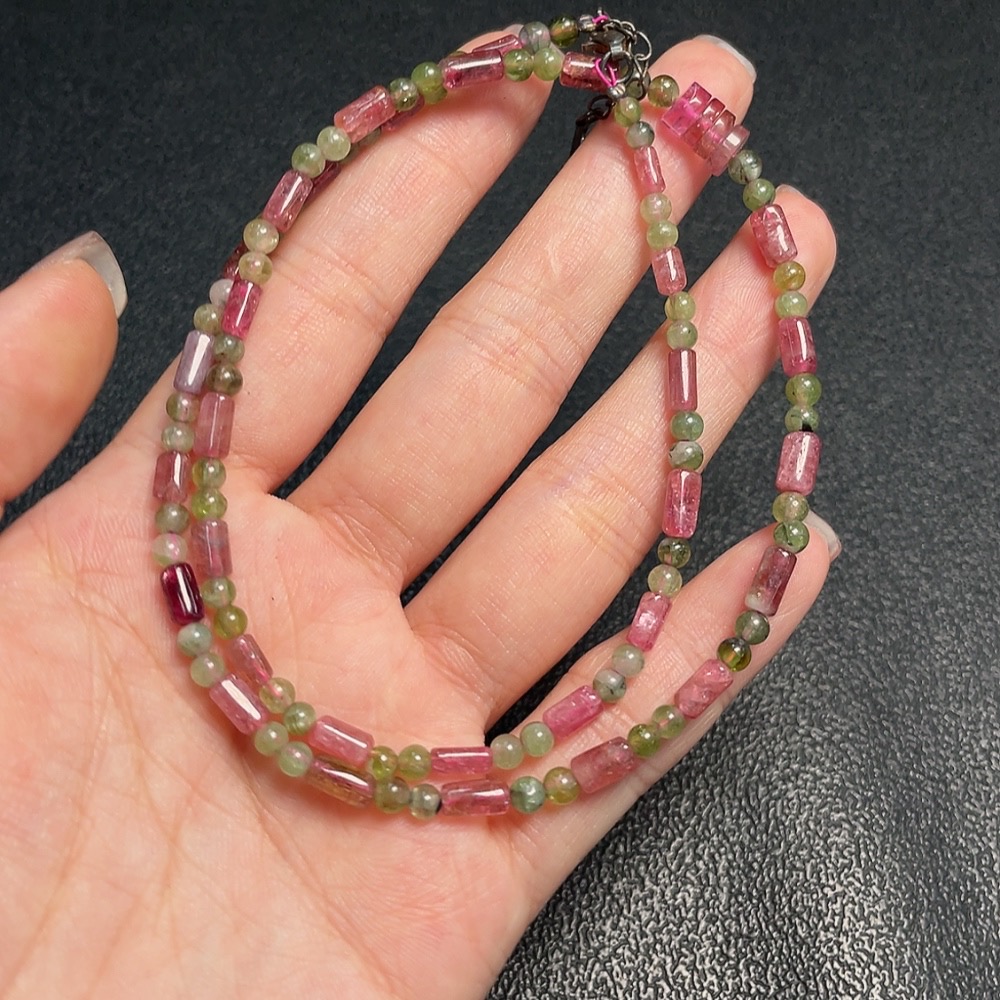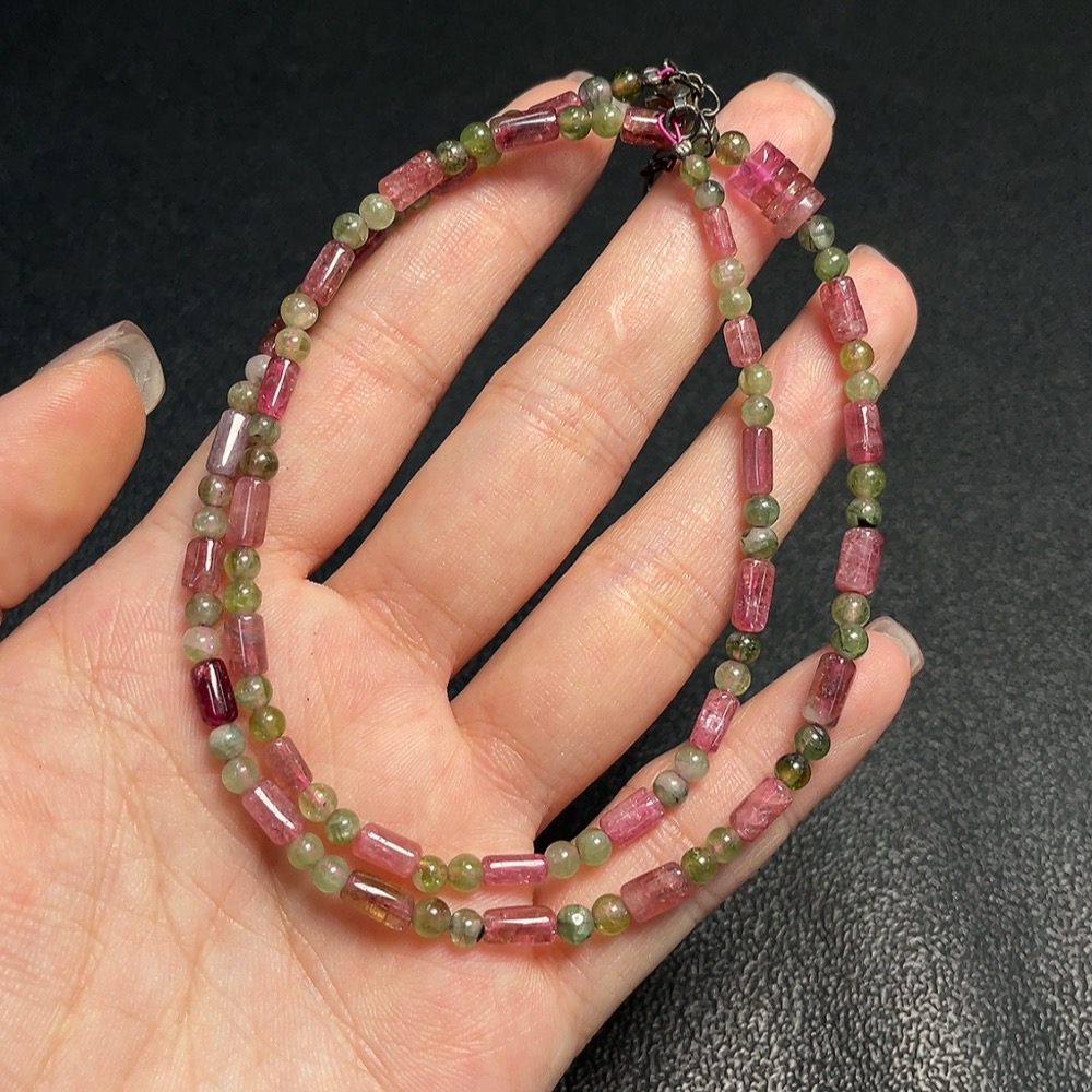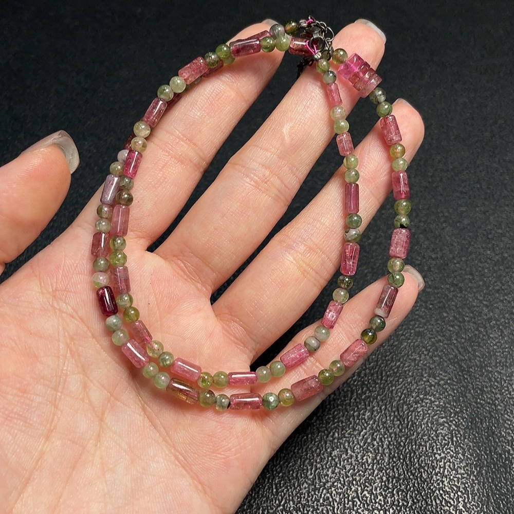 Tourmaline bead necklace with other mineral components, visible organic matter, non-gold, total weight approx. 10.9g, size approx. 3.5mm