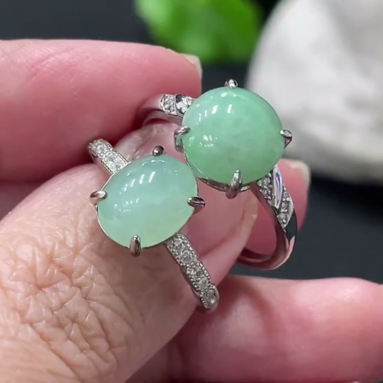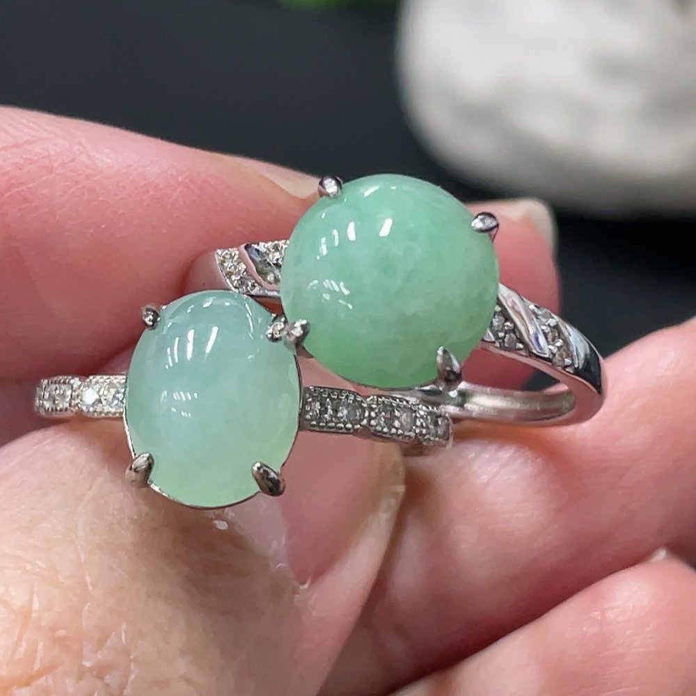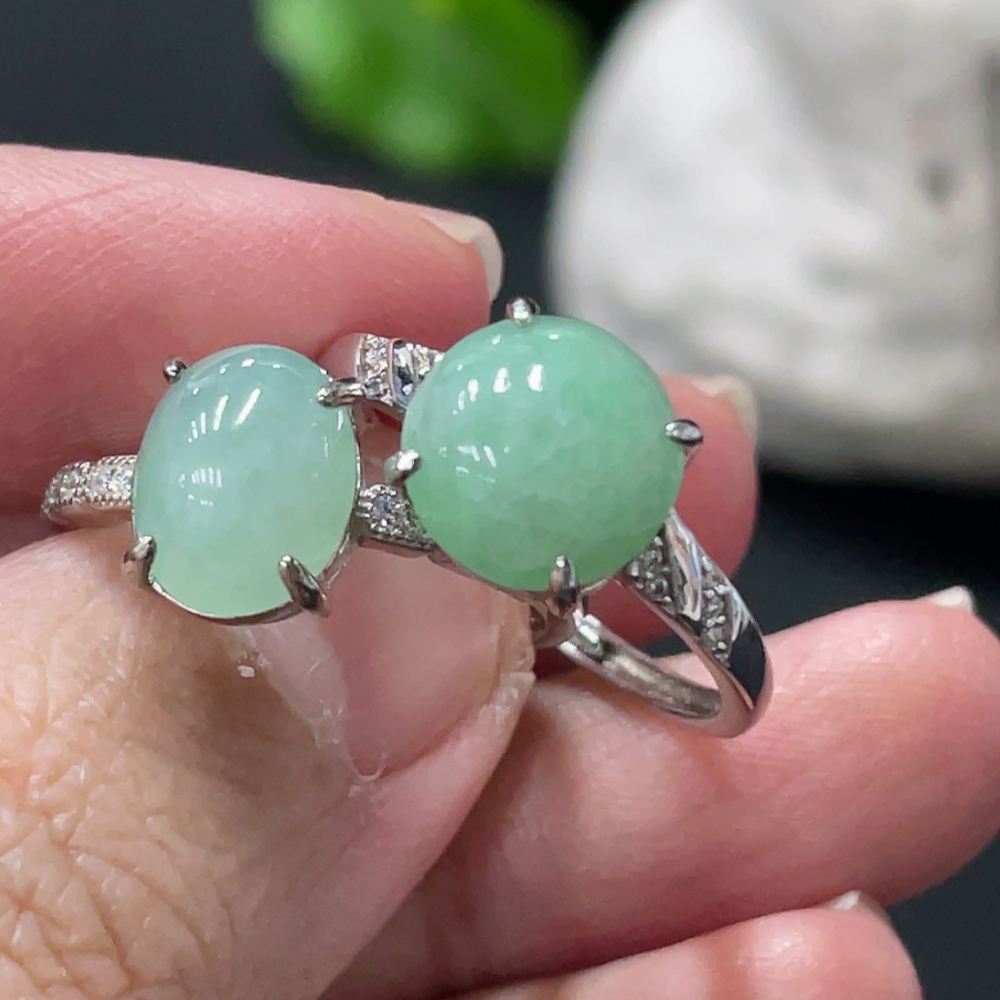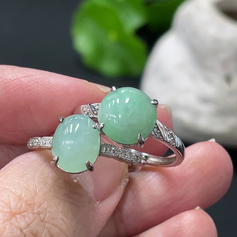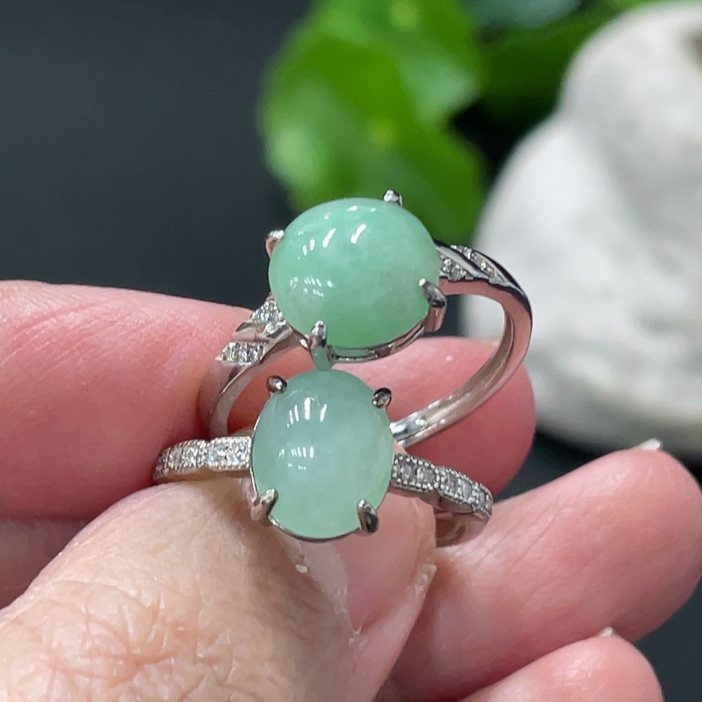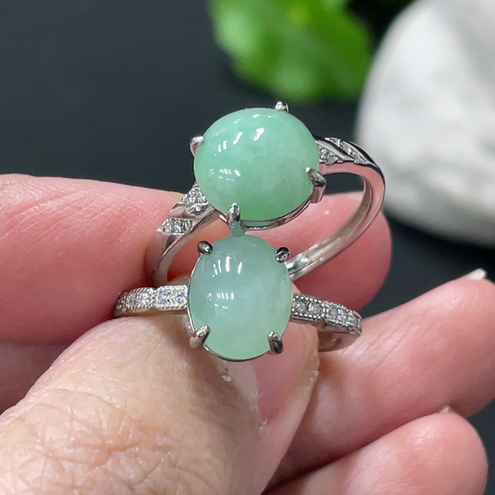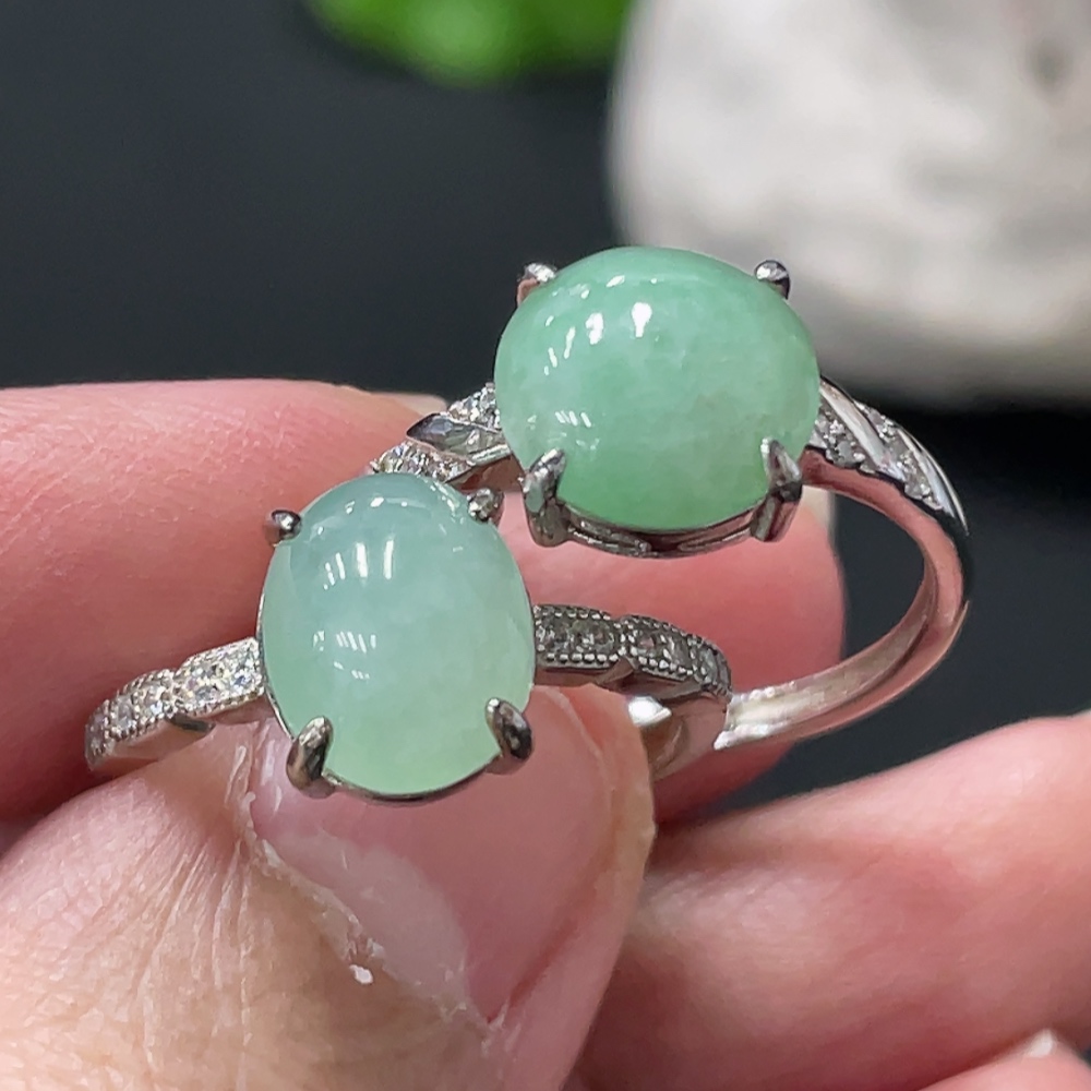 Jadeite Cabochon Inlaid Ring Non-gold Inlaid Adjustable Size Total Weight Approx.4.23g