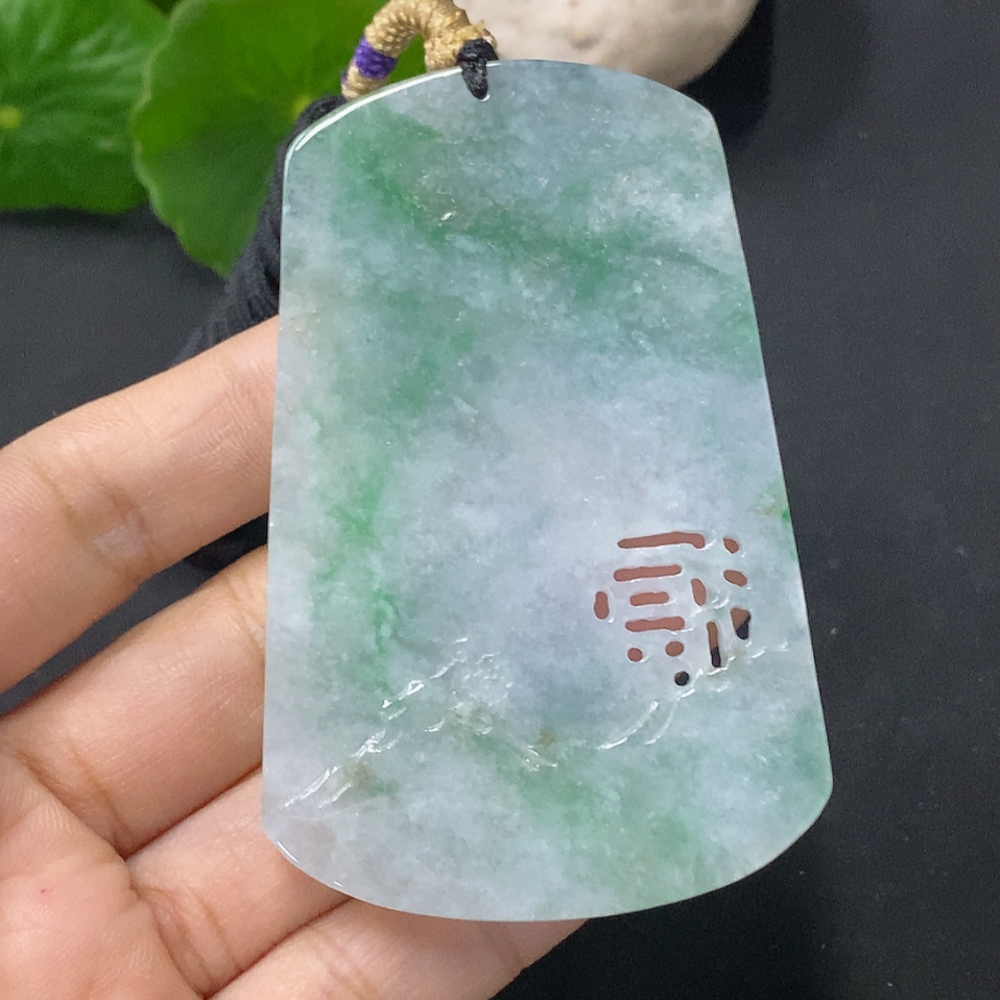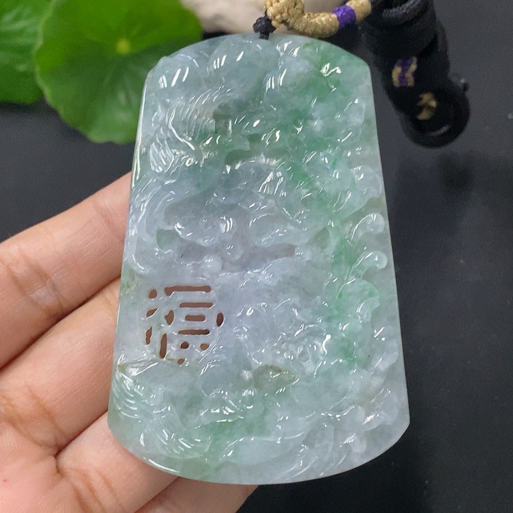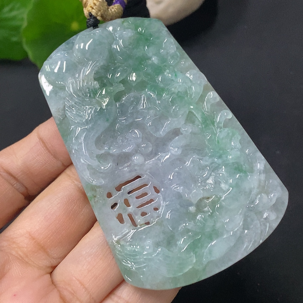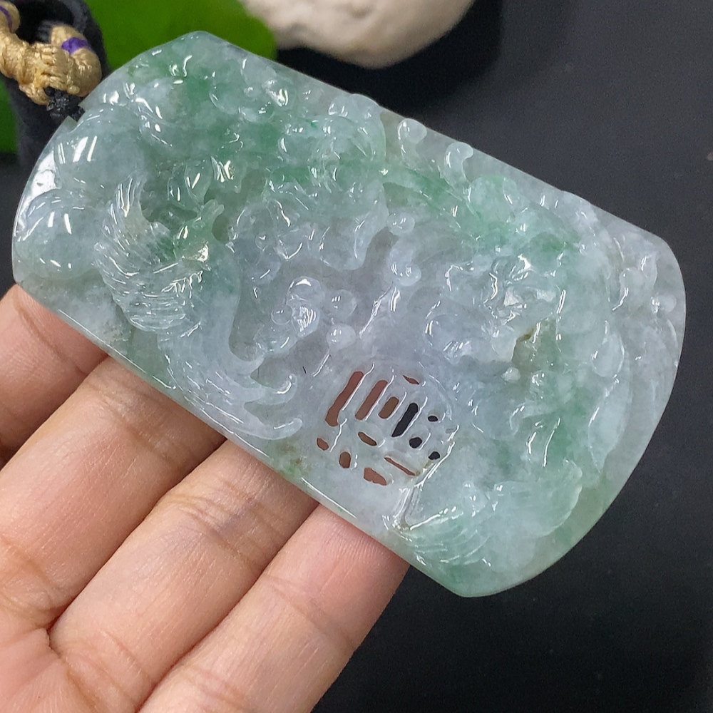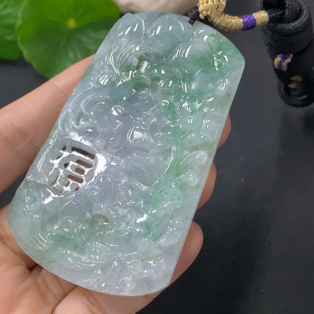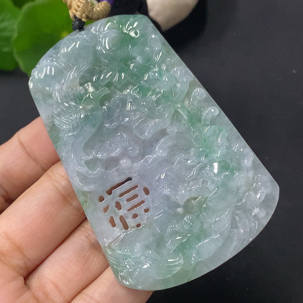 Jadeite Pendant Birds Singing and Flowers Giving Forth Fragrance with Cord Total Weight Approx. 45.48g