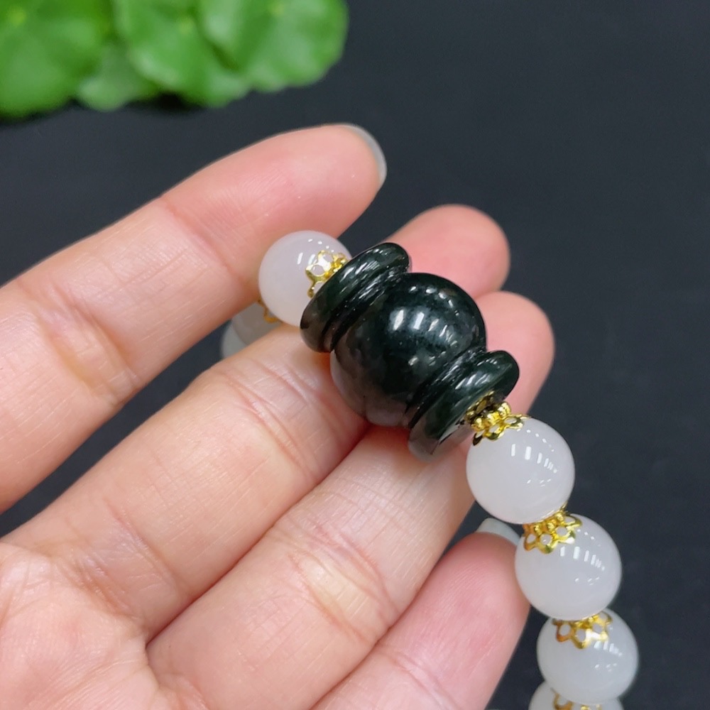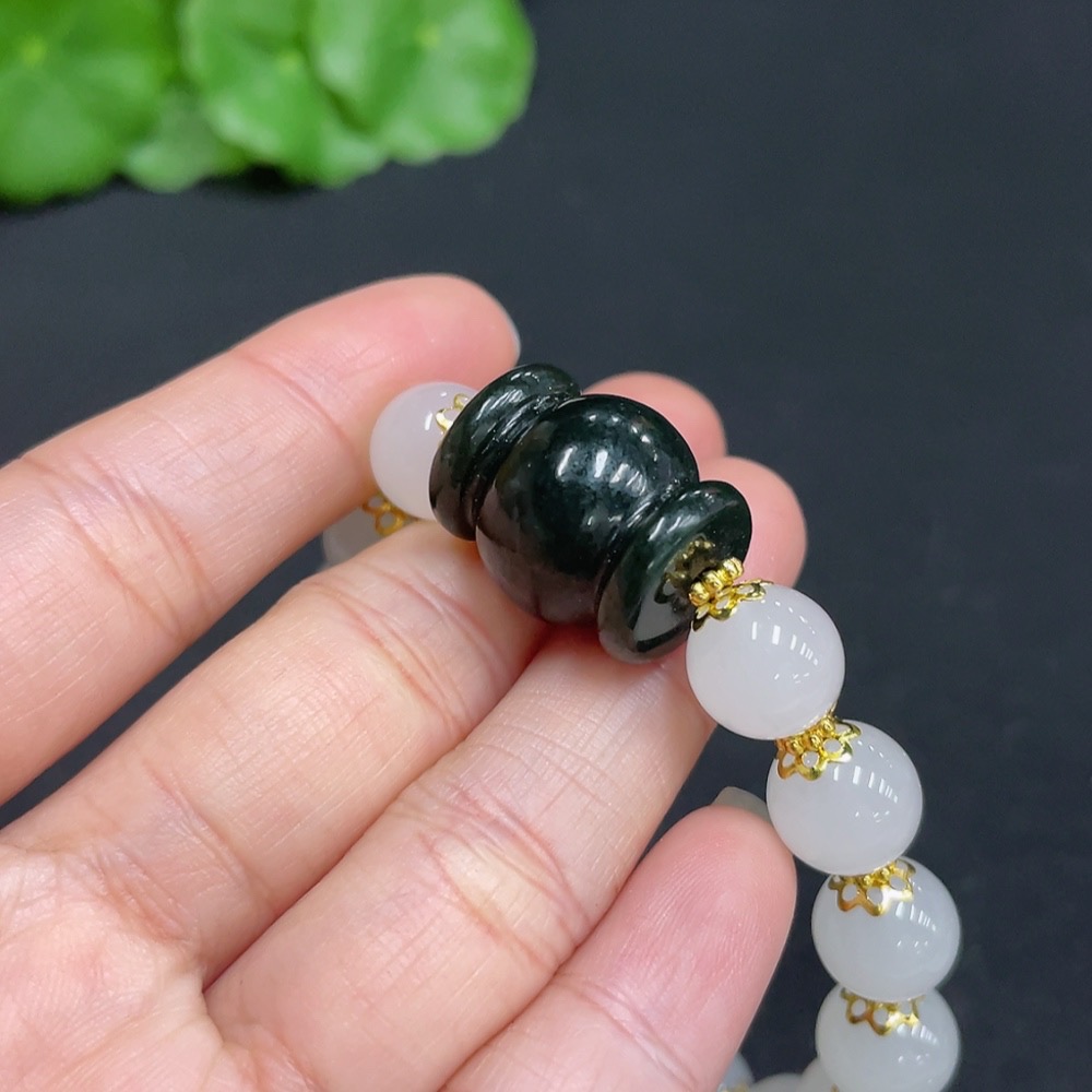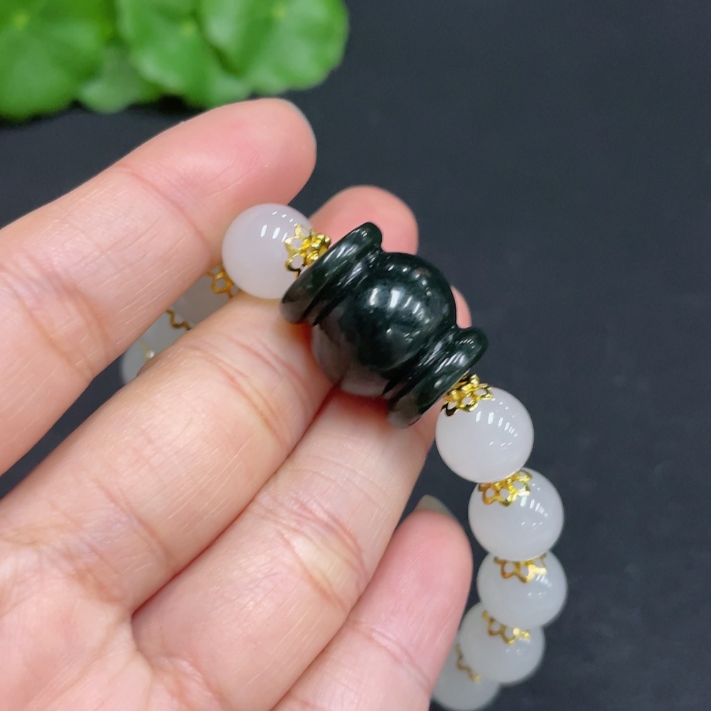 Hetian Jade Single Bead Bracelet, Non-Hetian Jade Beads, Total Weight Approx. 26.3g