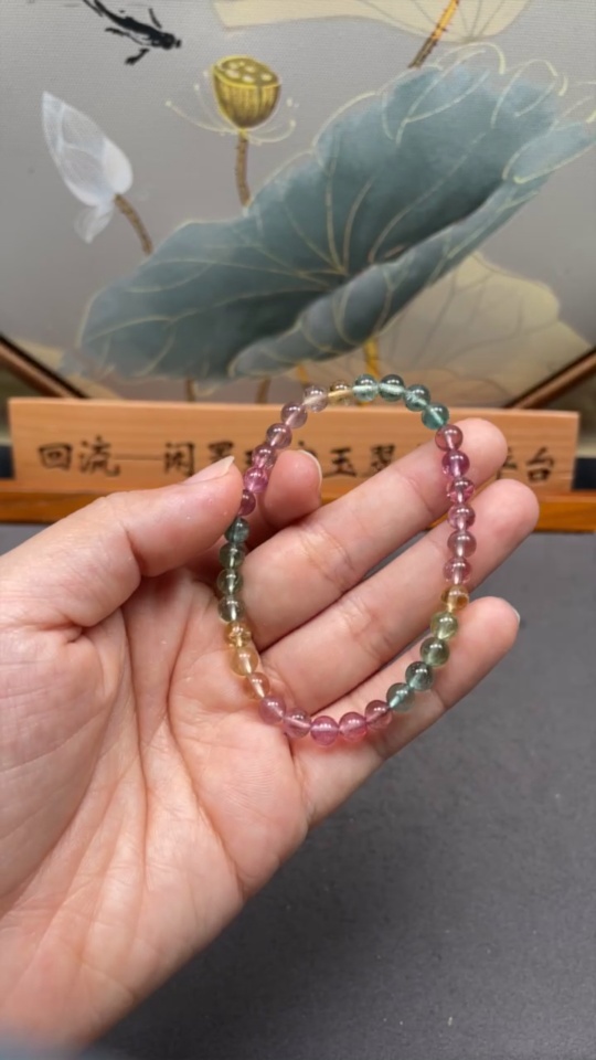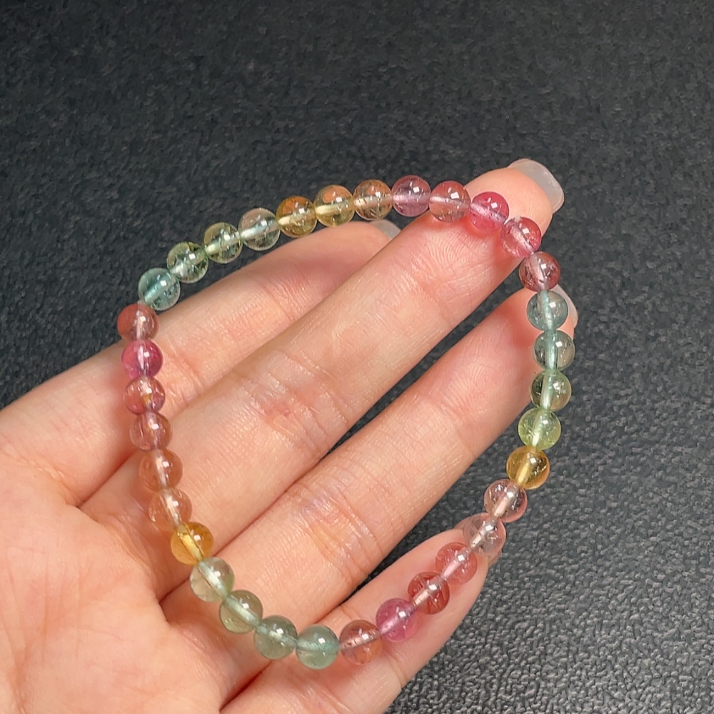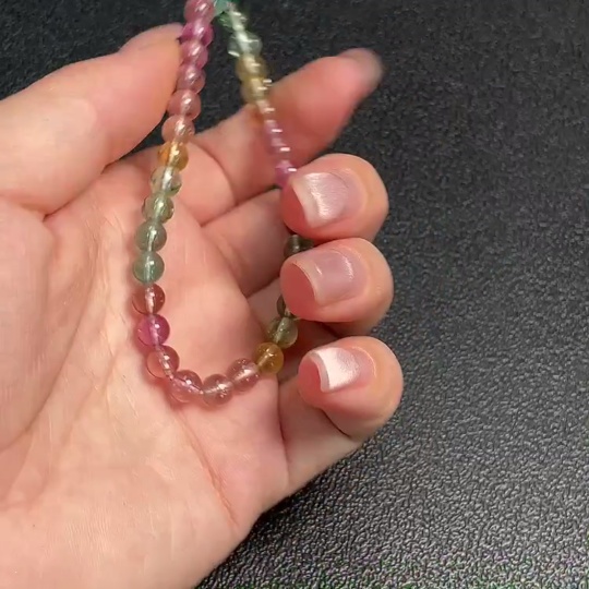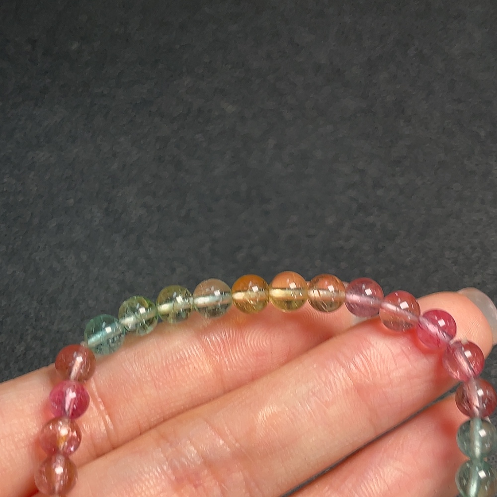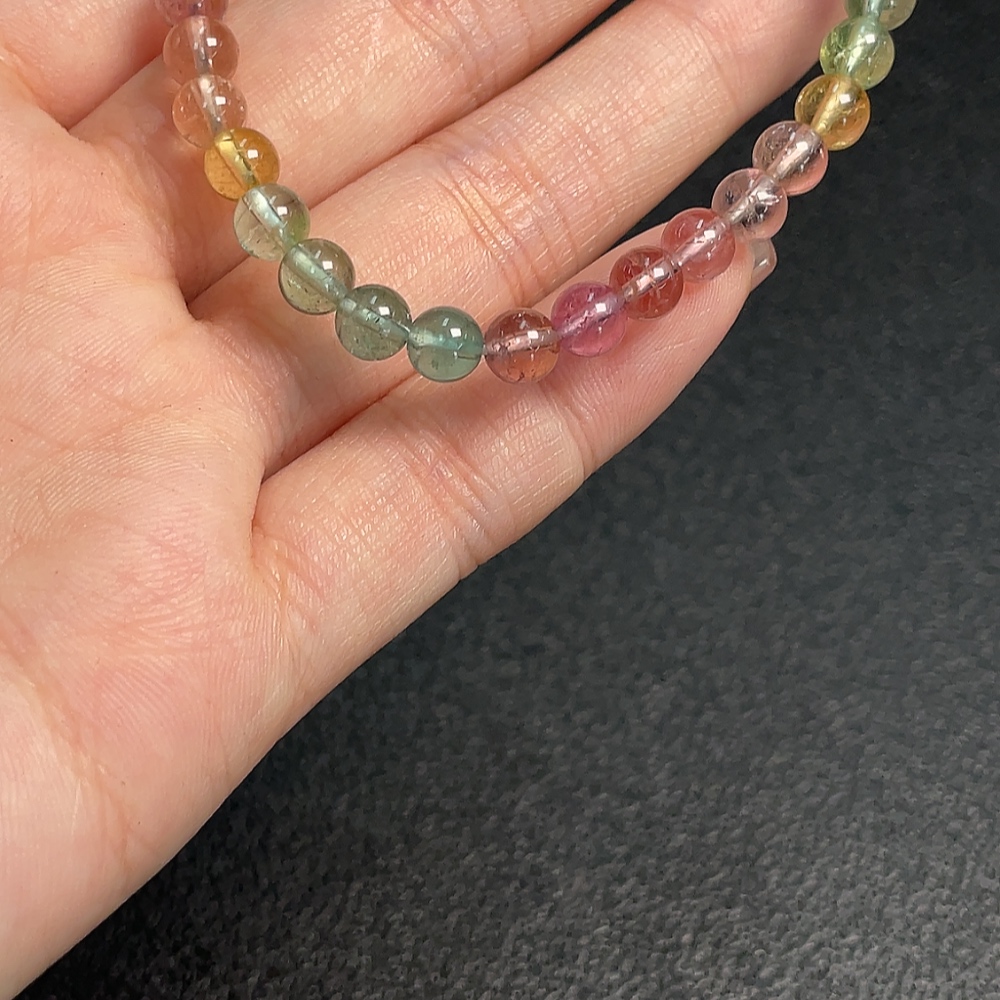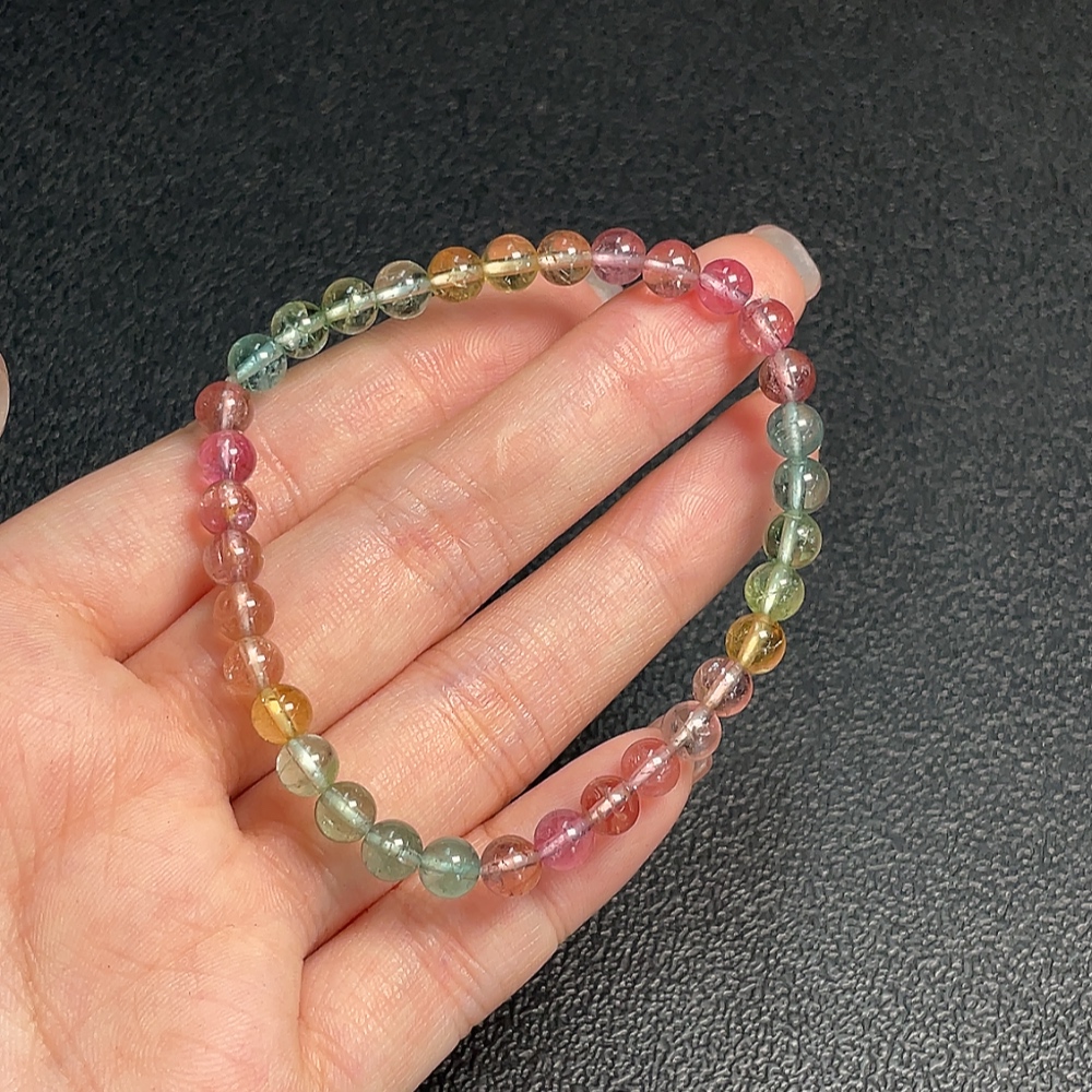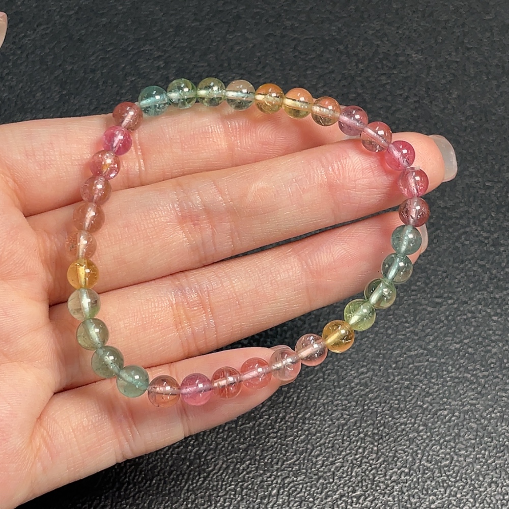 Tourmaline Bracelet with Visible Organic Inclusions, Total Weight Approximately 8.97g, Bead Size About 5.5mm