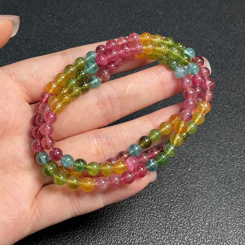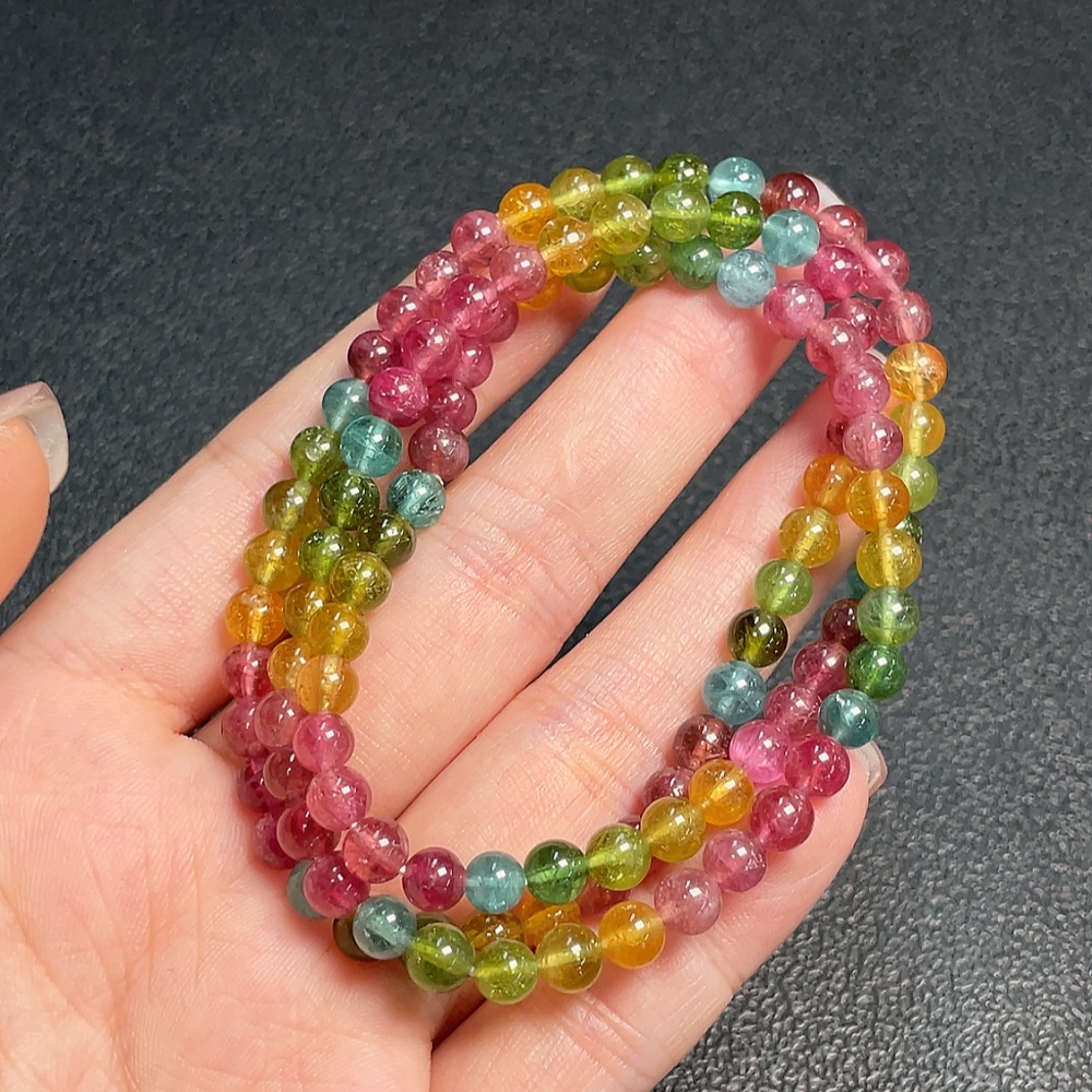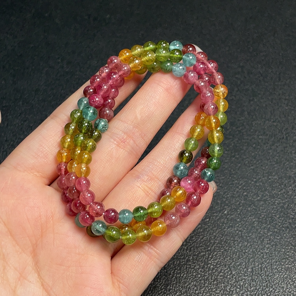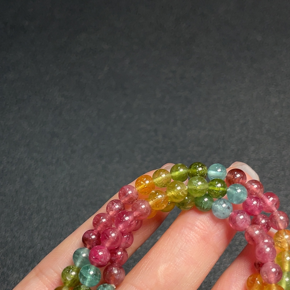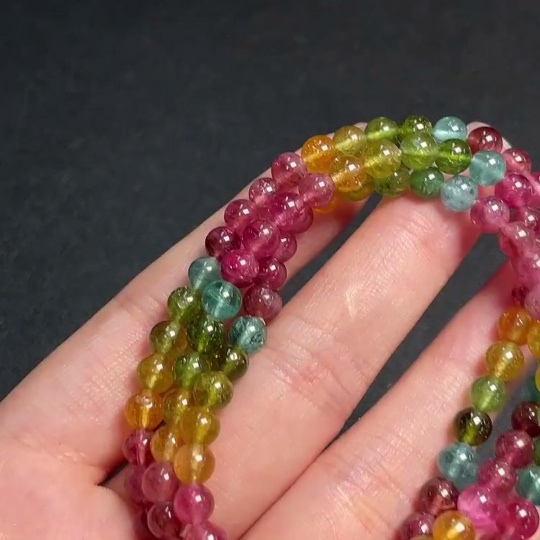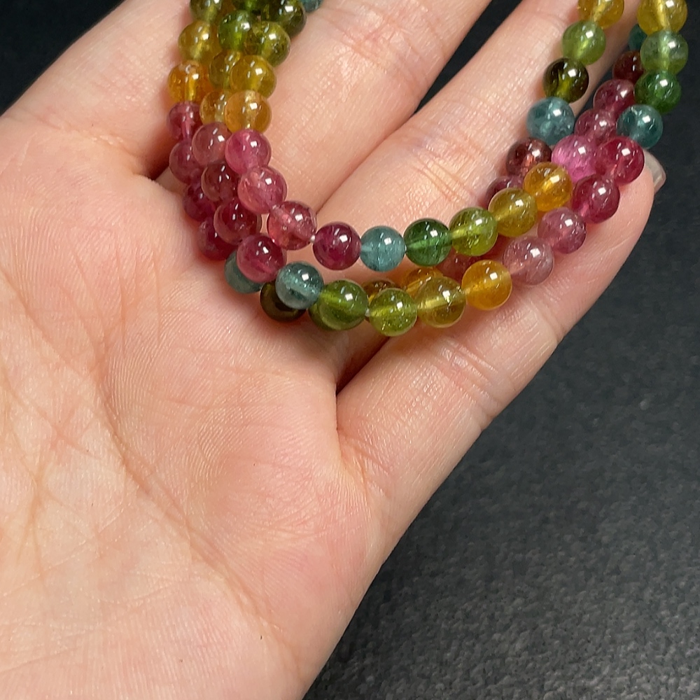 Tourmaline bead strand with visible organic matter, total weight approx. 23.66g, size approx. 5.3mm