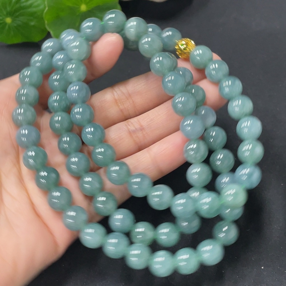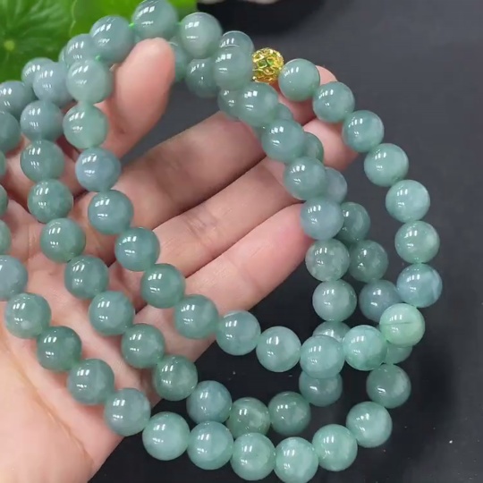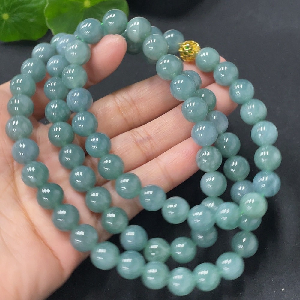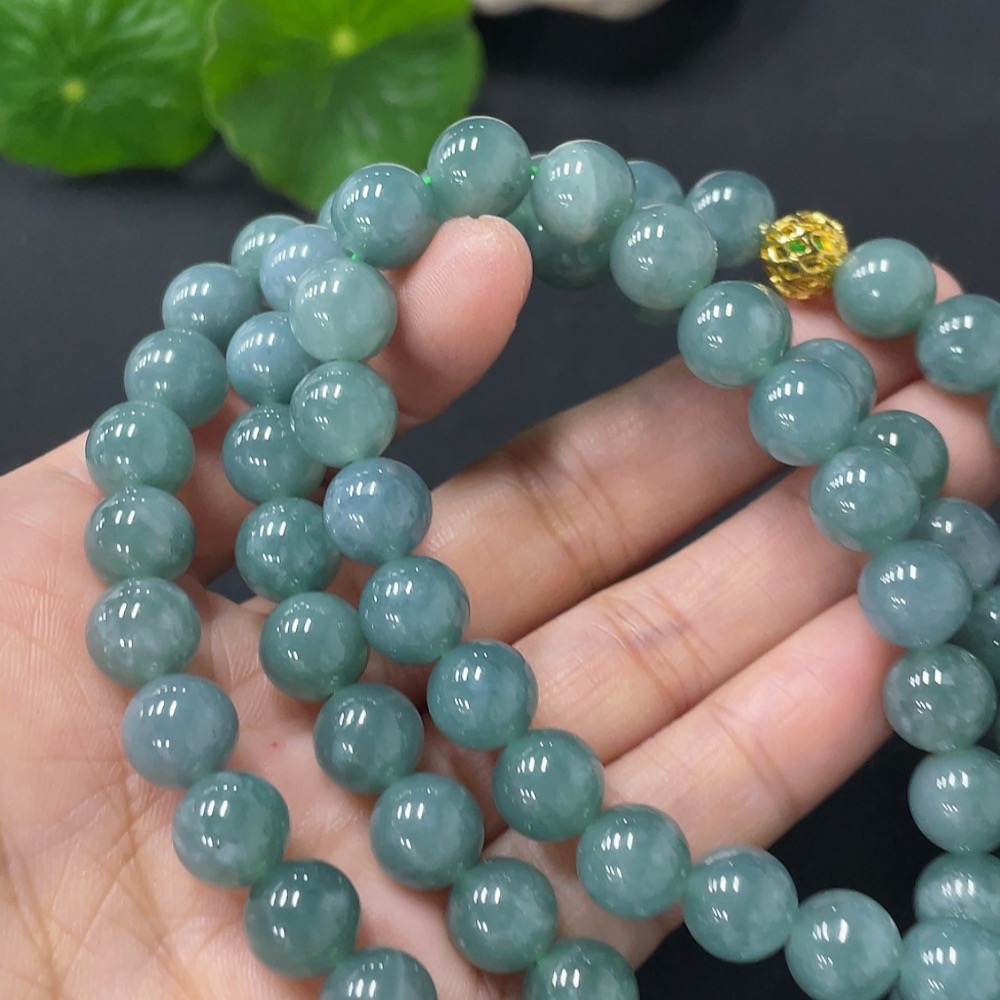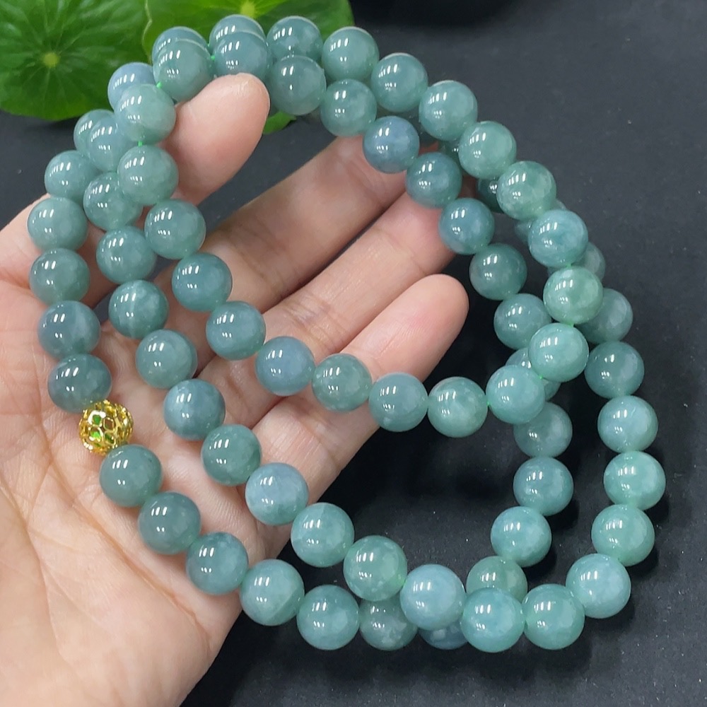 Jadeite Bead Necklace Approx. 8.7mm Non-Gold Total Weight Approx. 87.25g