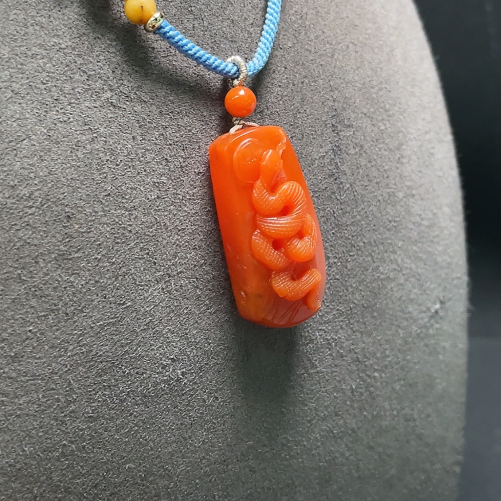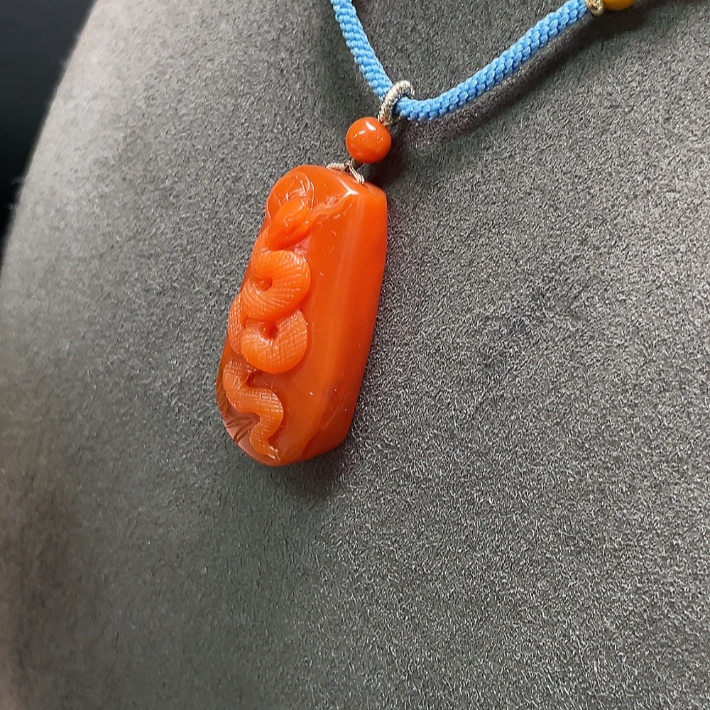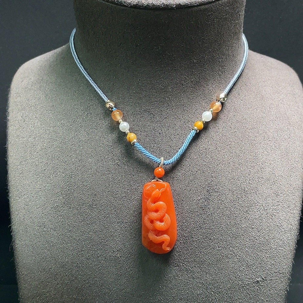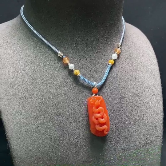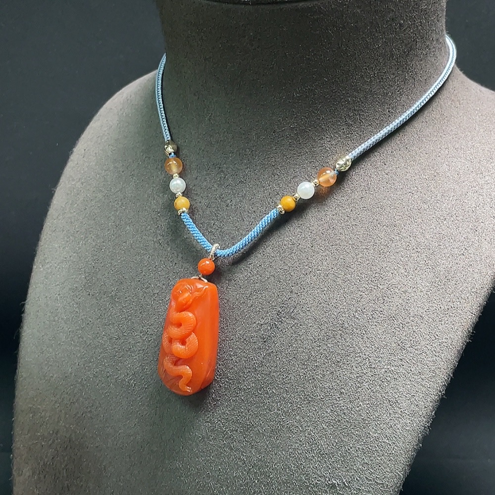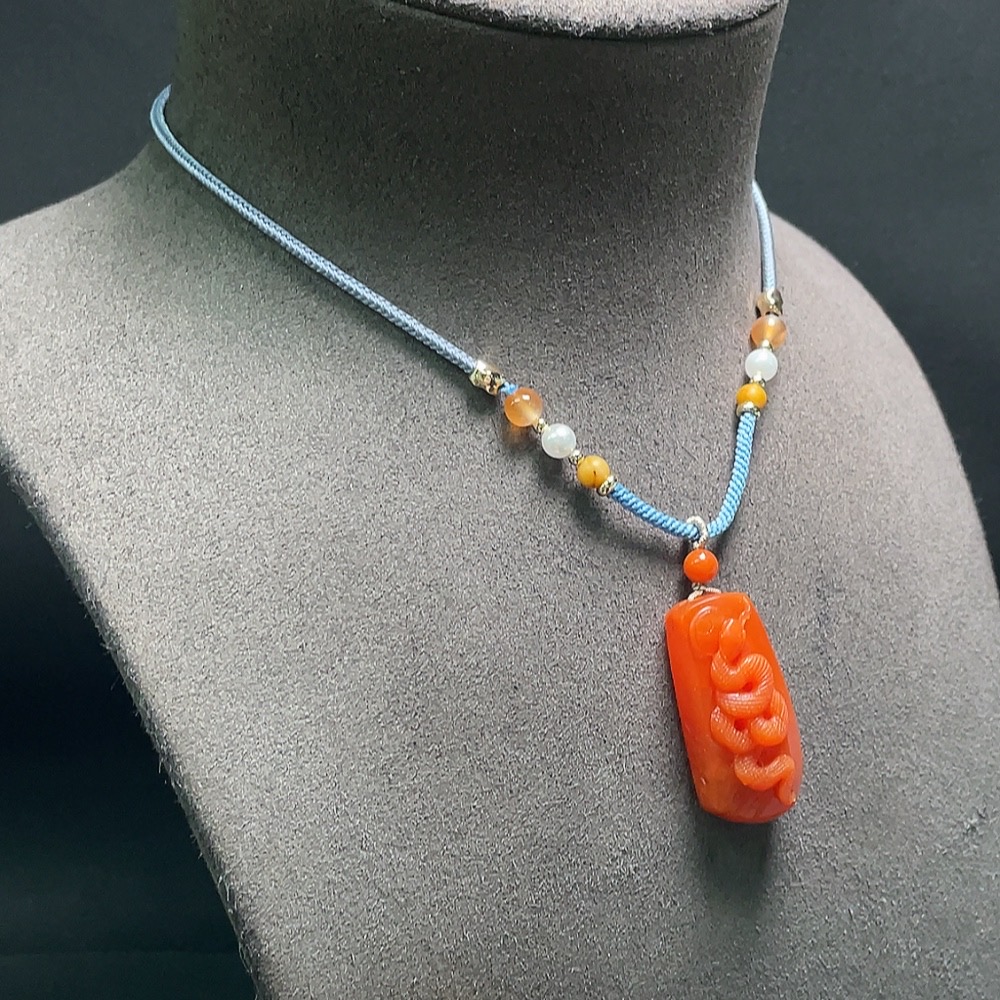 Red Agate Pendant with Visible Organic Matter, Non-Natural Accent Stones, Total Weight Approx. 15.9g