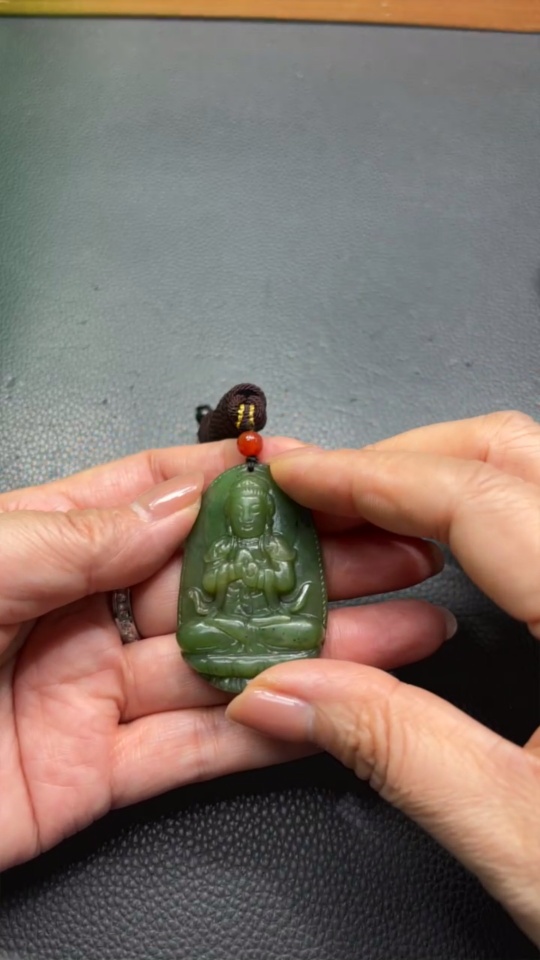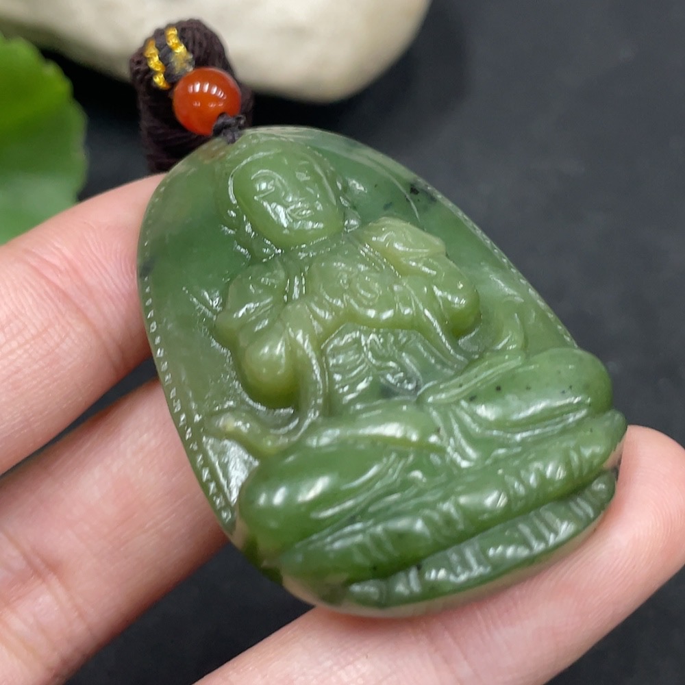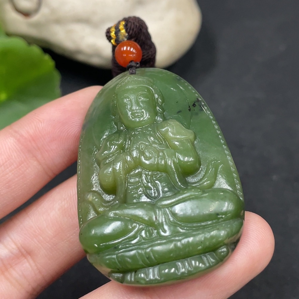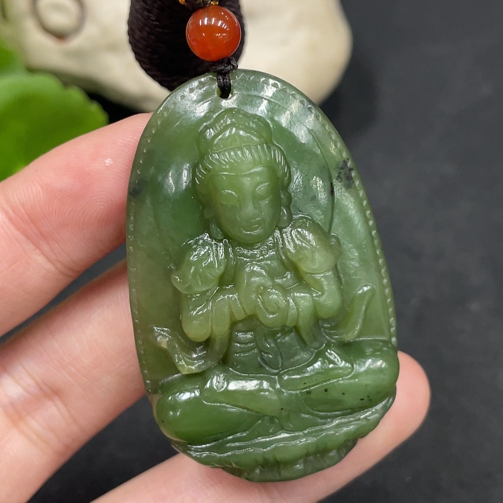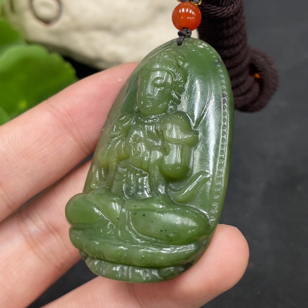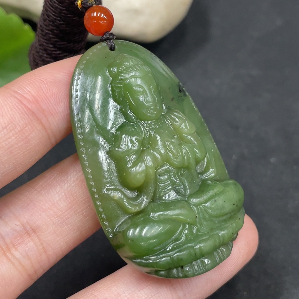 Hetian Jade Jasper Pendant Guanyin with Non-Hetian Jade Beads Total Weight Approx. 29.2g (Incl. Cord)