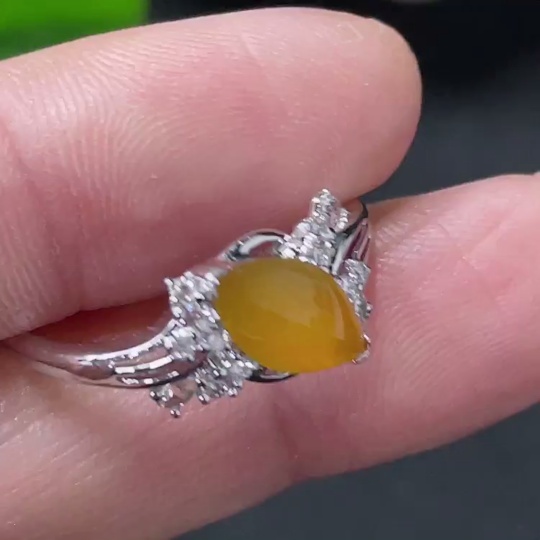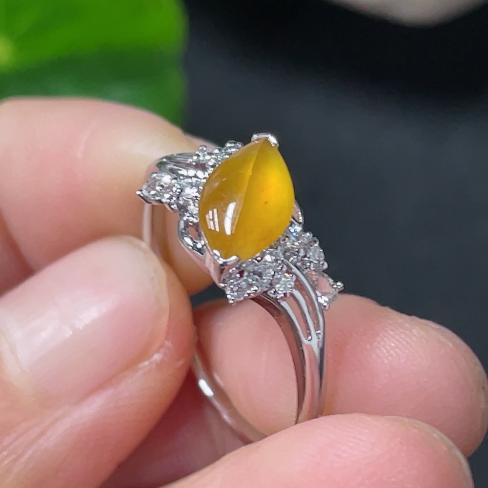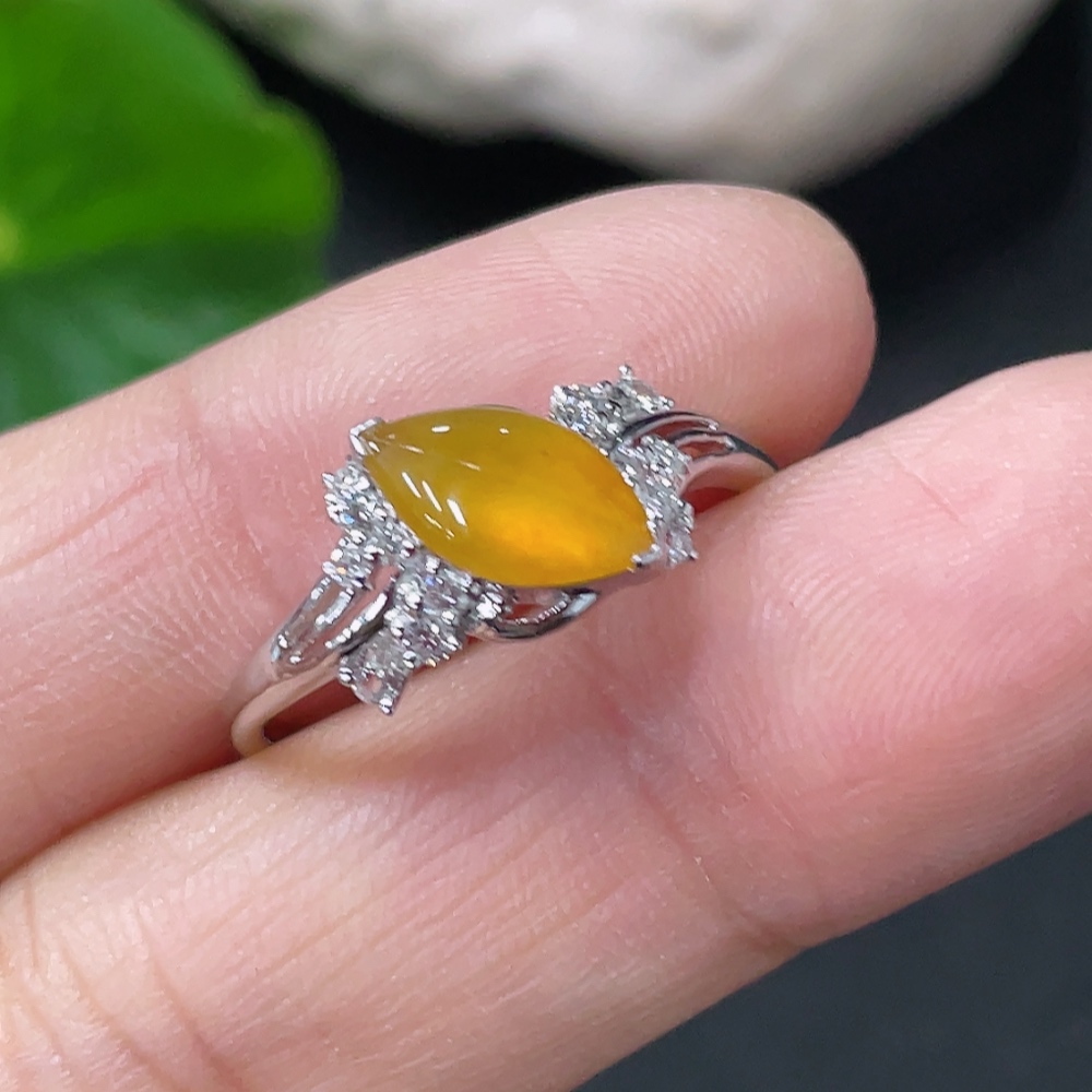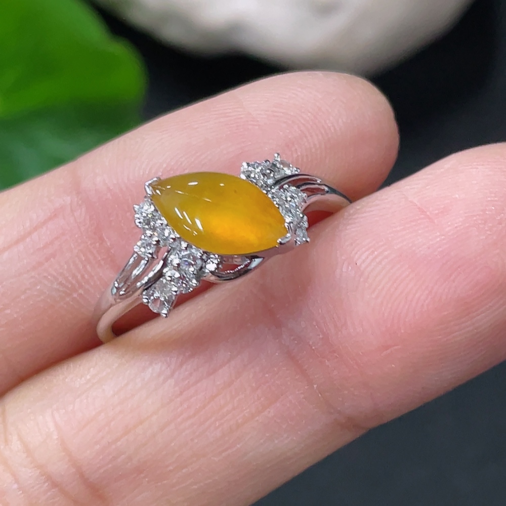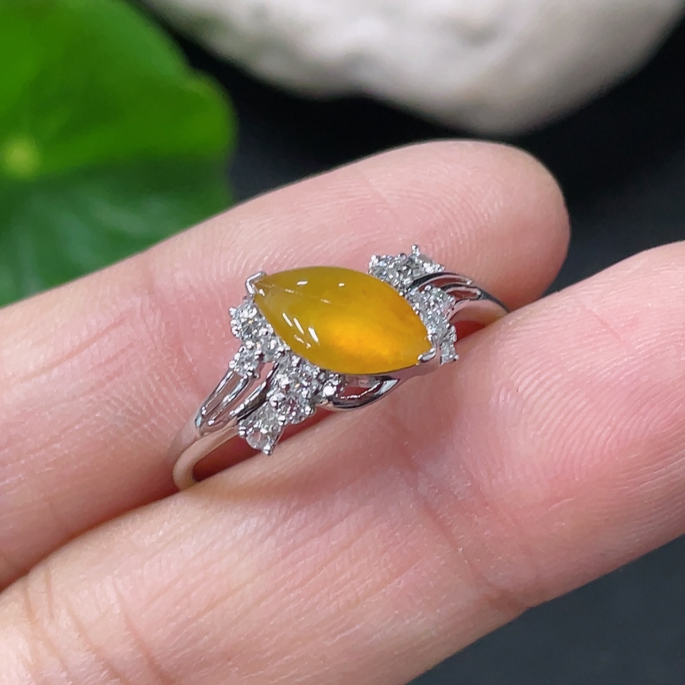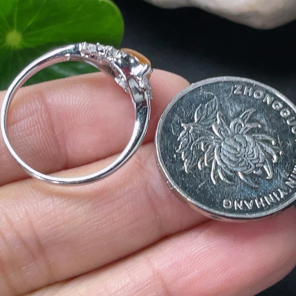 Jadeite inlaid ring 9K gold size 15 total weight about 1.7g (only round diamonds are diamonds)