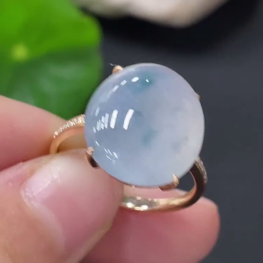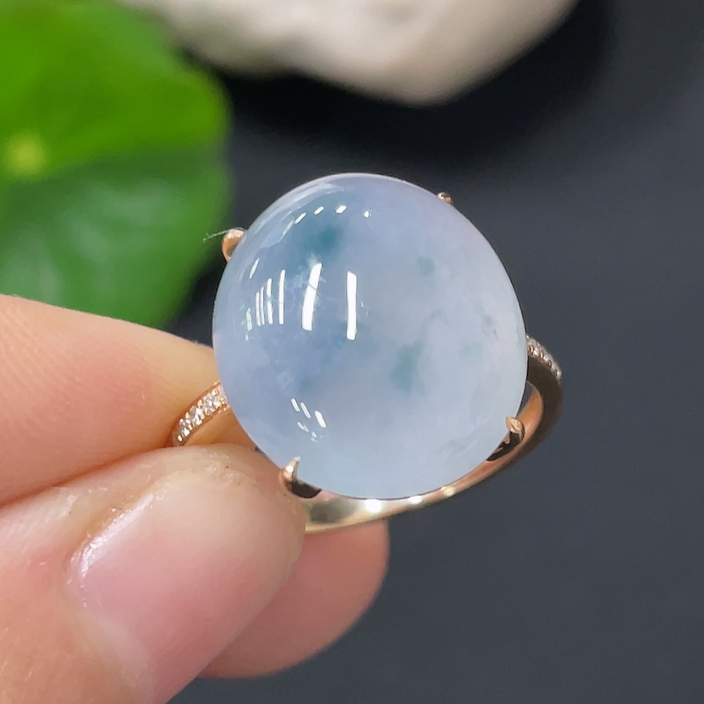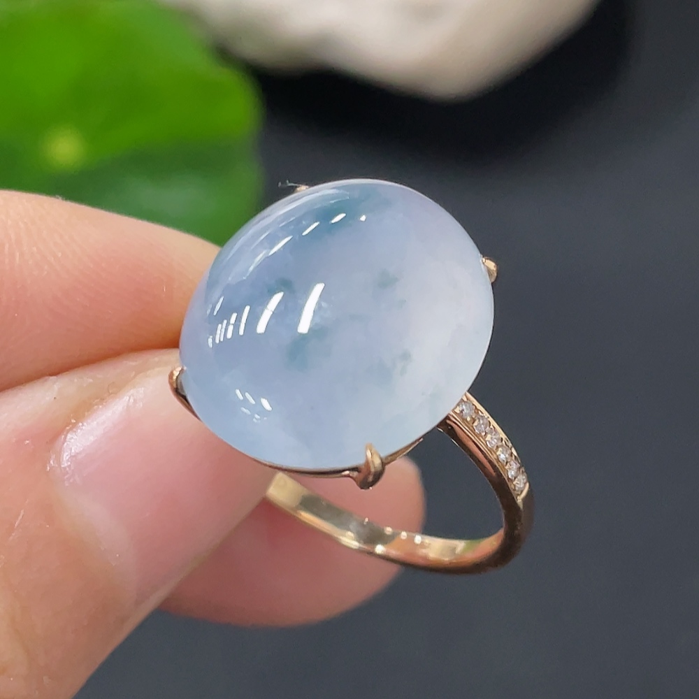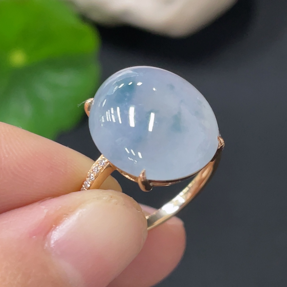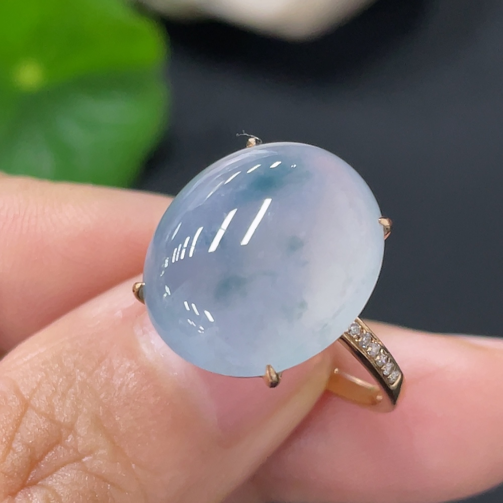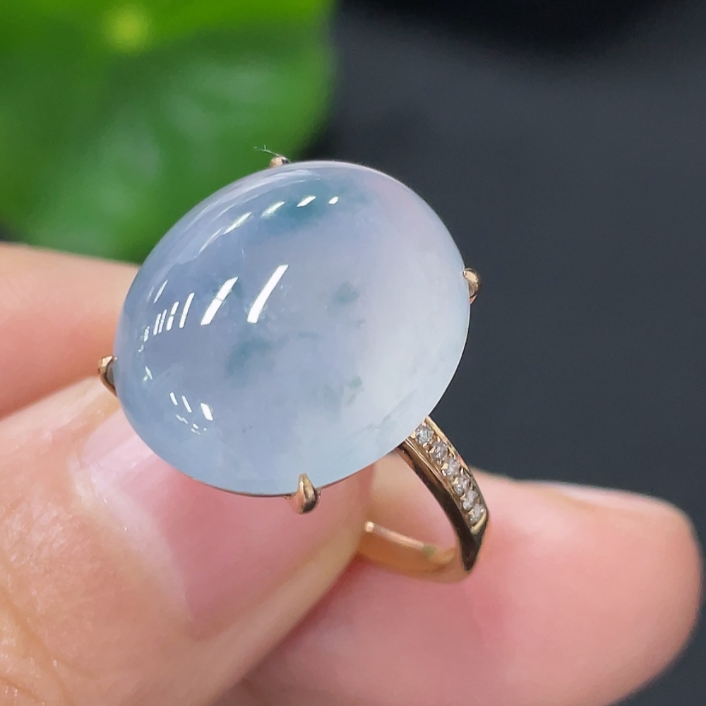 Jadeite inlaid ring 18k with diamond size 14 total weight approximately 4.47g