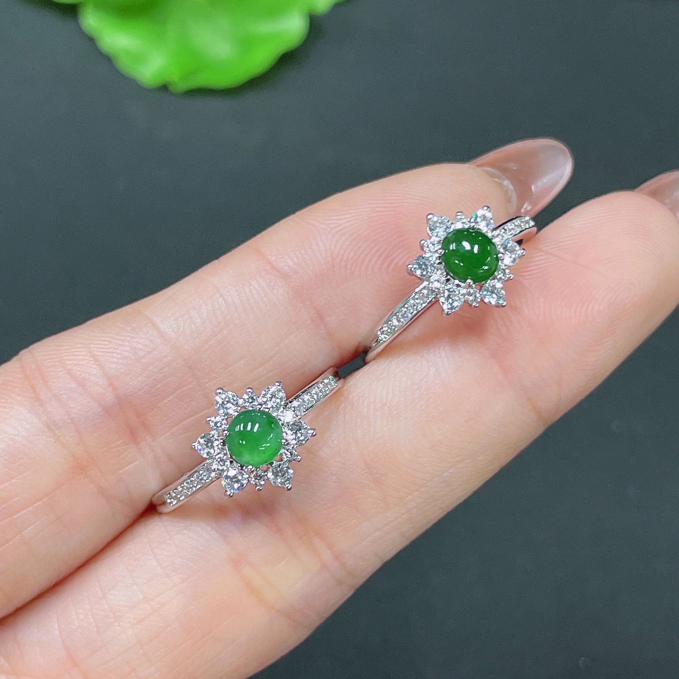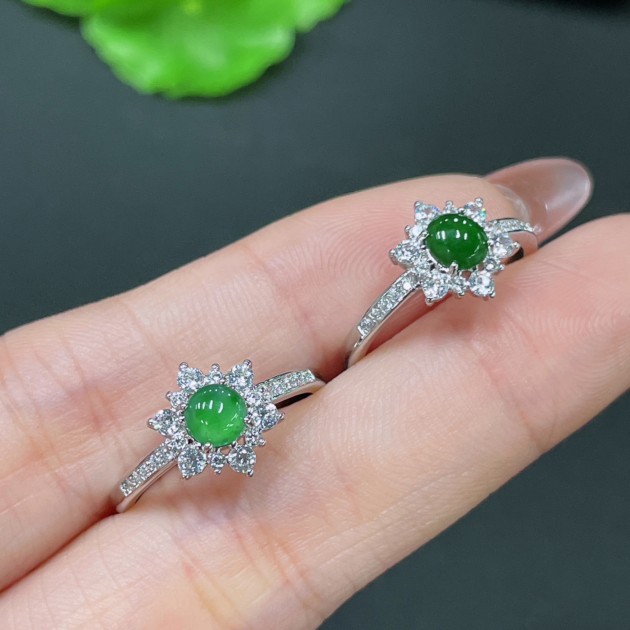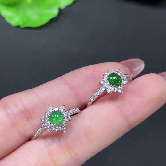 Jadeite Cabochon Inlaid Ring Non-Gold Adjustable