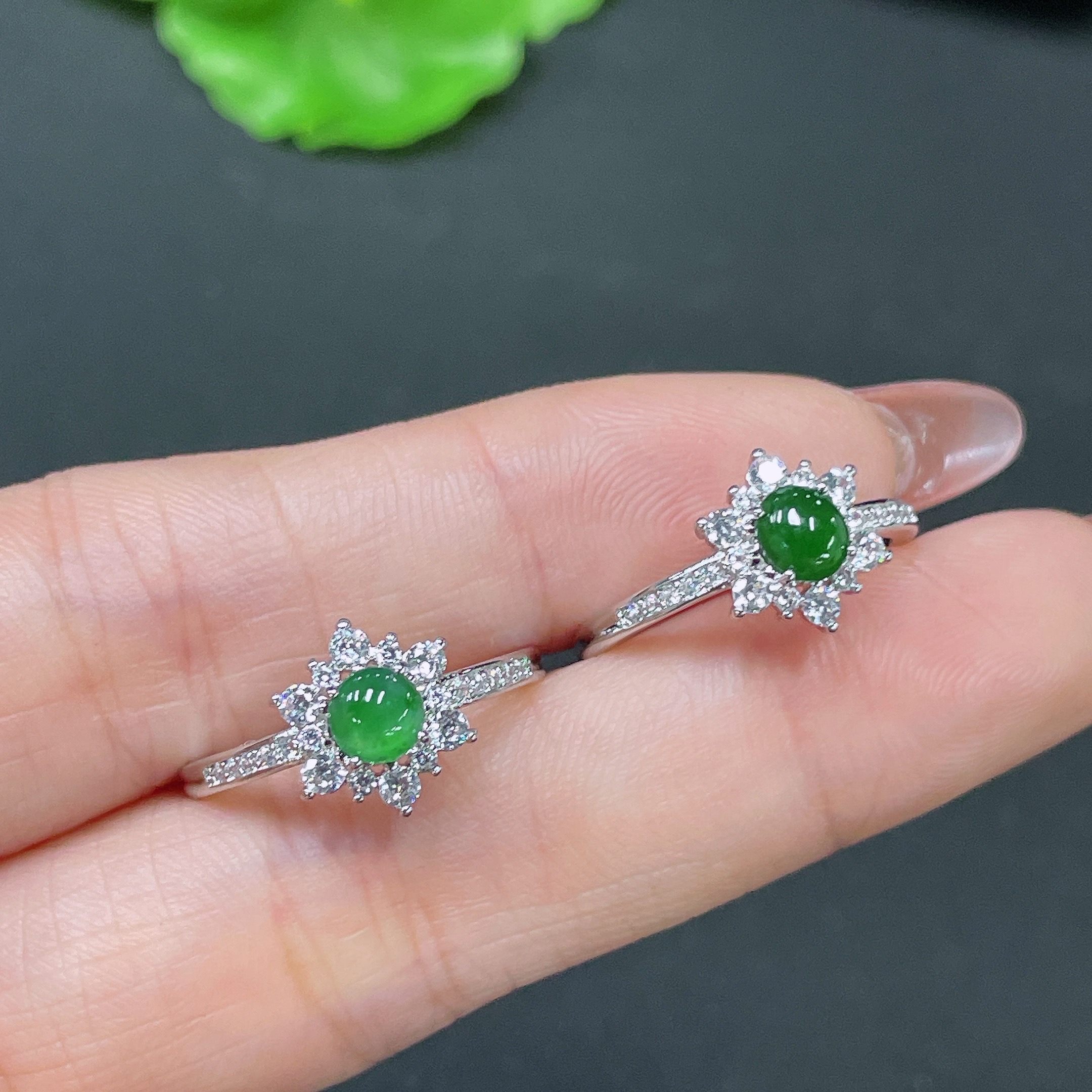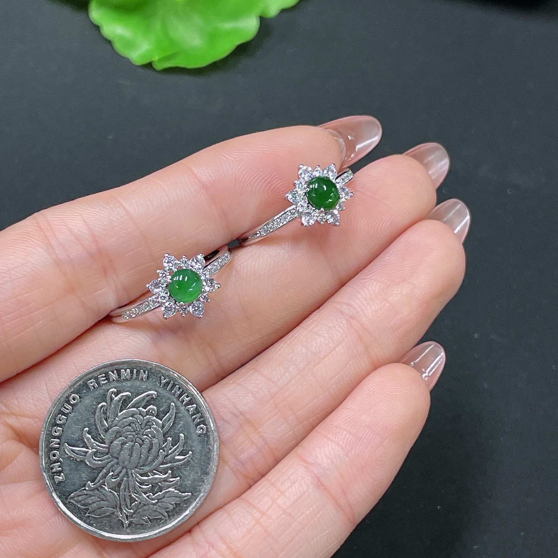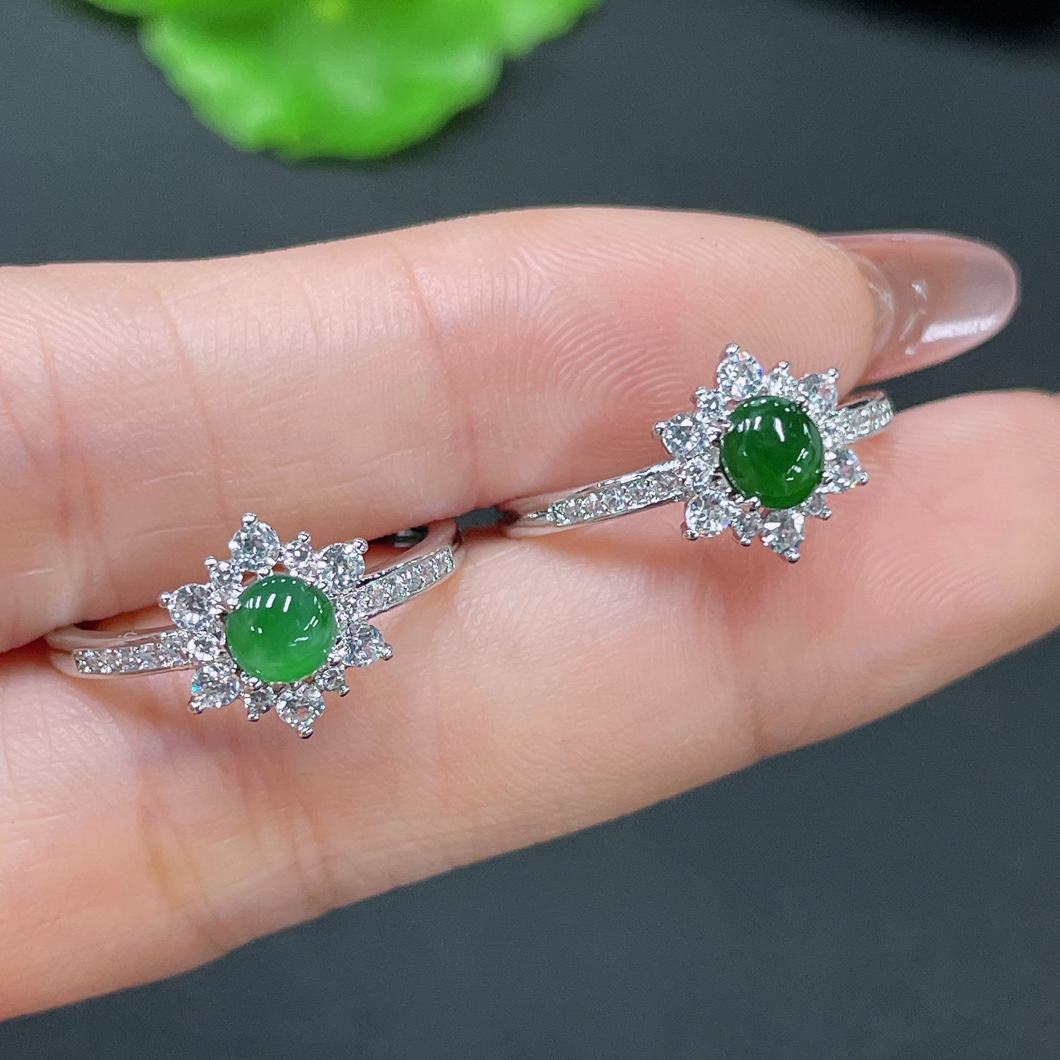 Jadeite Cabochon Inlaid Ring Non-Gold Adjustable