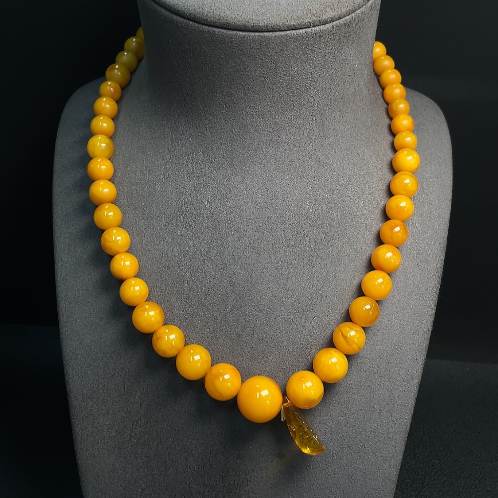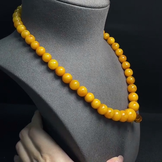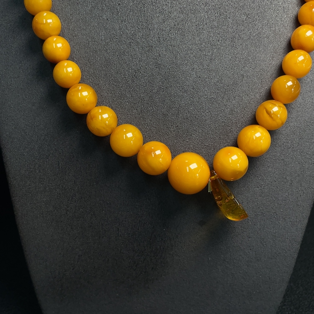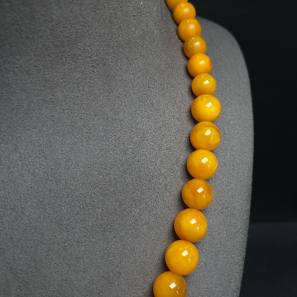 Amber Beeswax Bead Necklace with Colorless Coating, Partial Repairs Visible, Total Weight Approx. 36.68g, Size 8.8-17.1mm