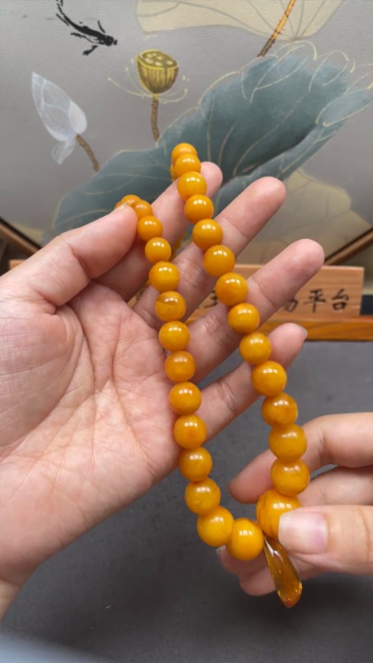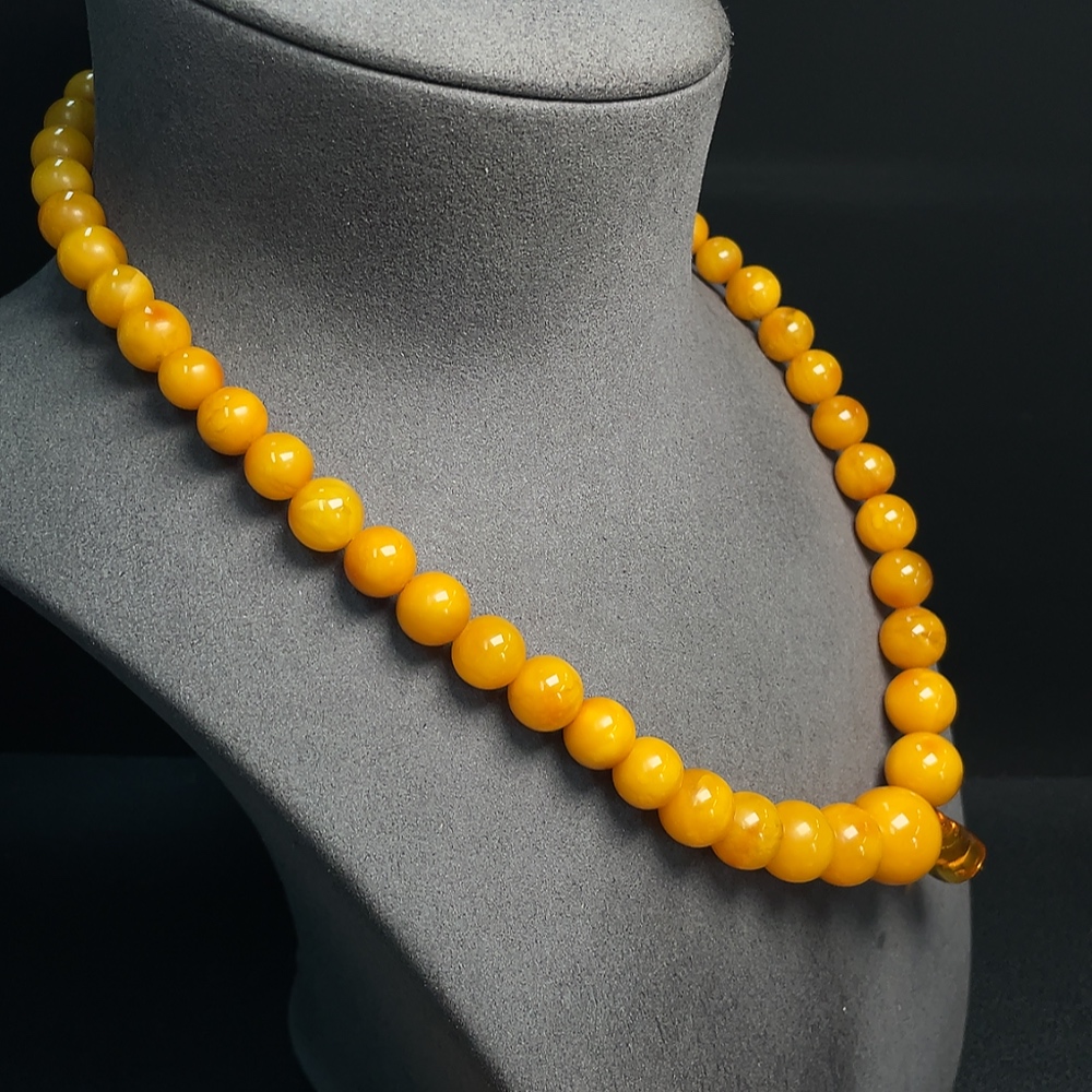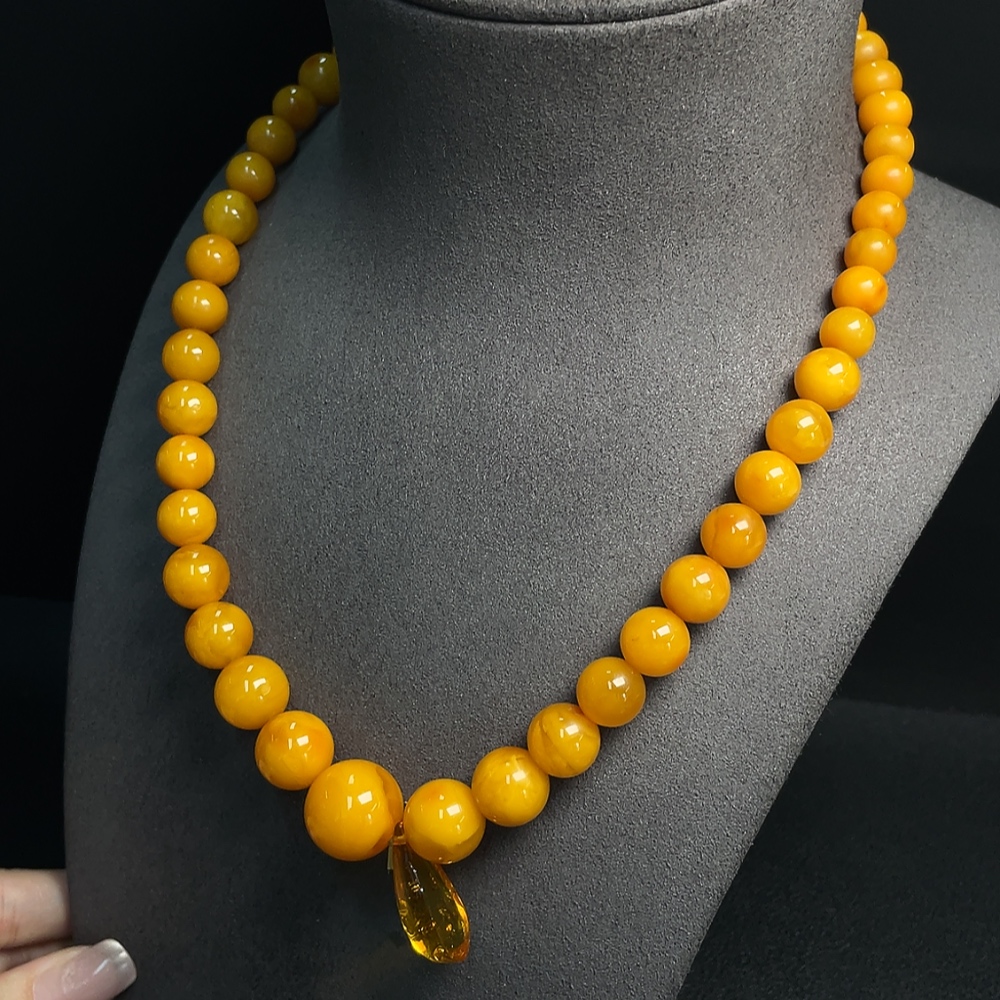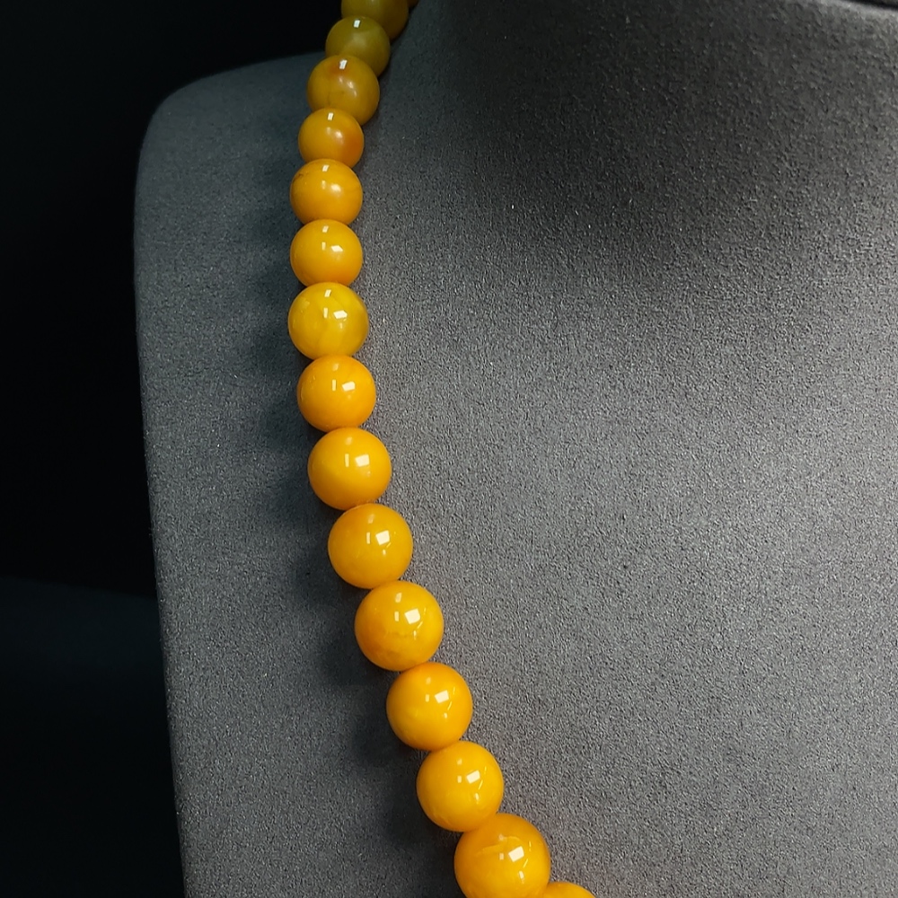 Amber Beeswax Bead Necklace with Colorless Coating, Partial Repairs Visible, Total Weight Approx. 36.68g, Size 8.8-17.1mm
