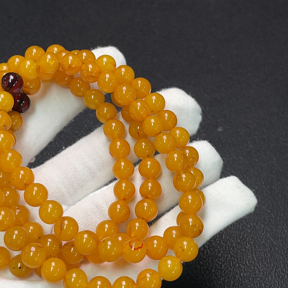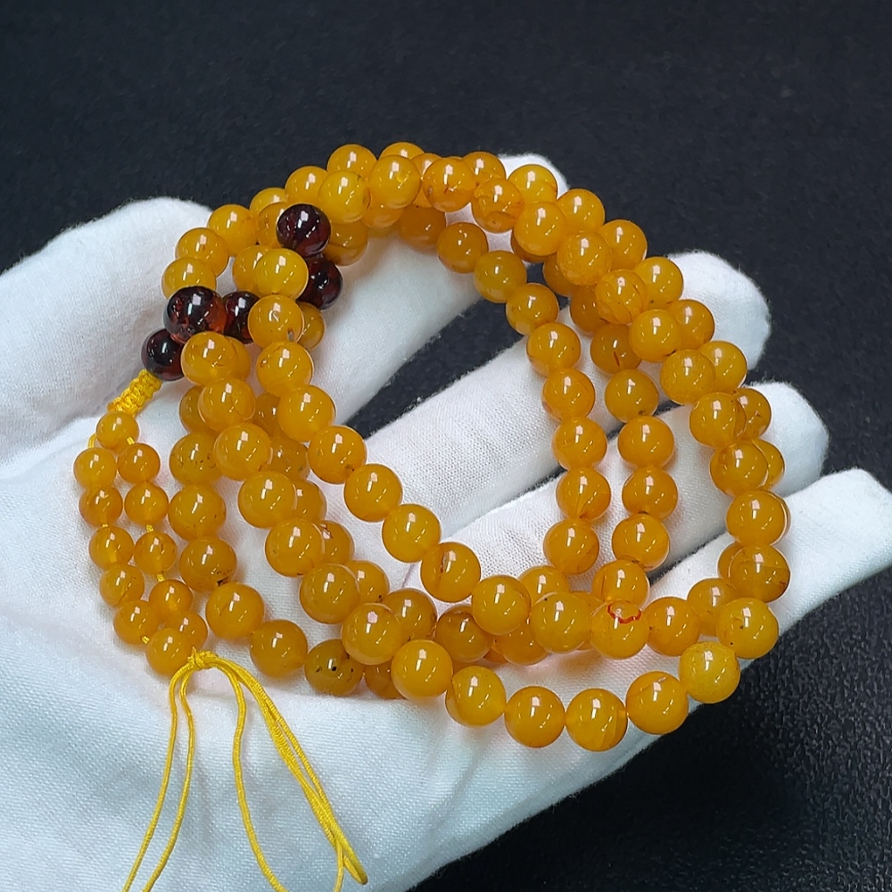 Amber Beeswax Bead Strand, Total Weight Approx. 28.61g, Size About 7.6mm