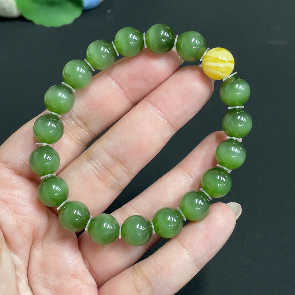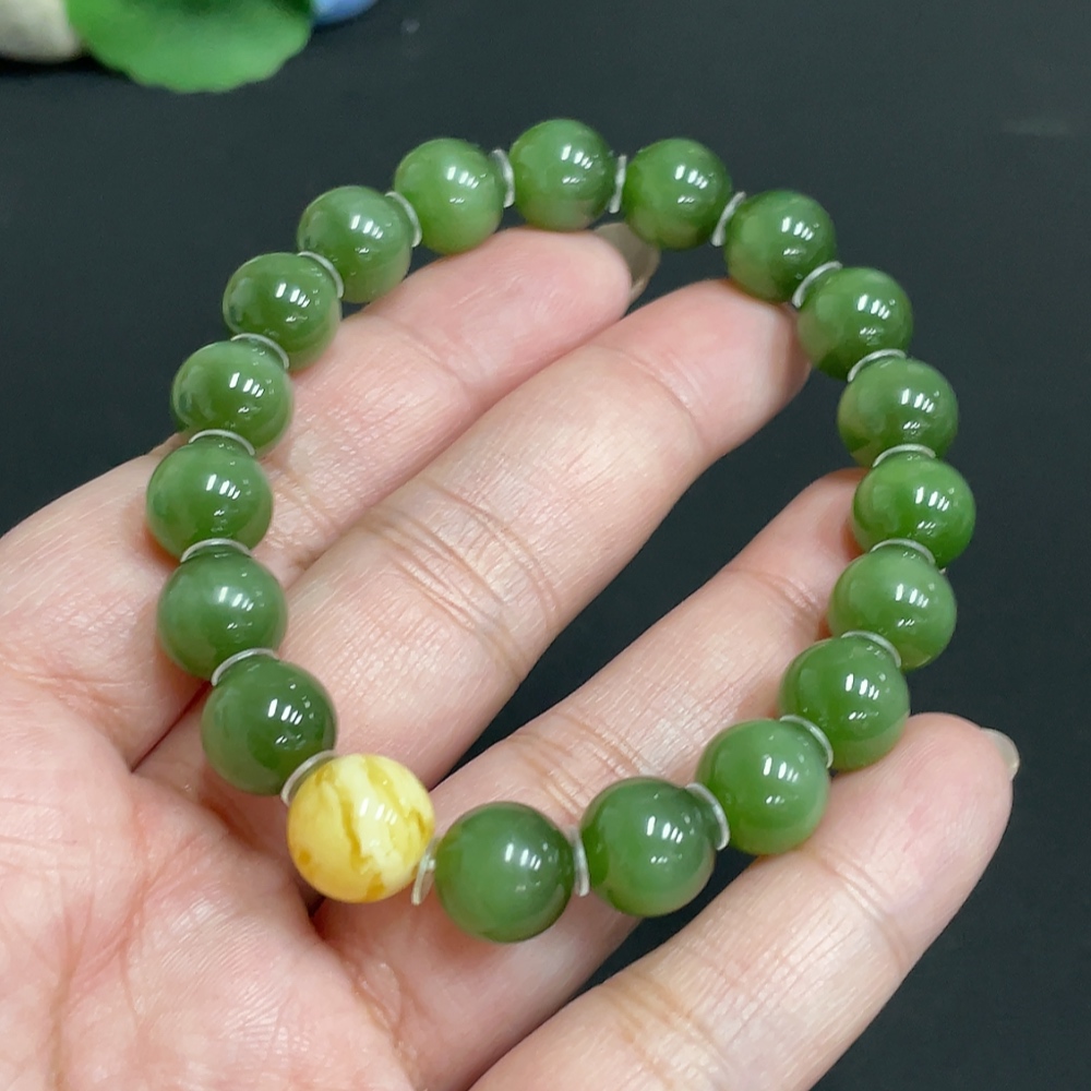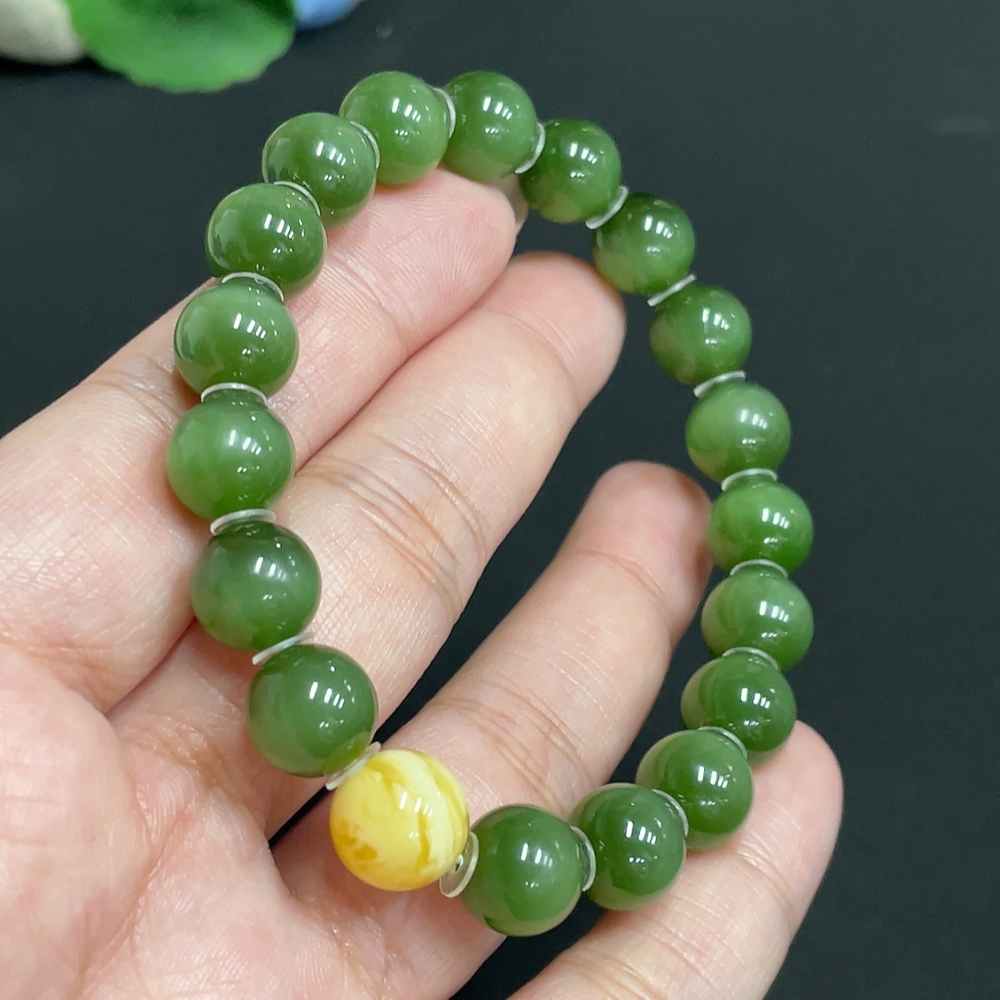 Hetian Jade Jasper Bracelet, approx. 9.9mm, total weight approx. 29.7g, with amber