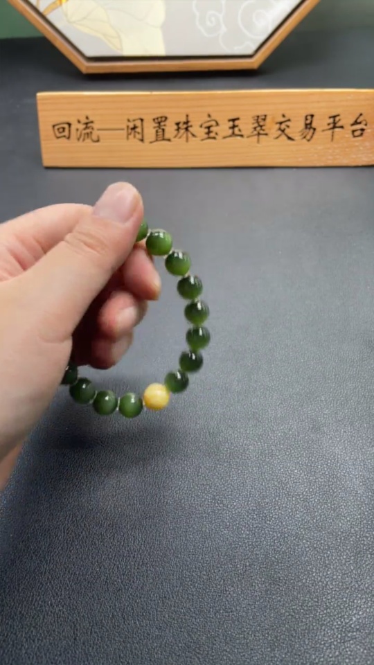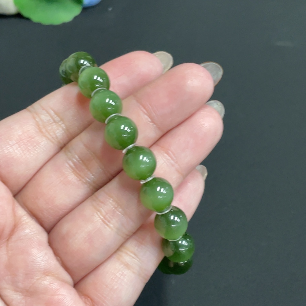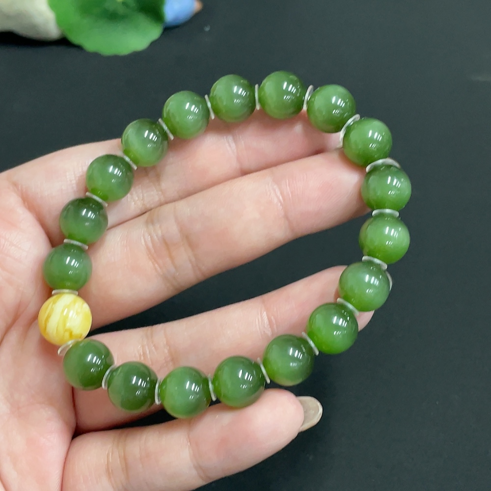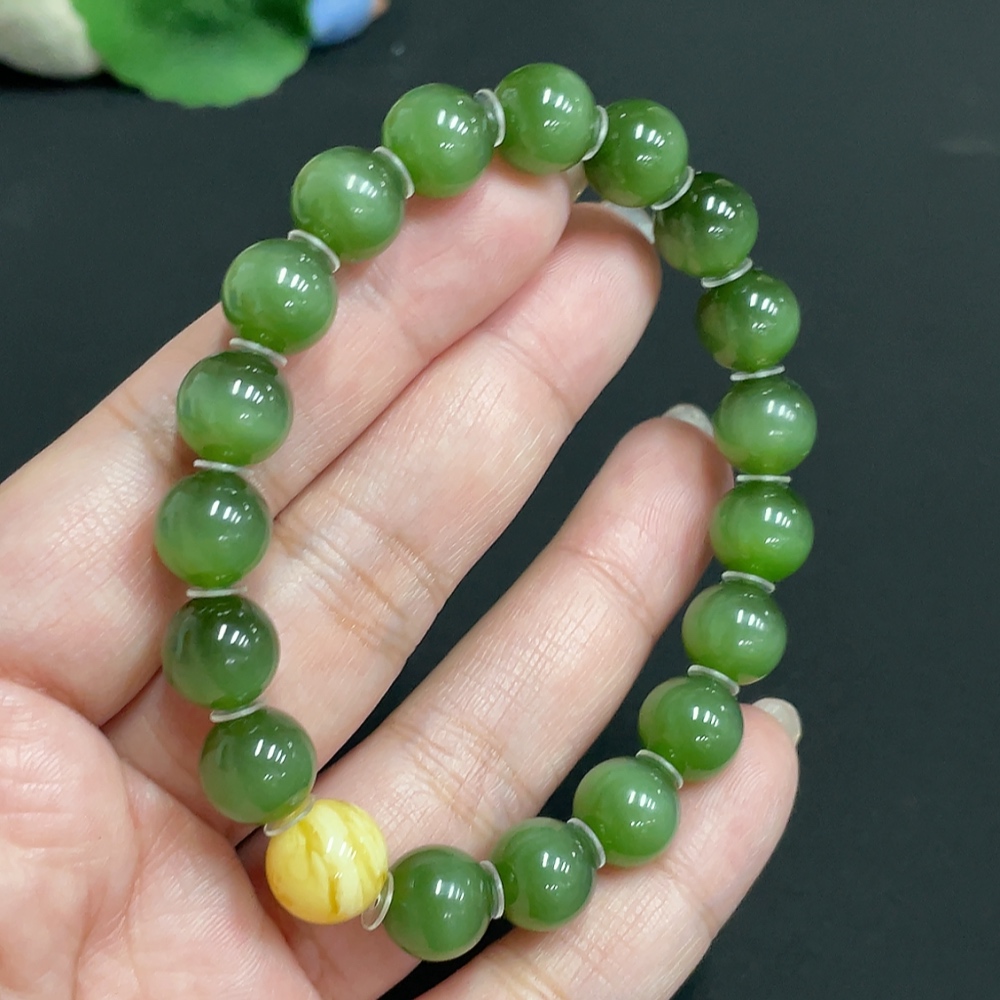 Hetian Jade Jasper Bracelet, approx. 9.9mm, total weight approx. 29.7g, with amber