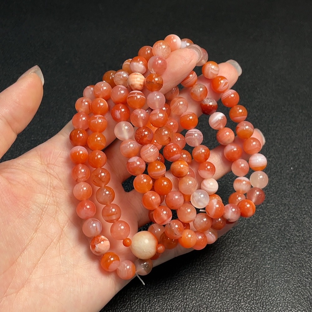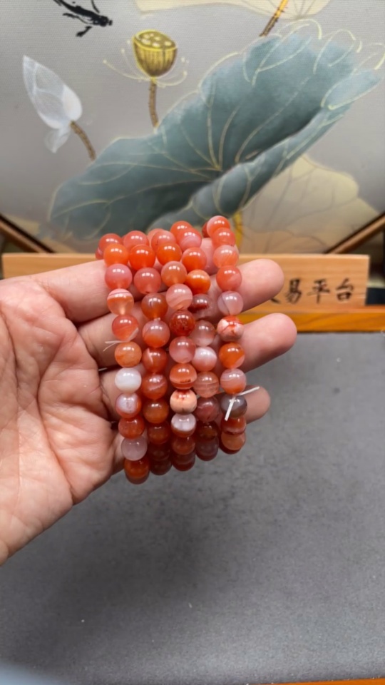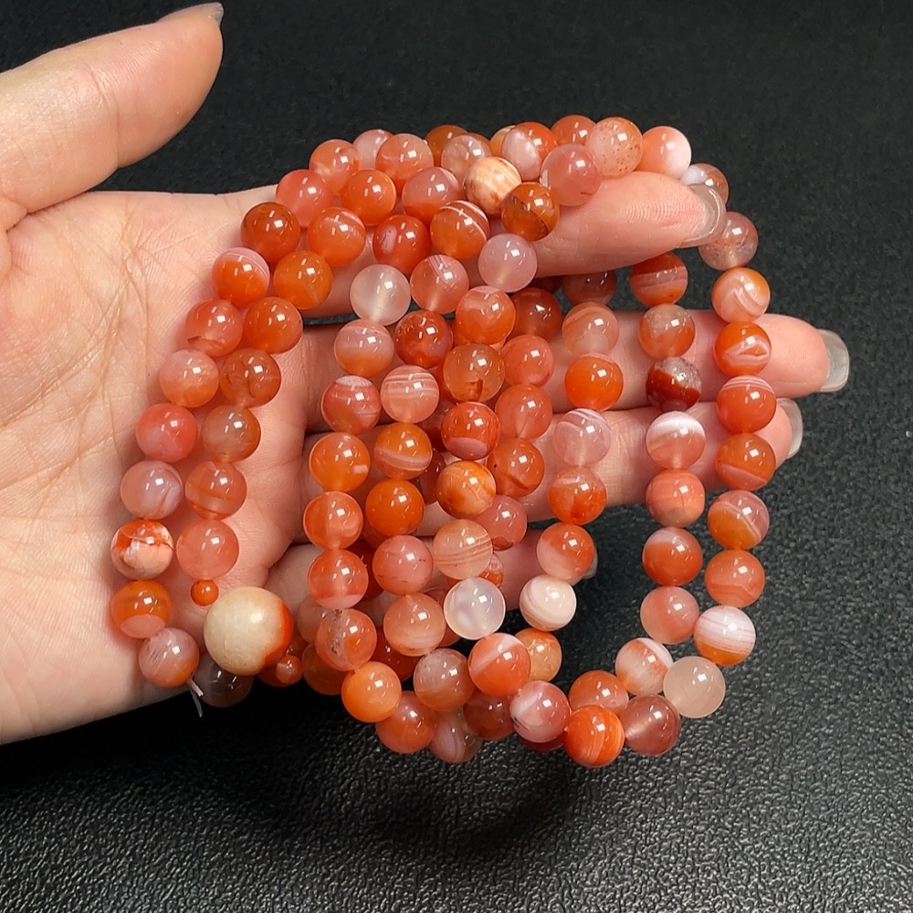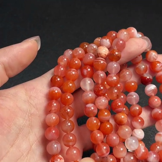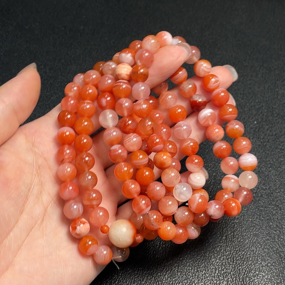 Nanhong Agate Bracelet with Visible Organic Matter, Total Weight Approx. 93g, Sell as a Lot