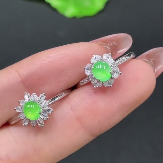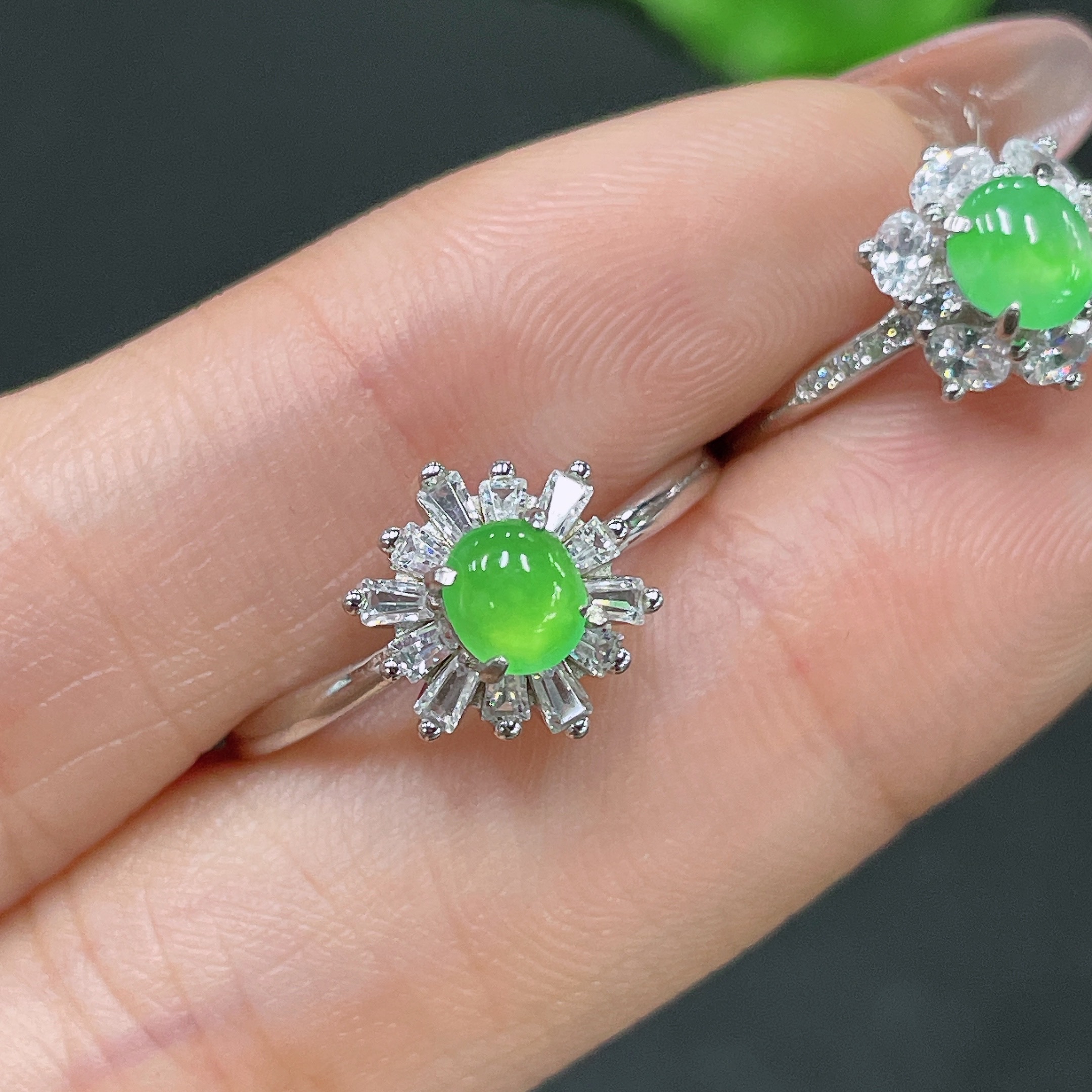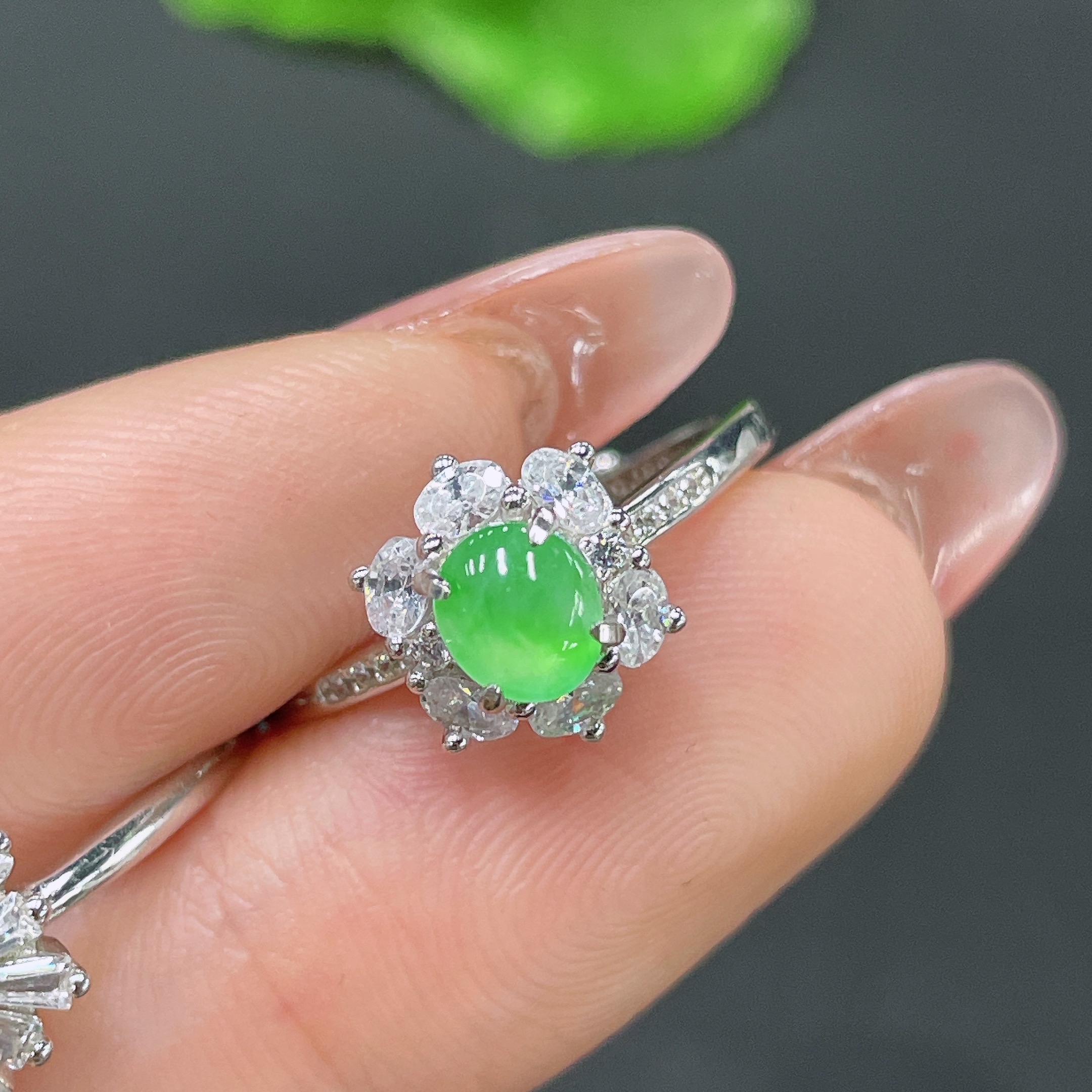 Jadeite Cabochon Inlaid Ring Non-Gold Adjustable