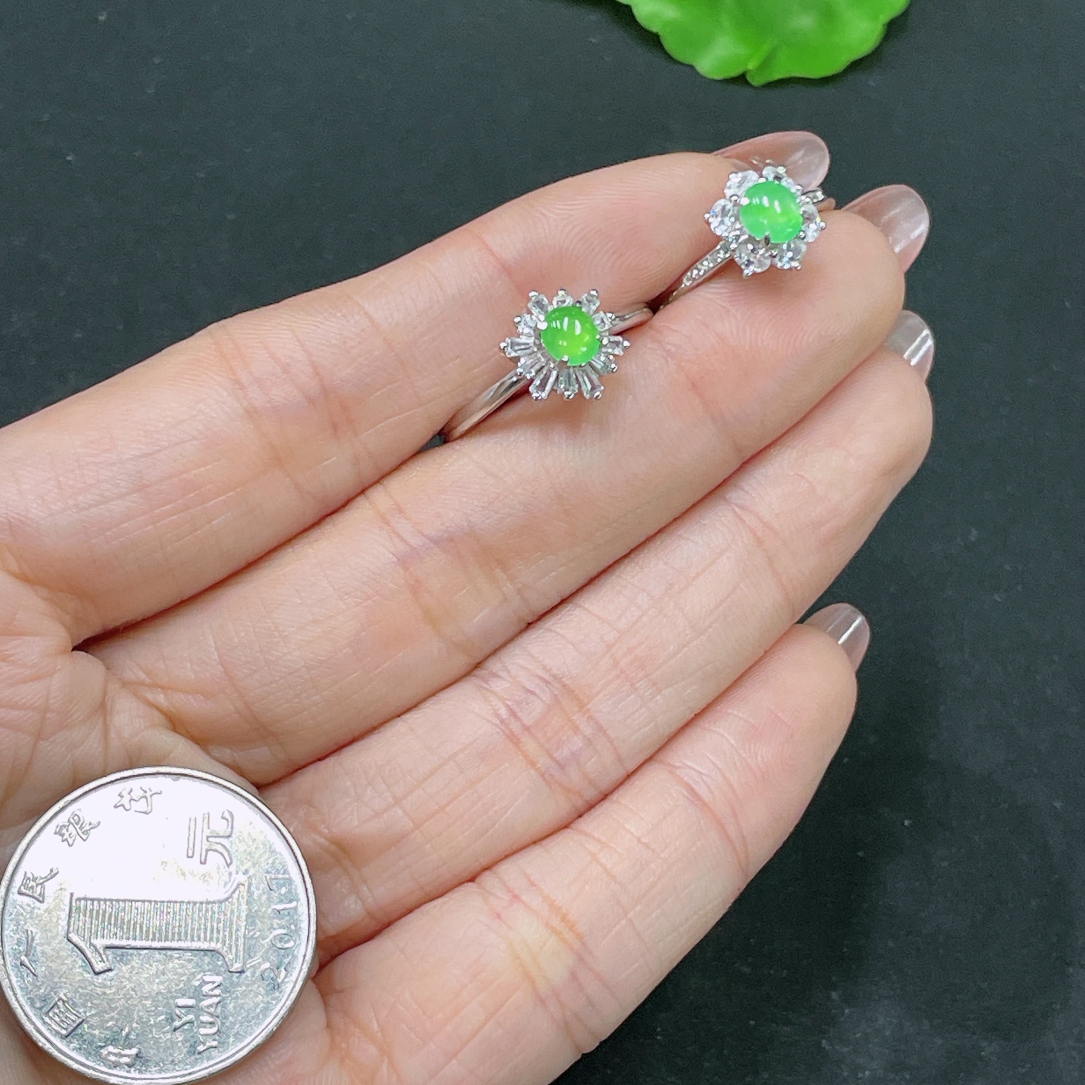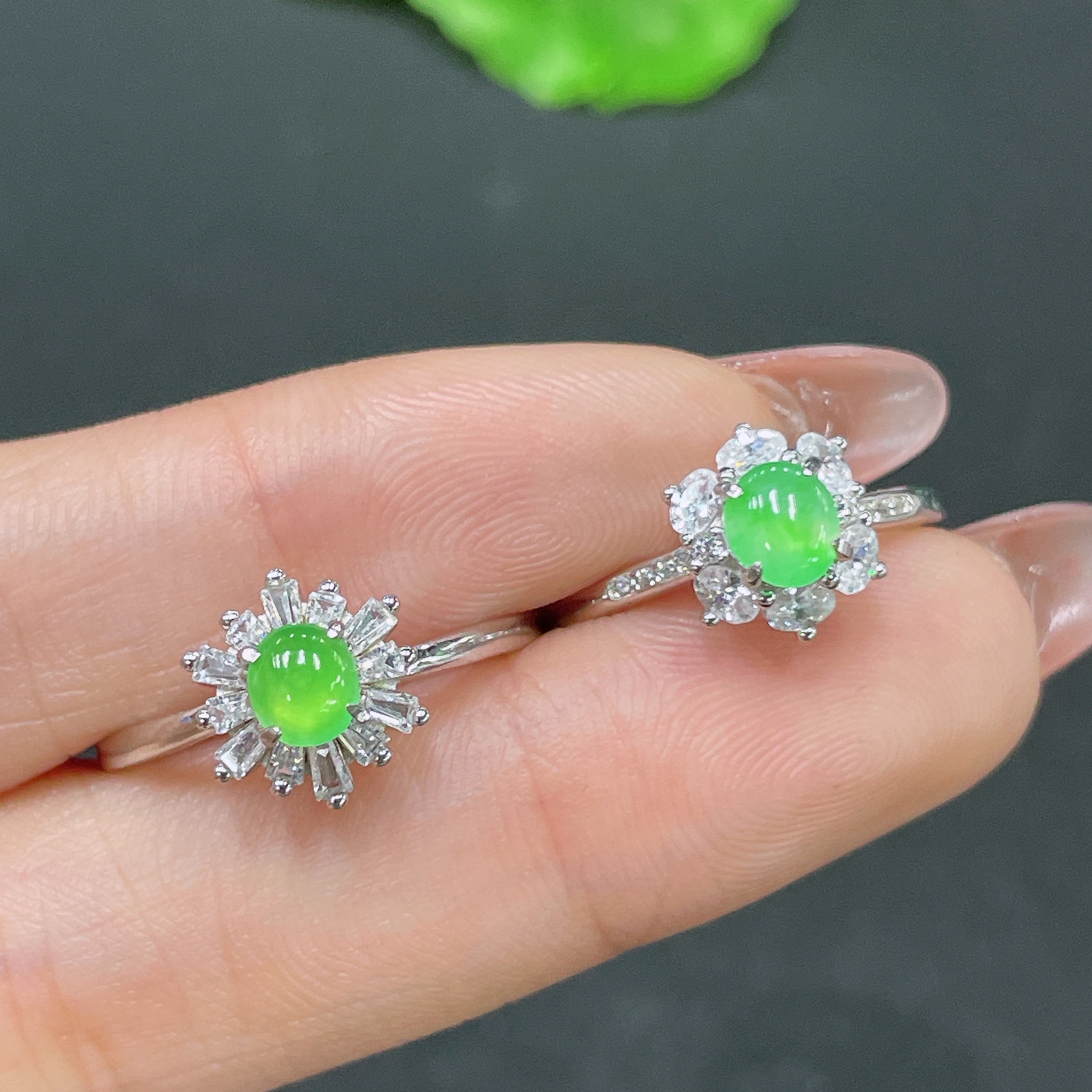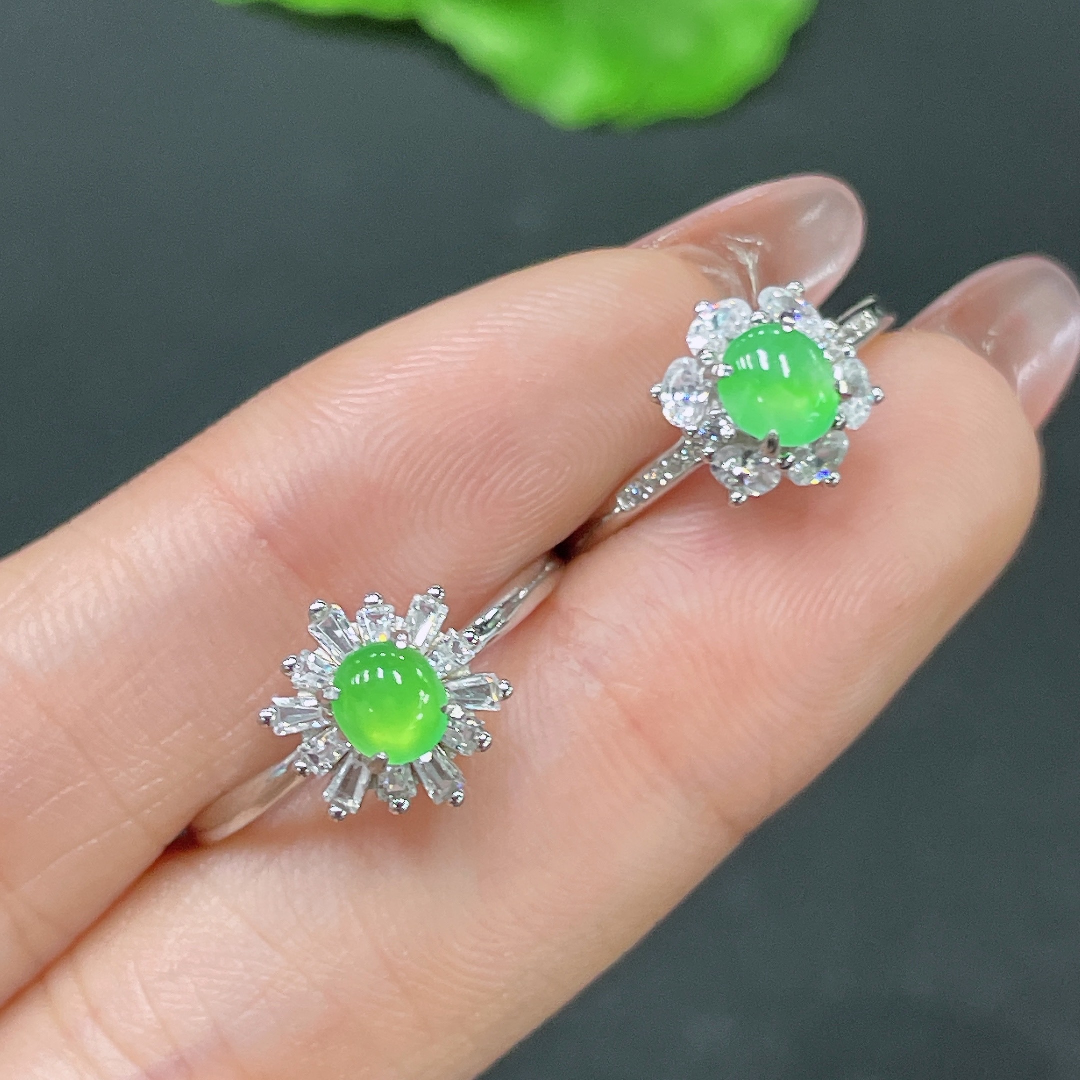 Jadeite Cabochon Inlaid Ring Non-Gold Adjustable