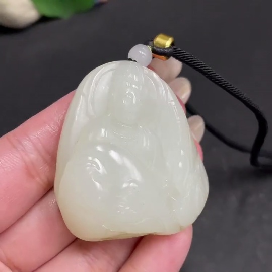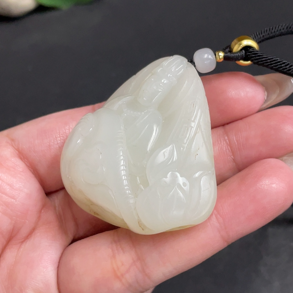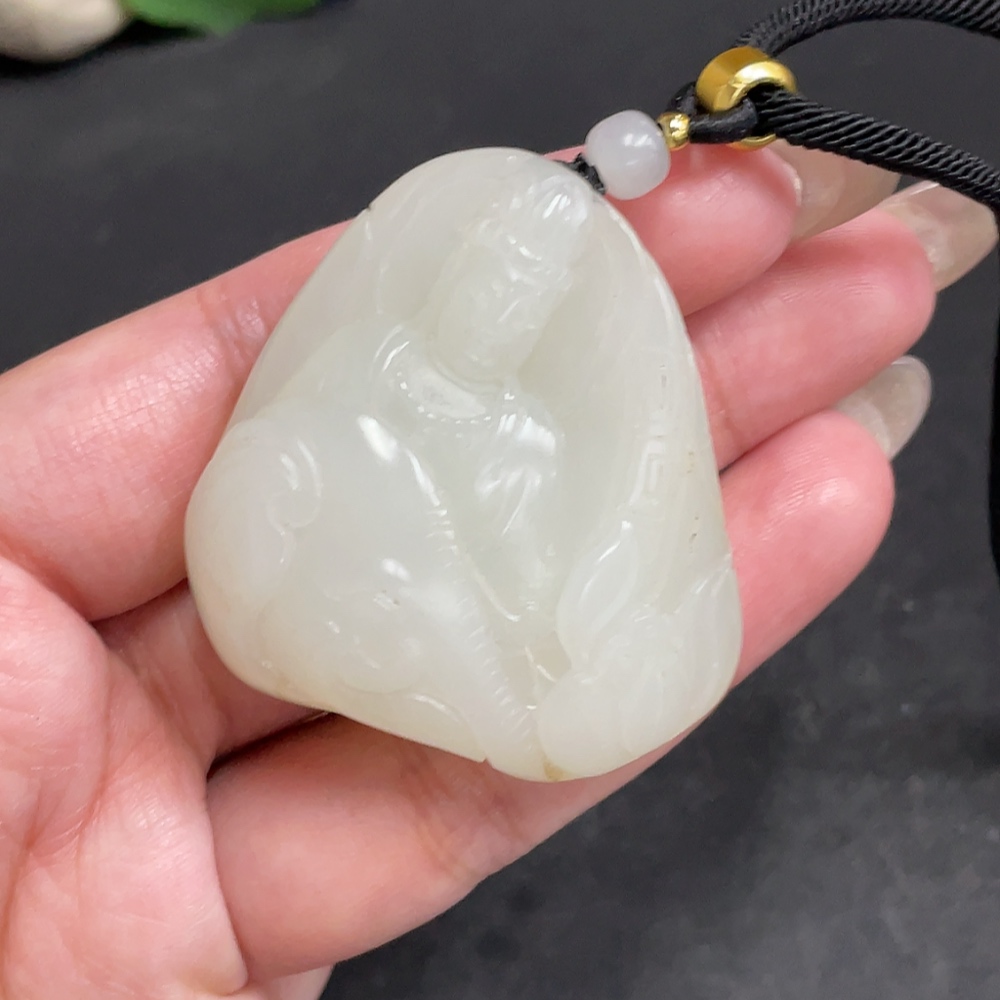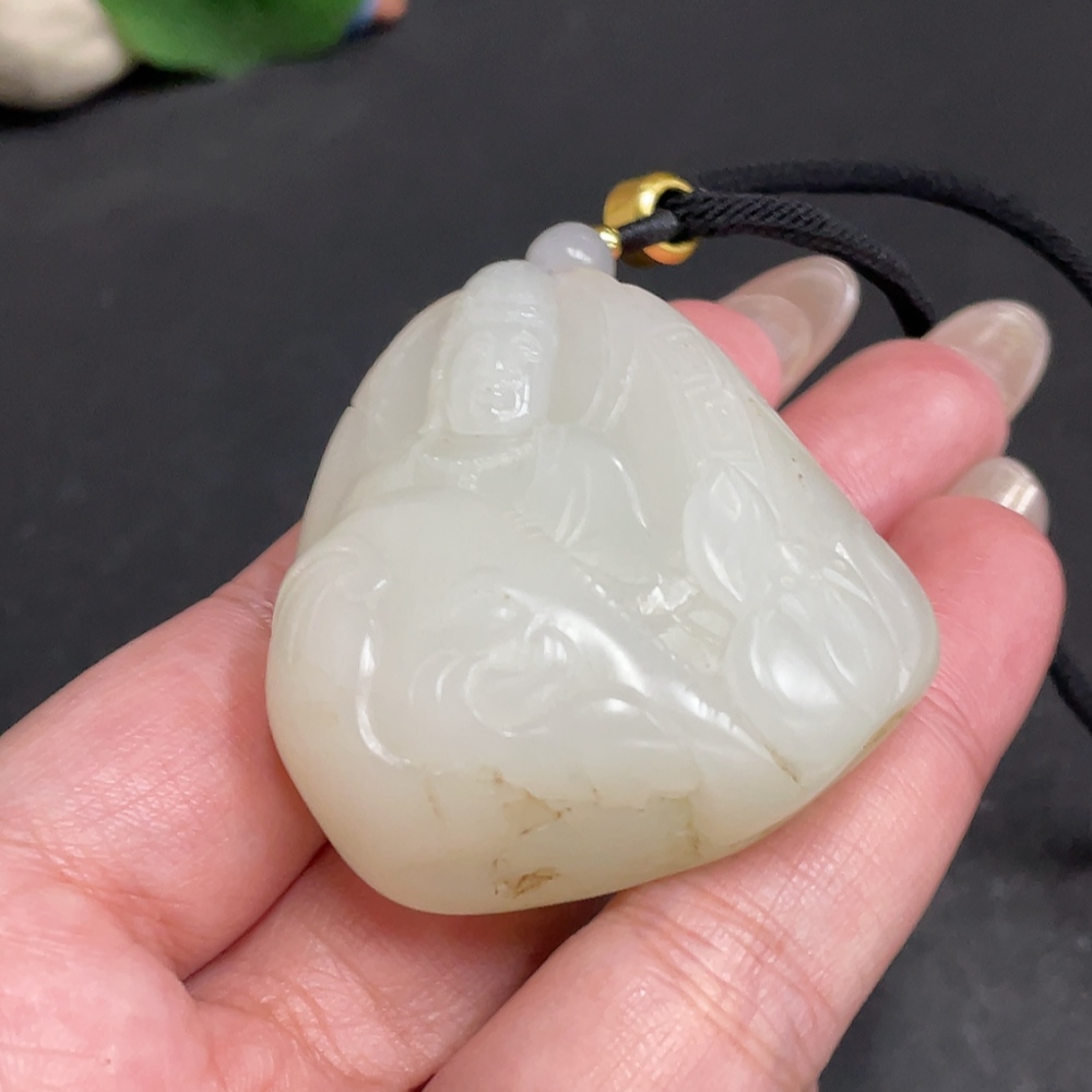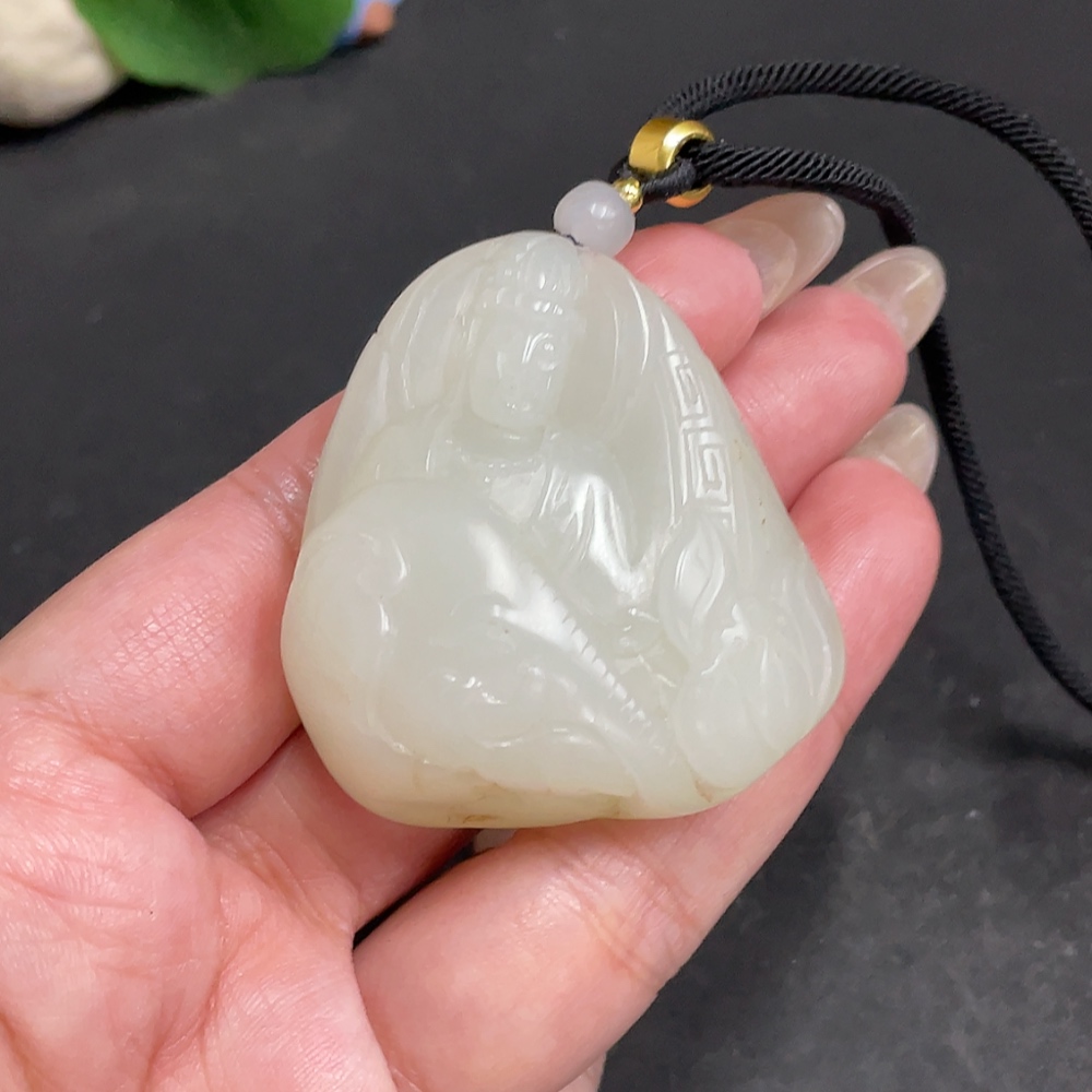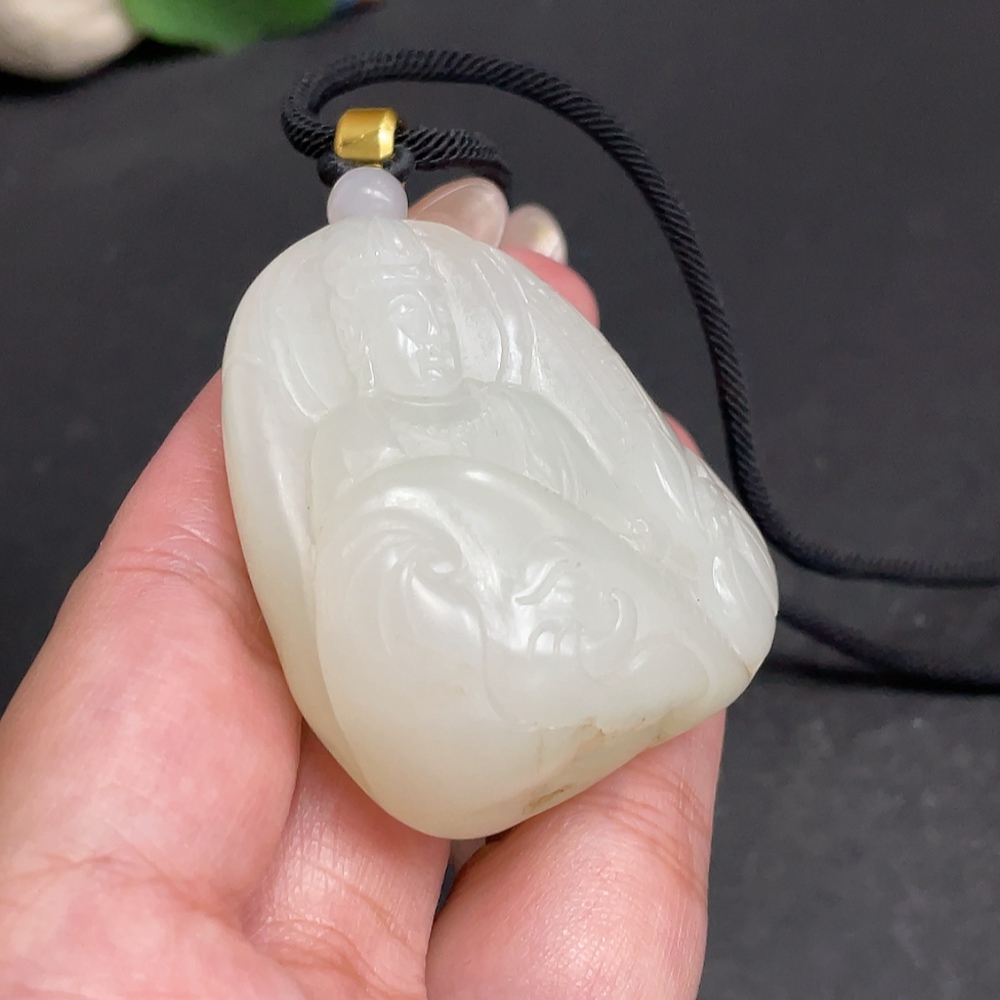 Hetian Jade Pendant Guanyin with Undetermined Skin Color Formation Total Weight approx. [including rope] 60.3g