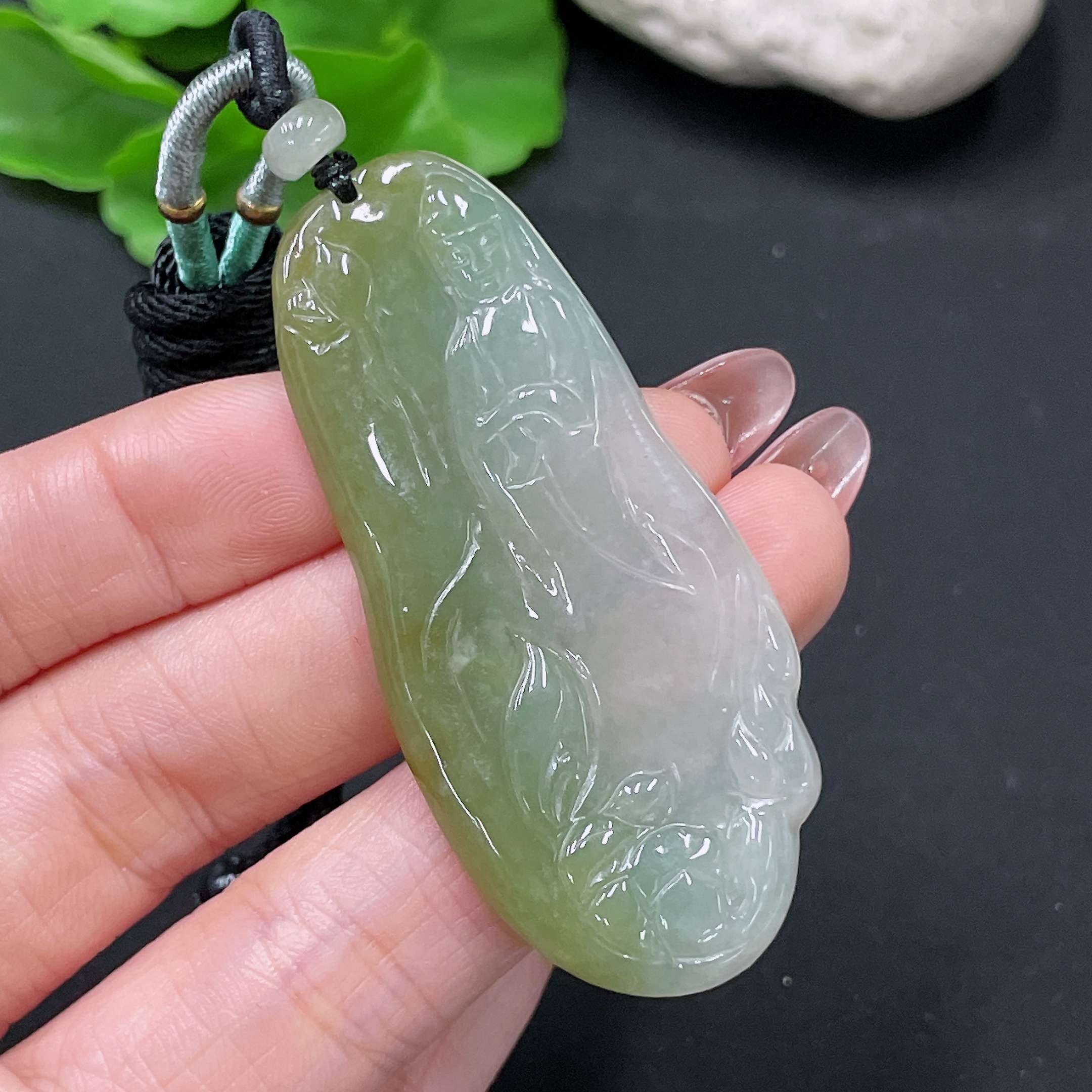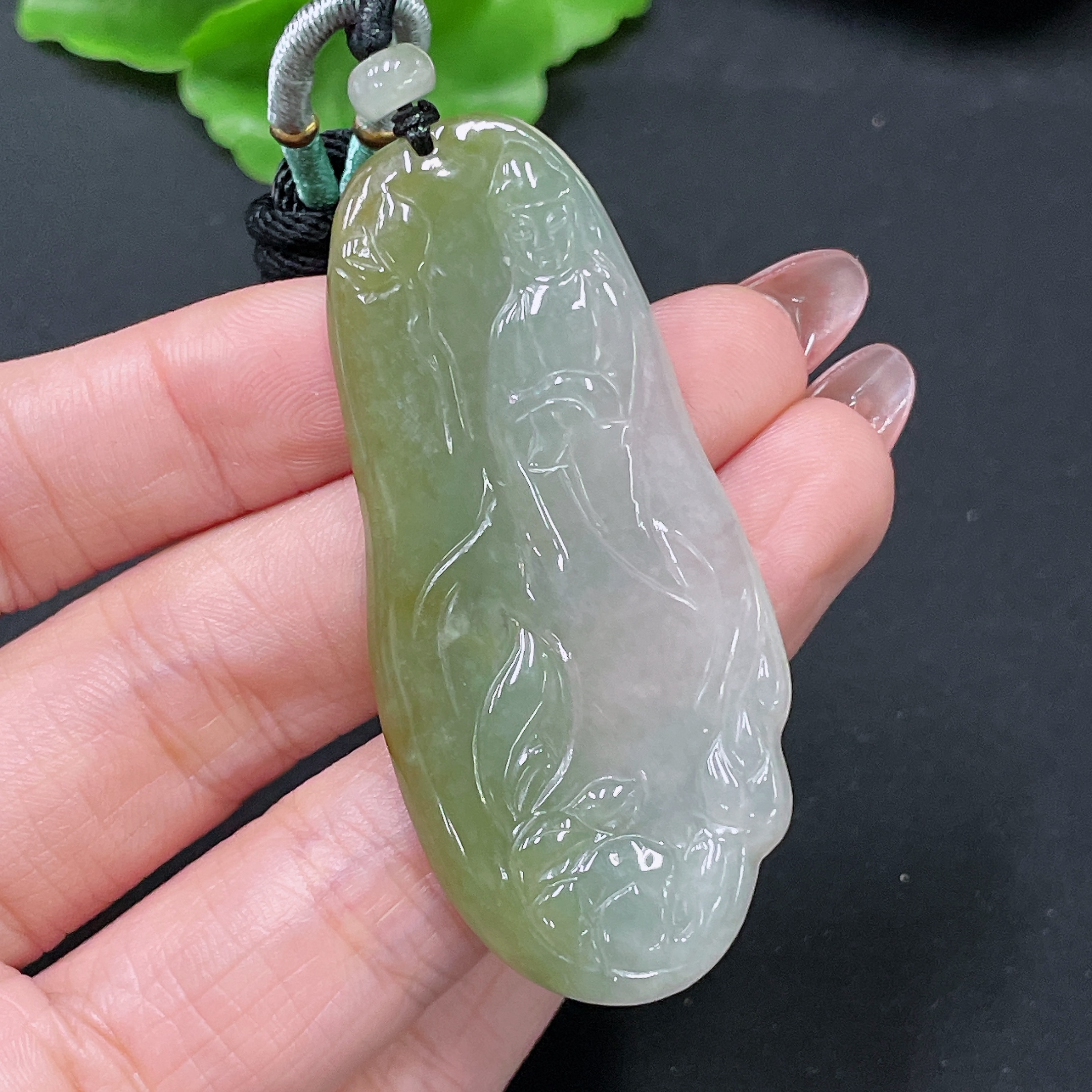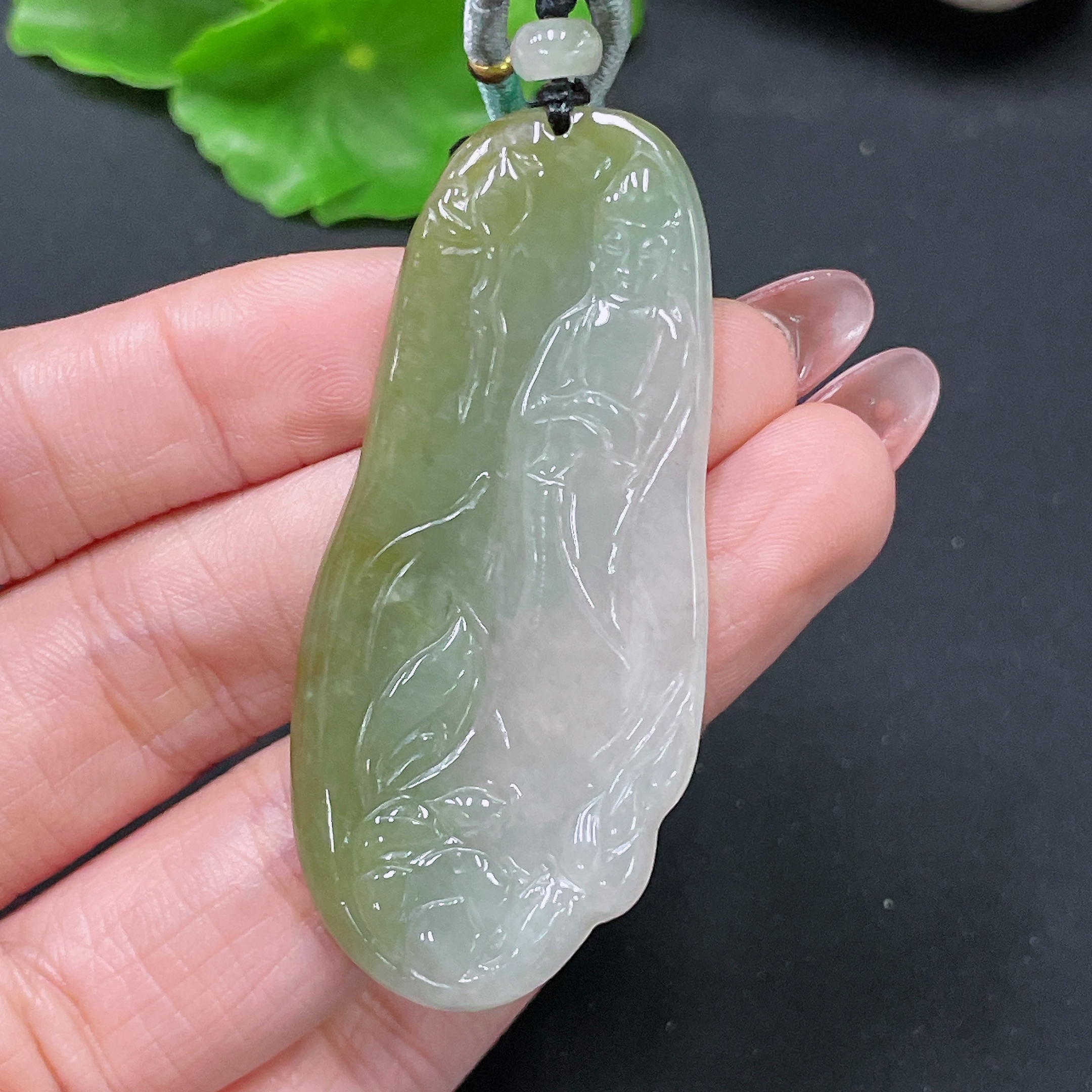 Jadeite Pendant Guanyin with Cord Total Weight Approx. 16.1g