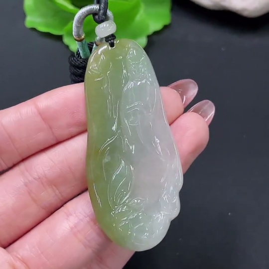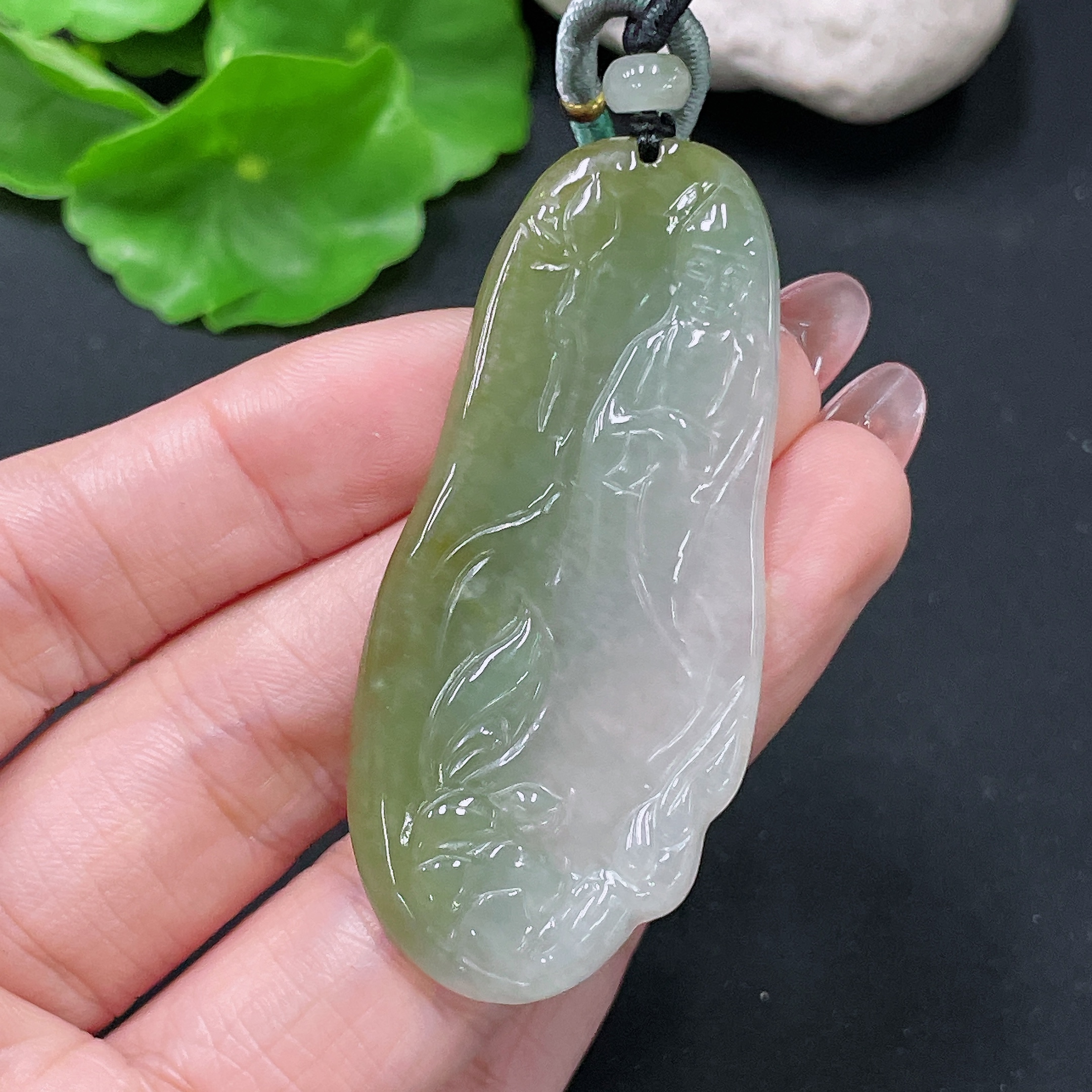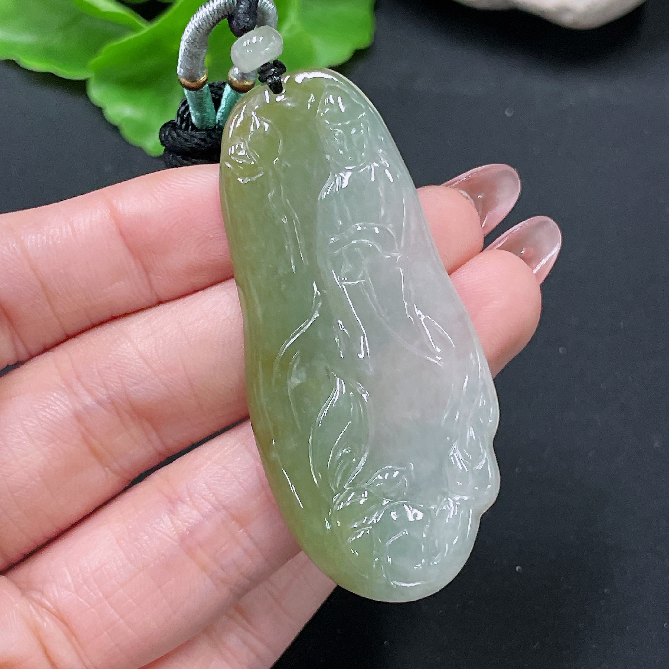 Jadeite Pendant Guanyin with Cord Total Weight Approx. 16.1g