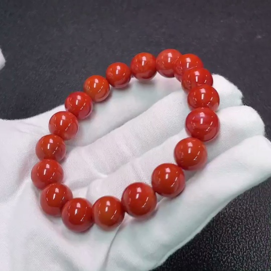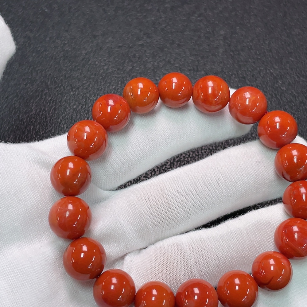 Red Agate Bracelet with Visible Organic Matter, Total Weight Approx. 37.76g, Size About 11.8mm